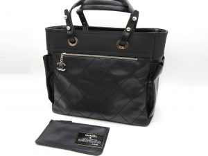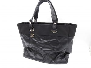 Chanel Paris Biarritz Tote Bag MM Coating Canvas Black Silver A34210 X-8526