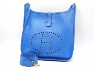 Hermes Evelyne 1 GM Shoulder Bag Cushbel Leather Blue Gold Hardware □A X-8815