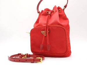PRADA Duet Drawstring Hand Shoulder Bag TESSUTO IMPUNTU Nylon Red 1BH038 W-7893