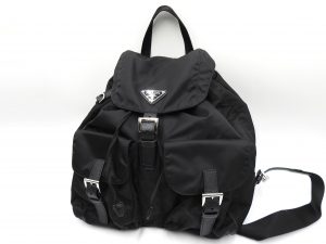 Prada Small Backpack Bag Nylon Saffiano Black Silver Hardware 1BZ677 X-8407