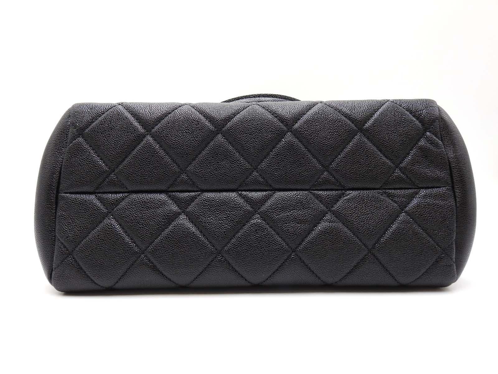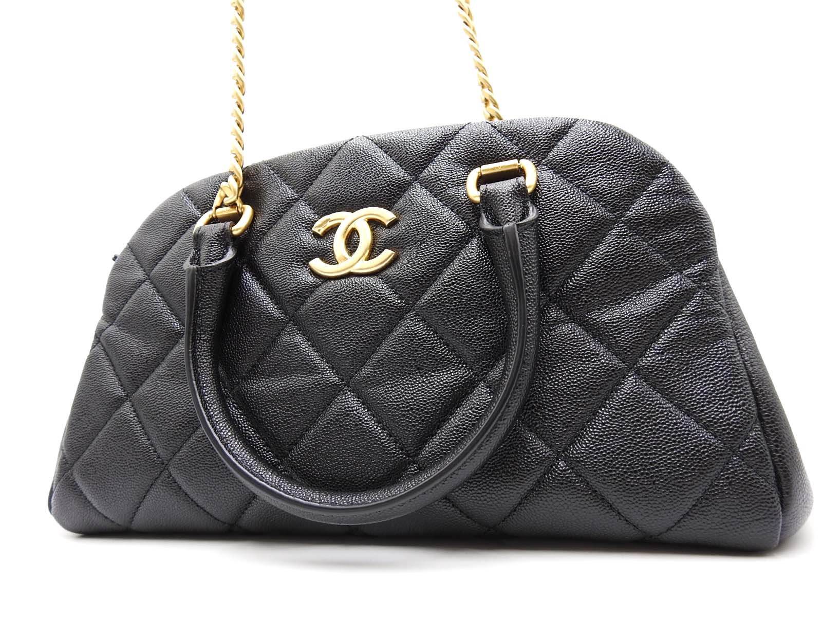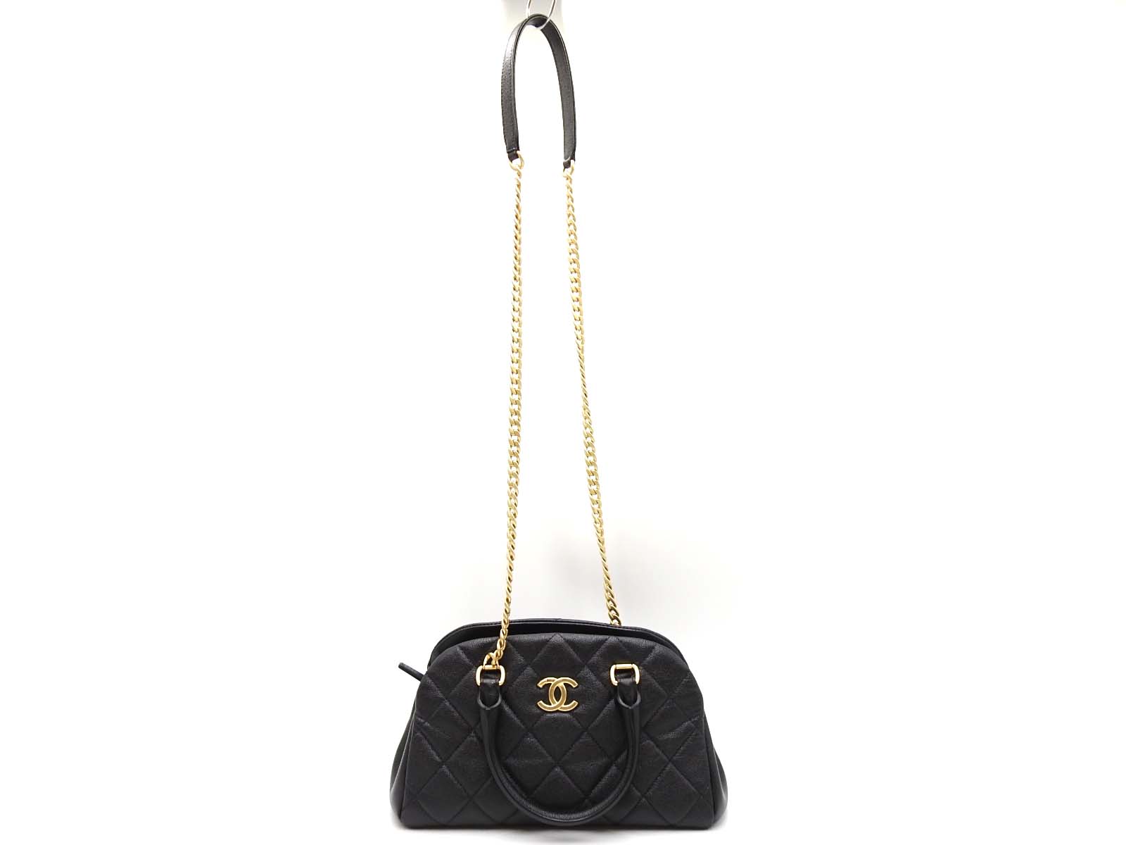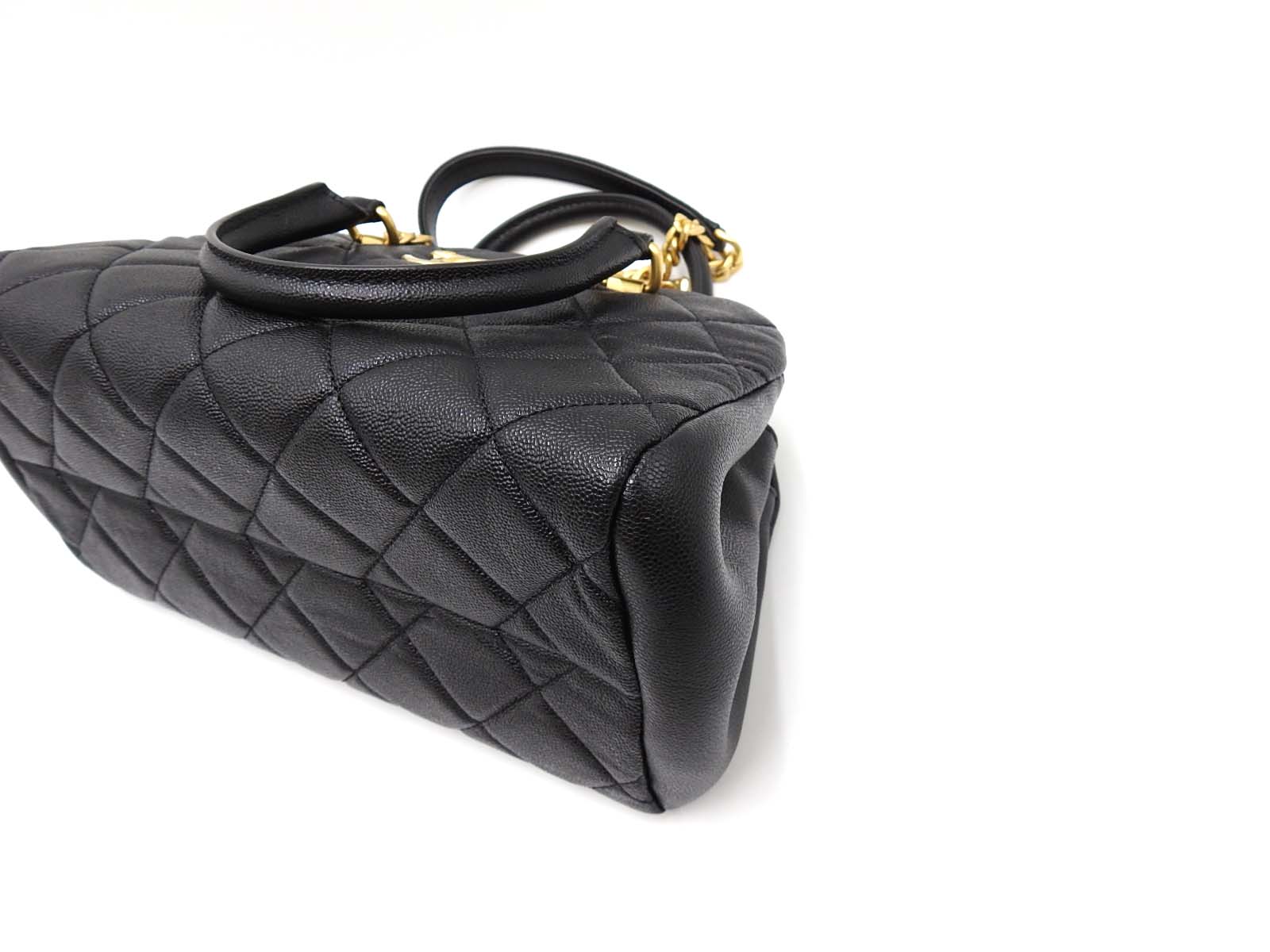 Auth CHANEL Matelasse Mini Bowling Bag 2way Chain Shoulder Bag Caviarskin Leather Black Gold Hardware W-6970