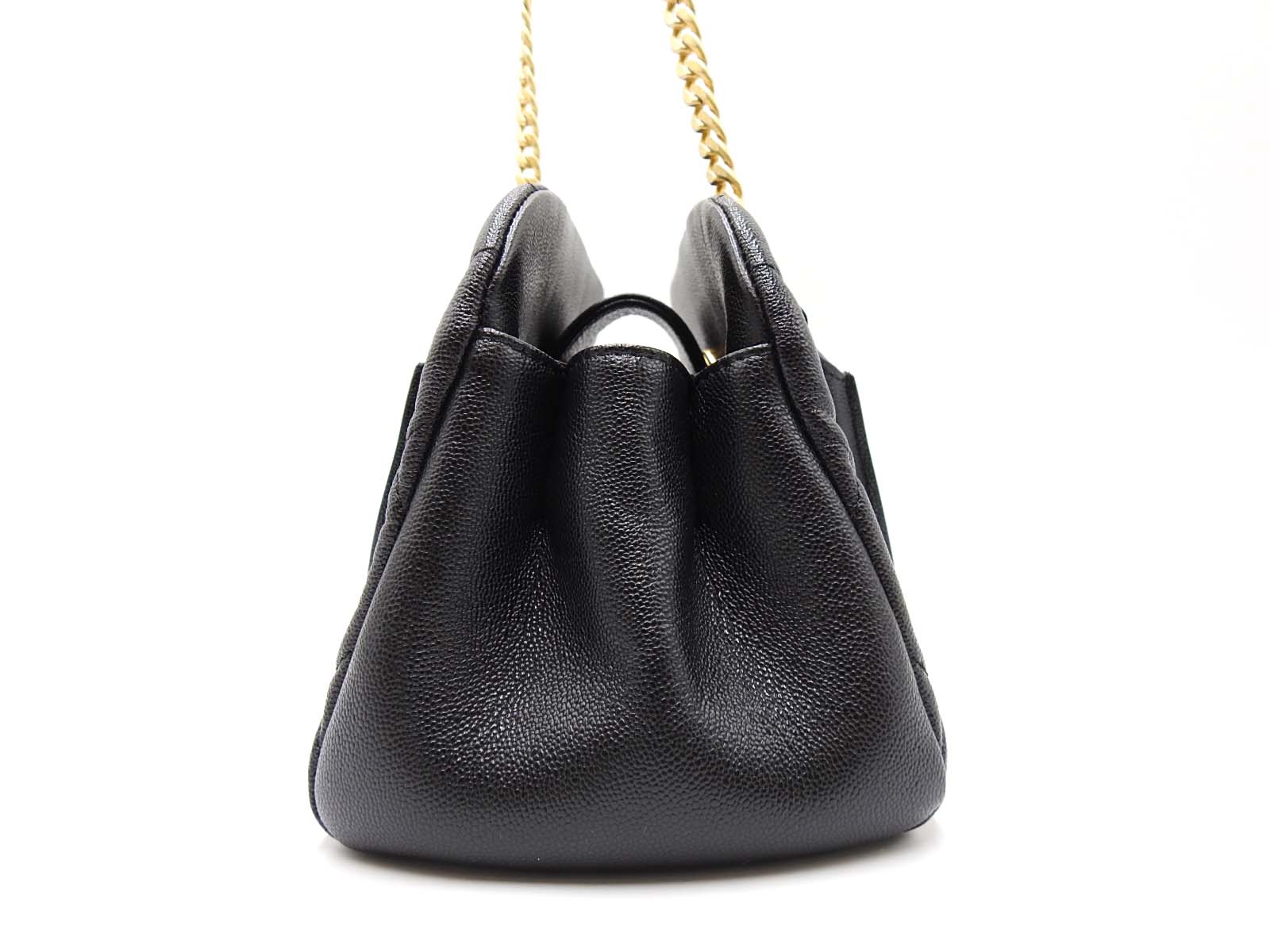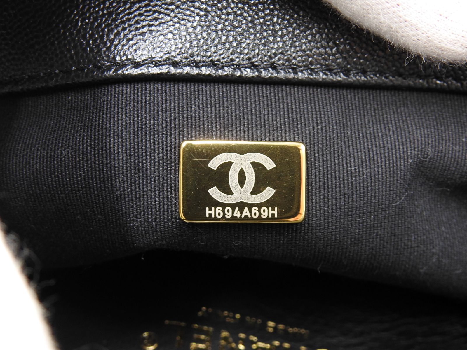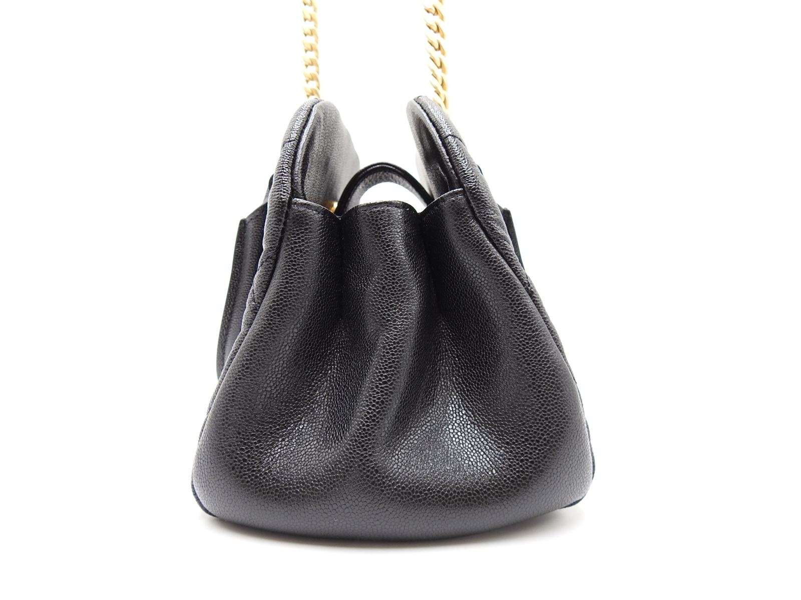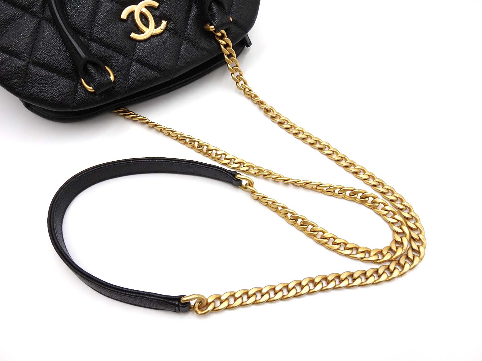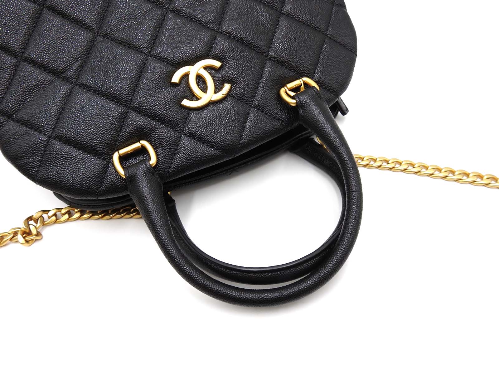 Auth CHANEL Matelasse Mini Bowling Bag 2way Chain Shoulder Bag Caviarskin Leather Black Gold Hardware W-6970