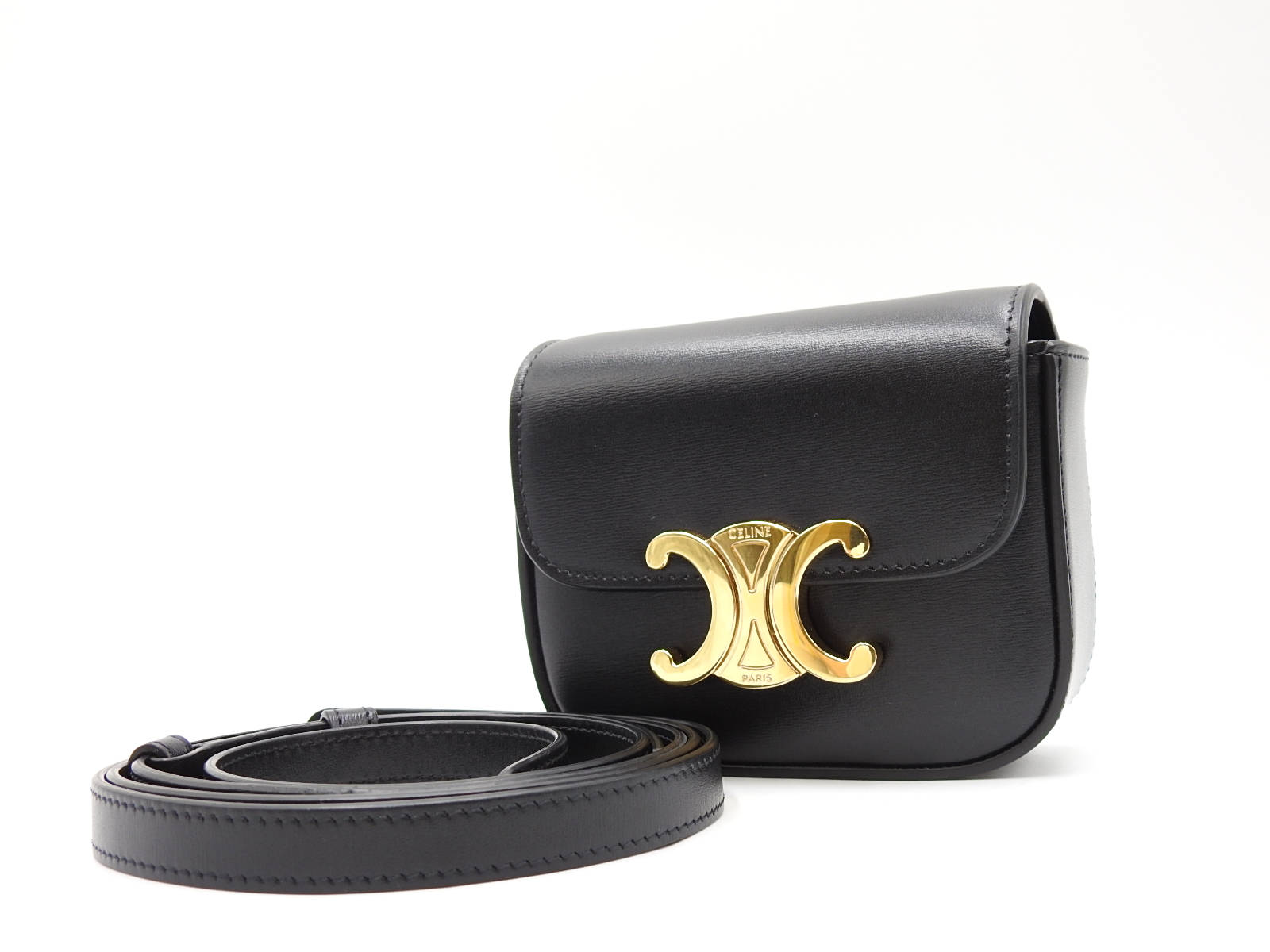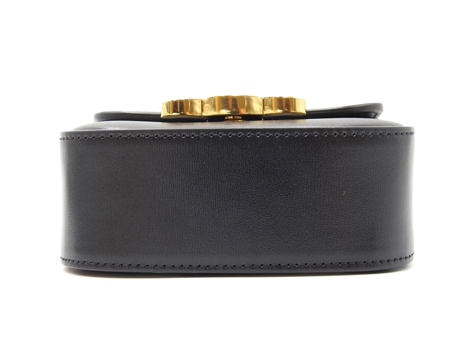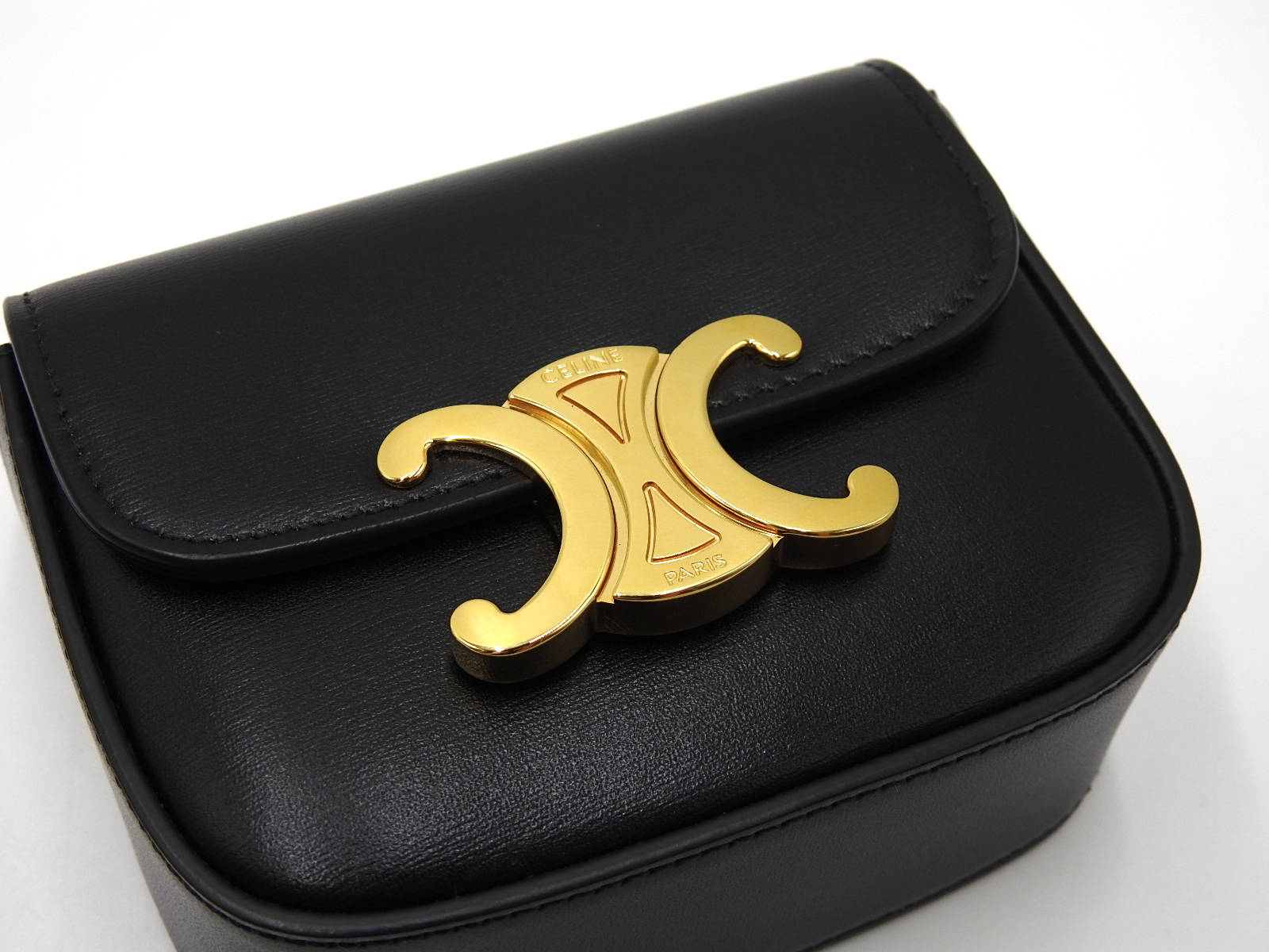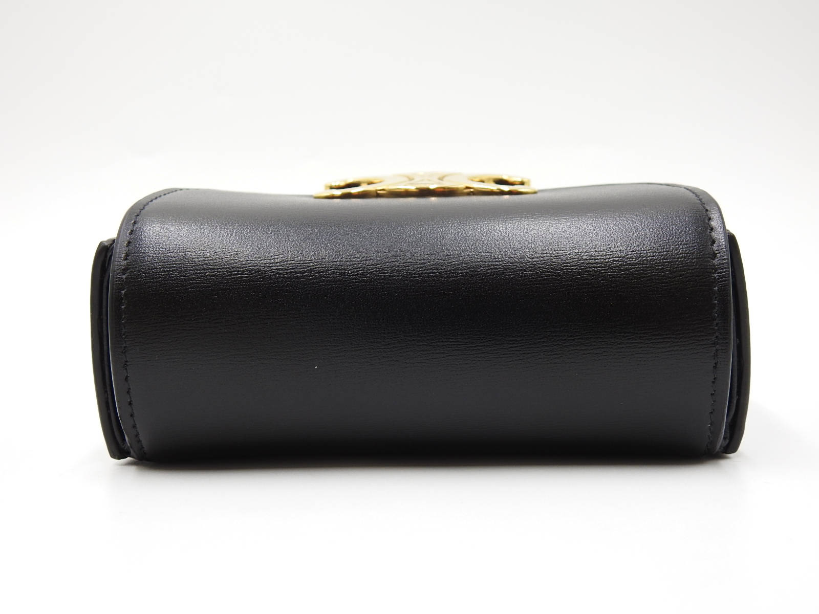 Auth CELINE Mini Triomphe Shoulder Bag Shiny Calfskin Leather Black Gold Hardware 10I513DPV.38NO W-7972
