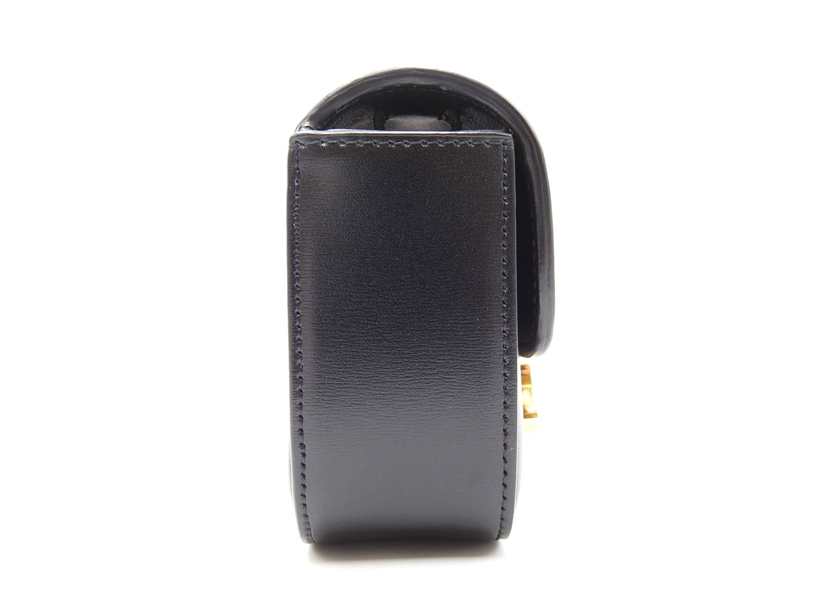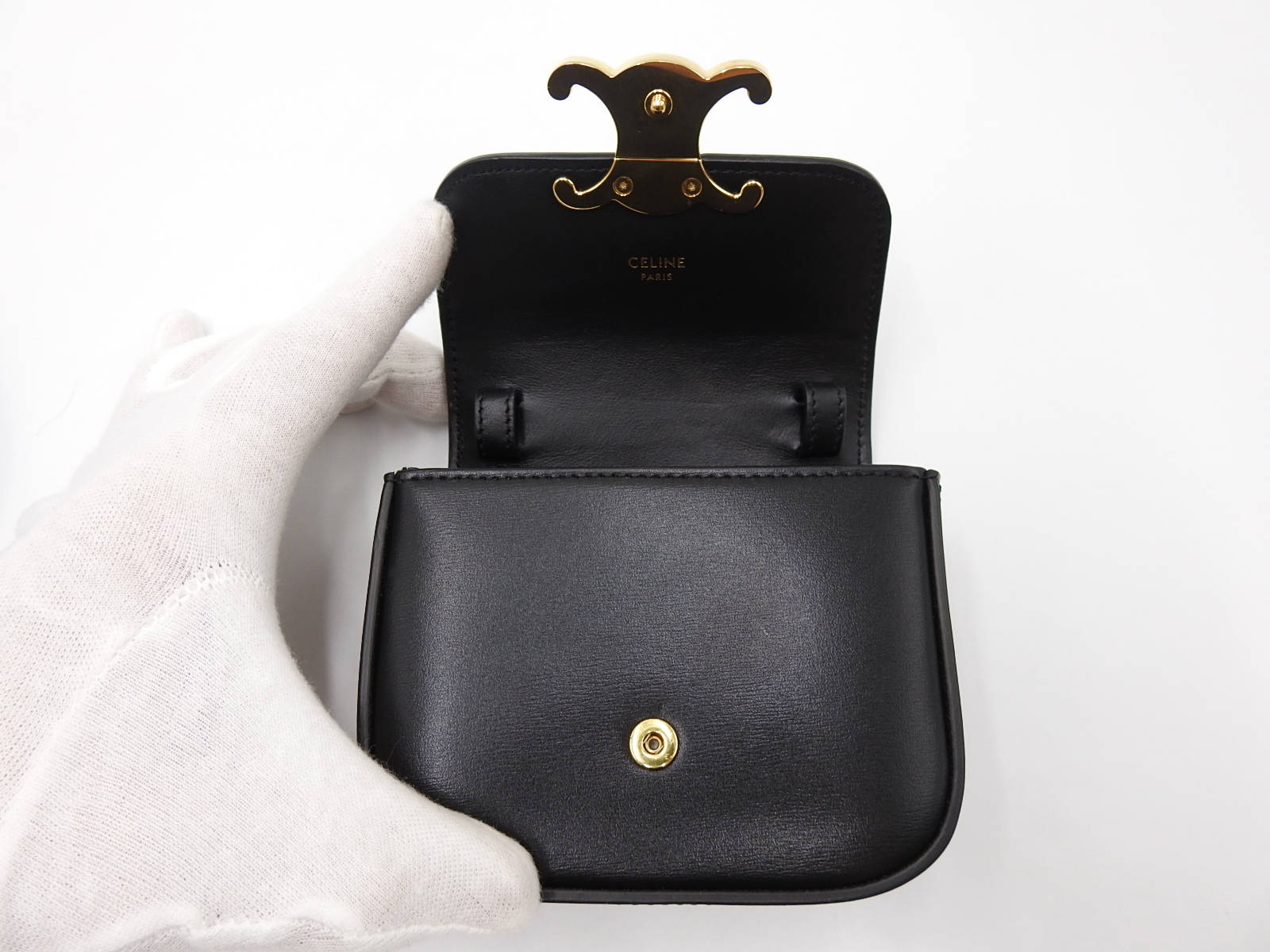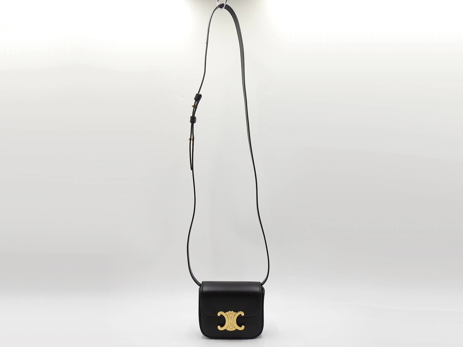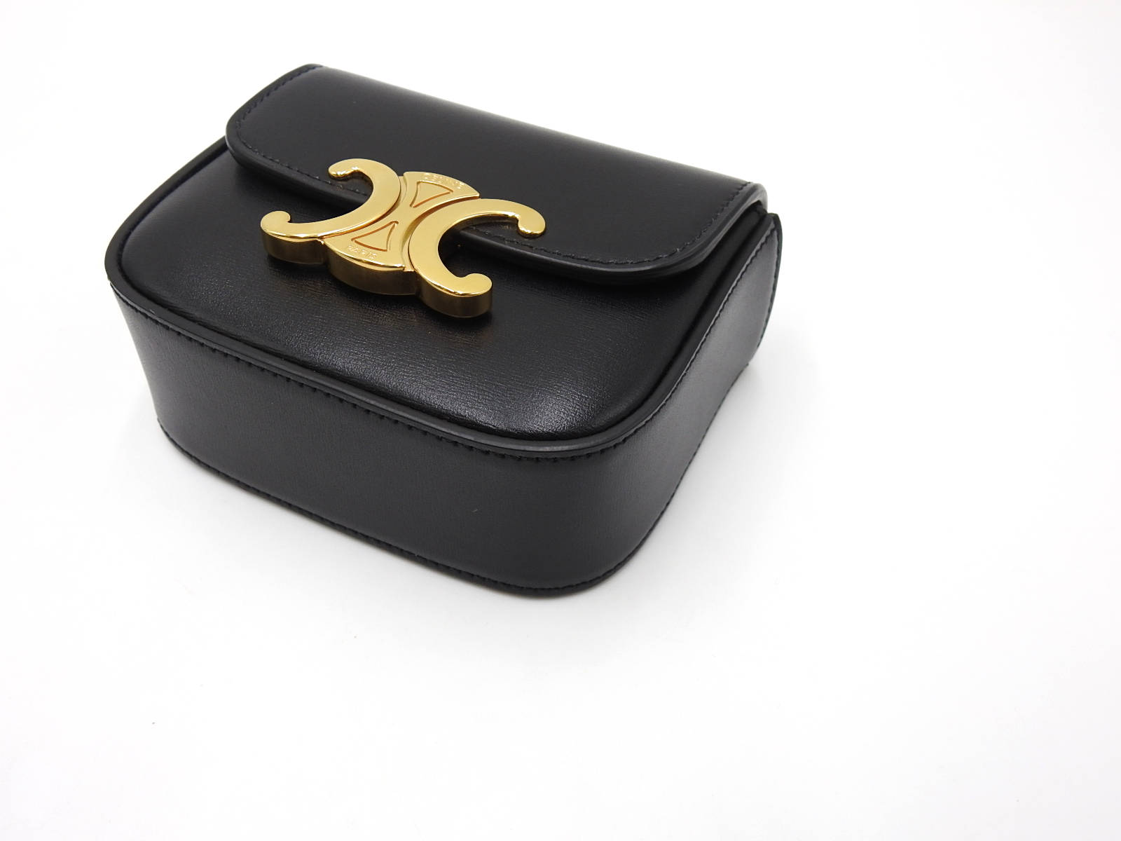 Auth CELINE Mini Triomphe Shoulder Bag Shiny Calfskin Leather Black Gold Hardware 10I513DPV.38NO W-7972