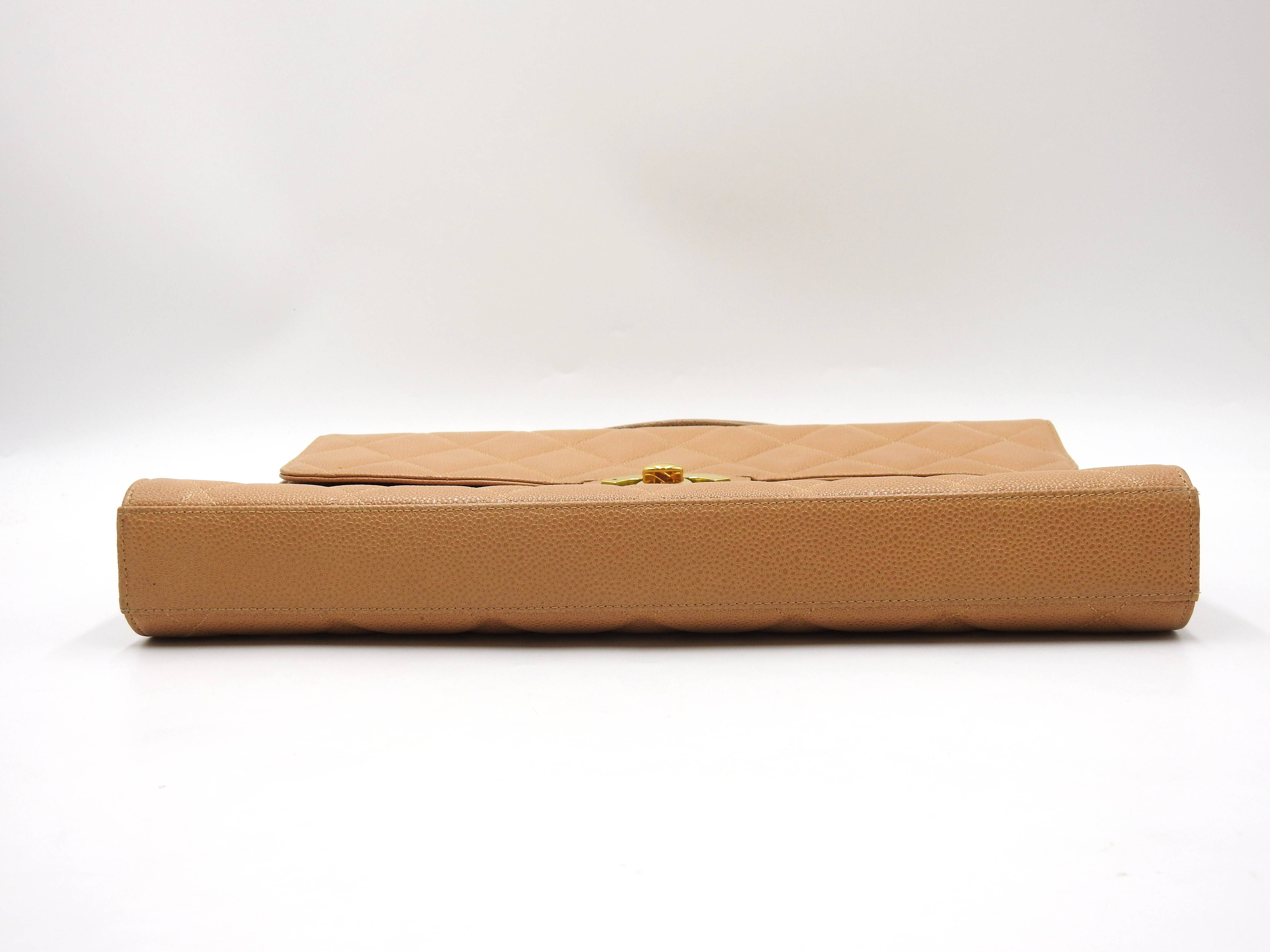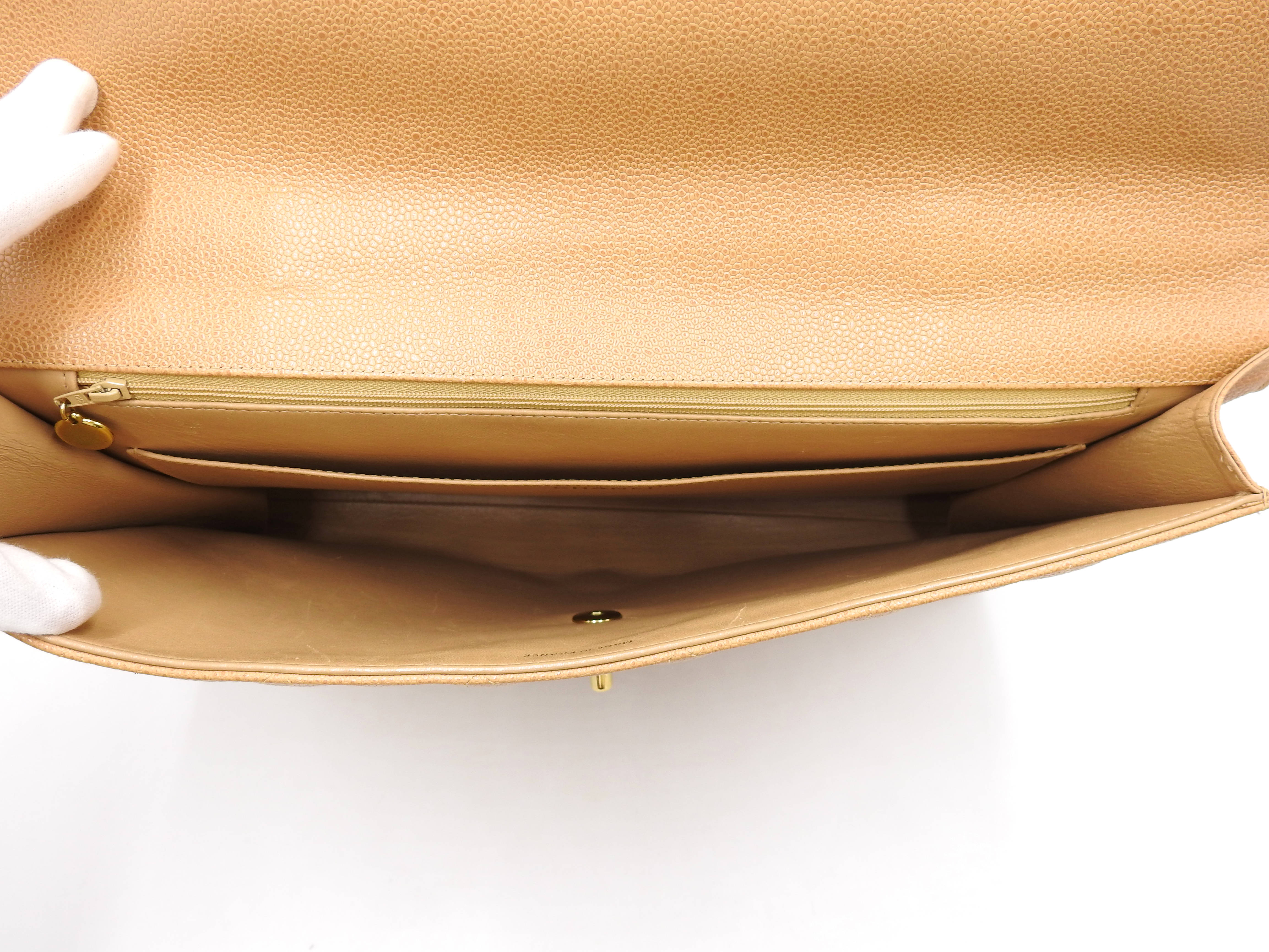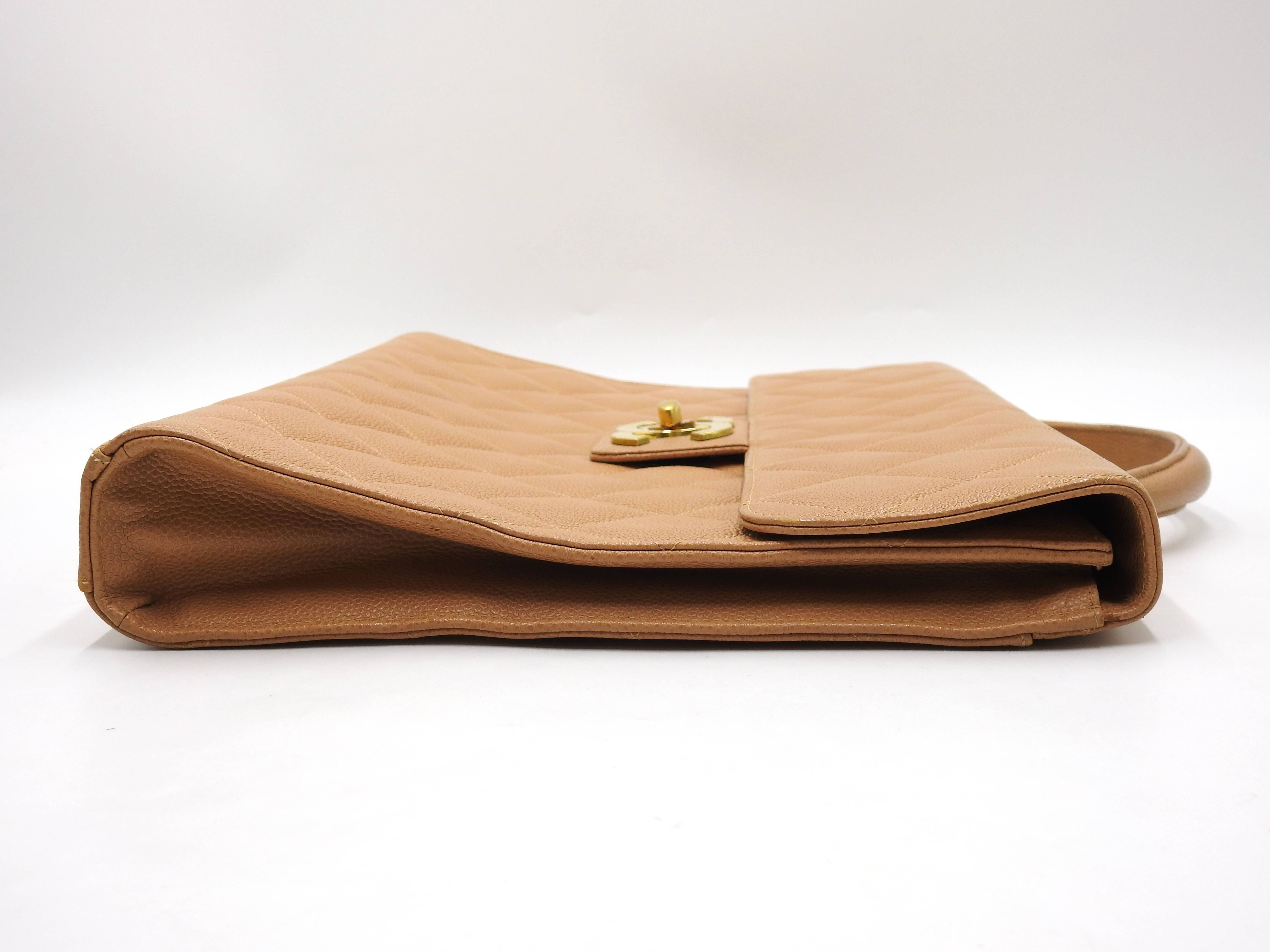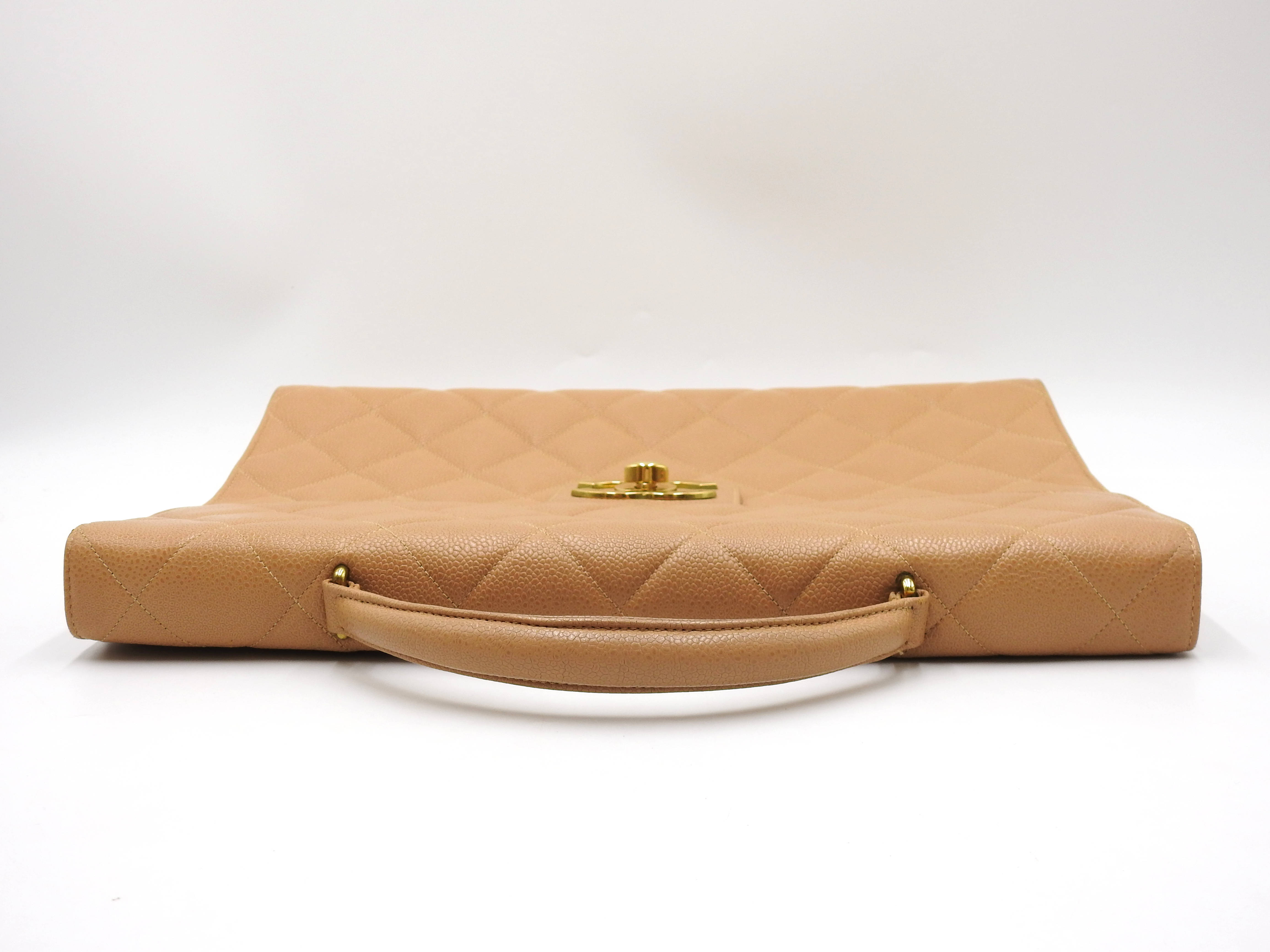 CHANEL CC Matelasse Briefcase Business Bag Caviarskin Leather Beige Gold X-9057
