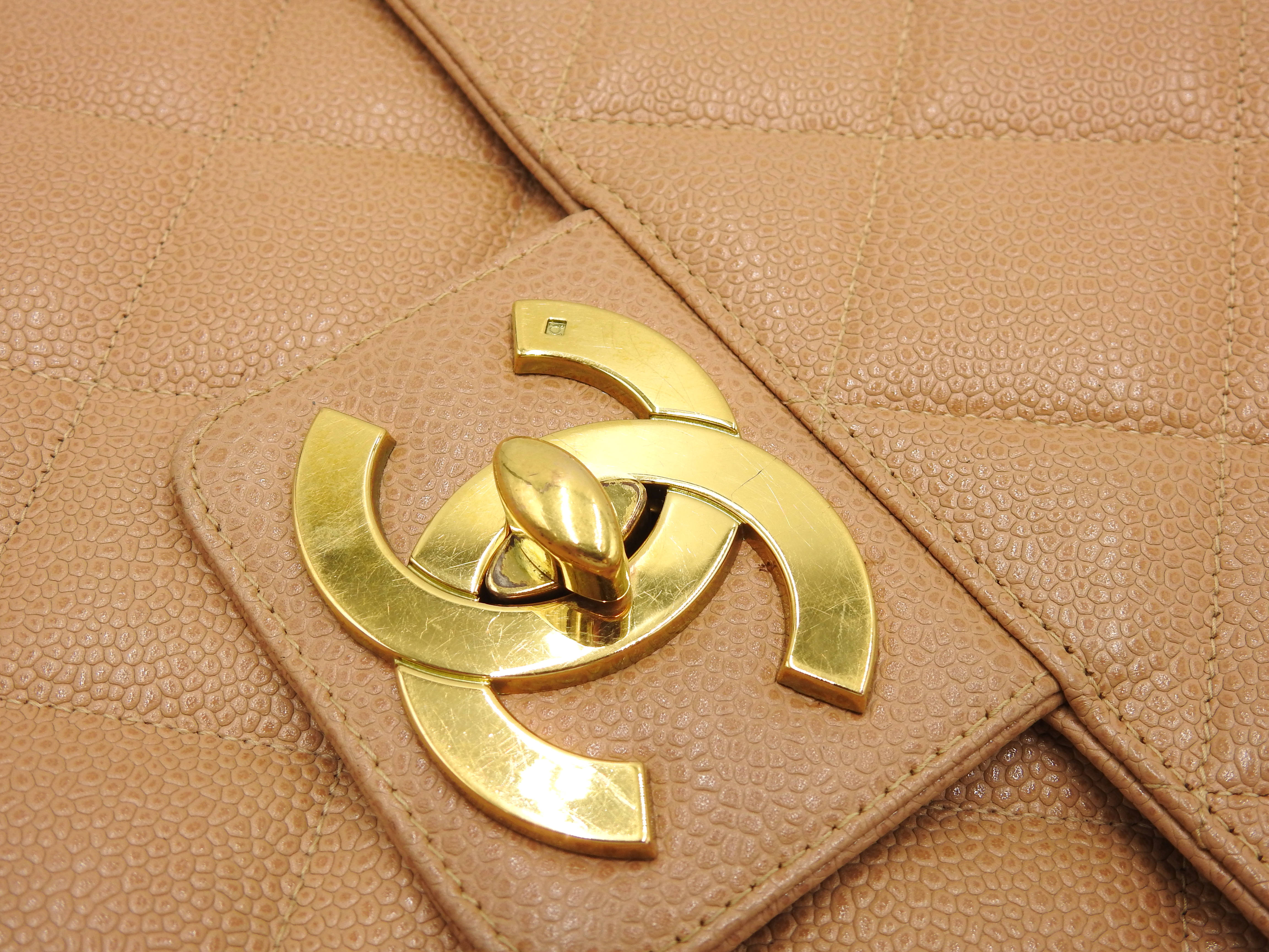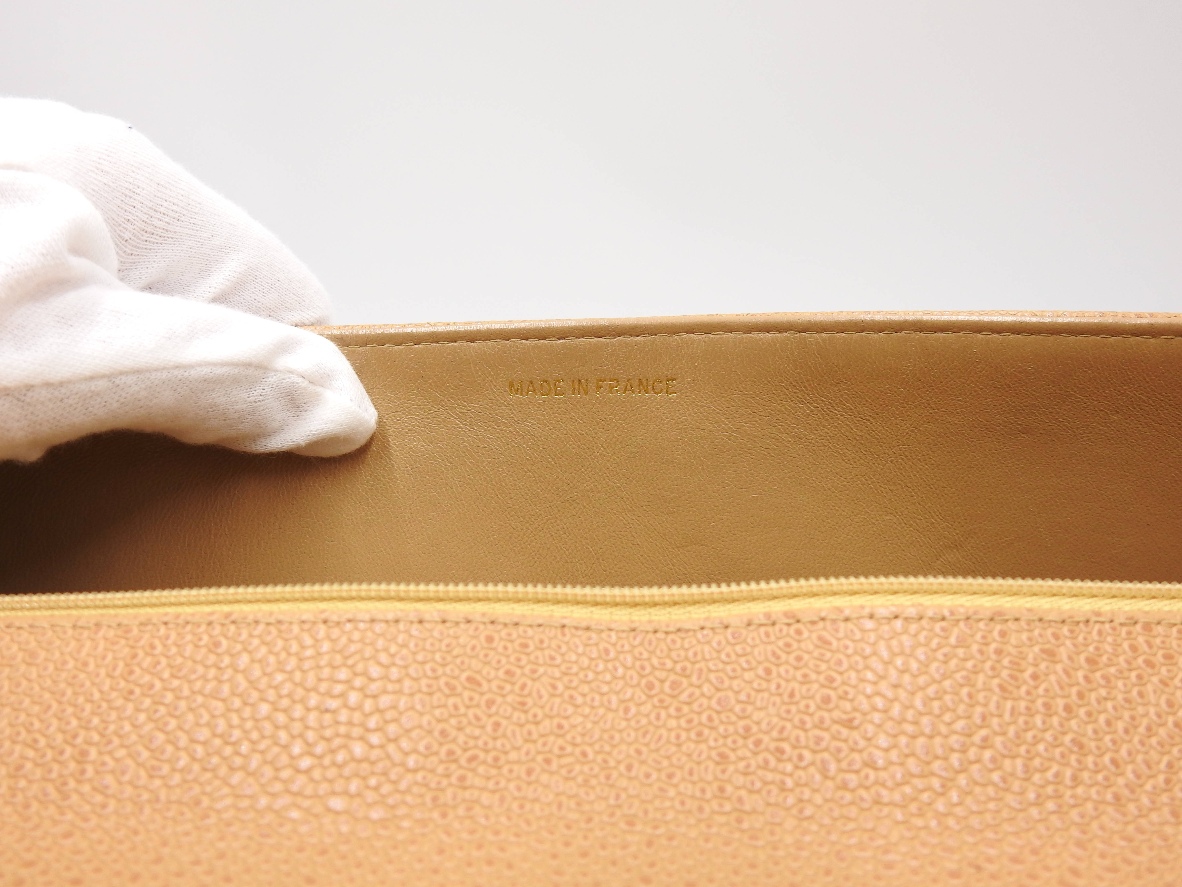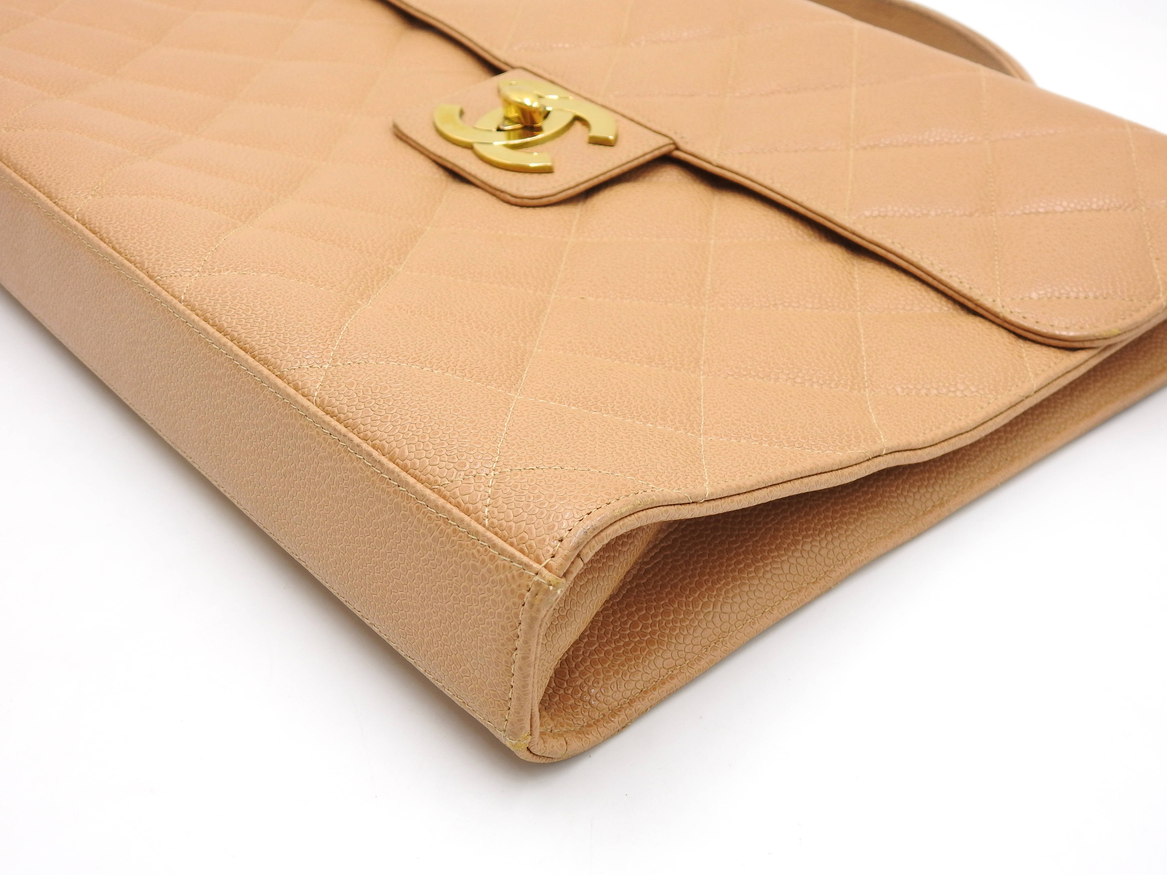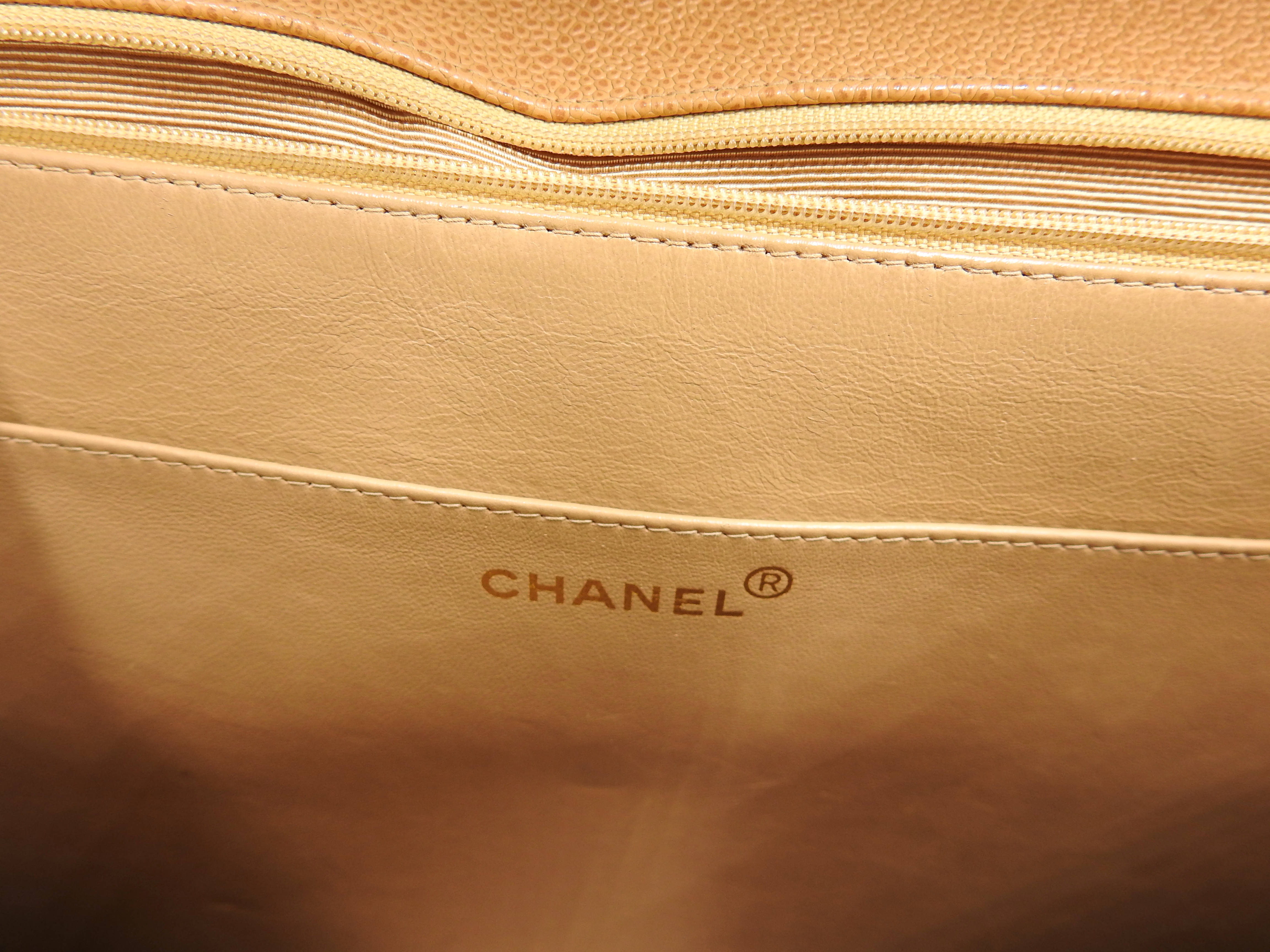CHANEL CC Matelasse Briefcase Business Bag Caviarskin Leather Beige Gold X-9057