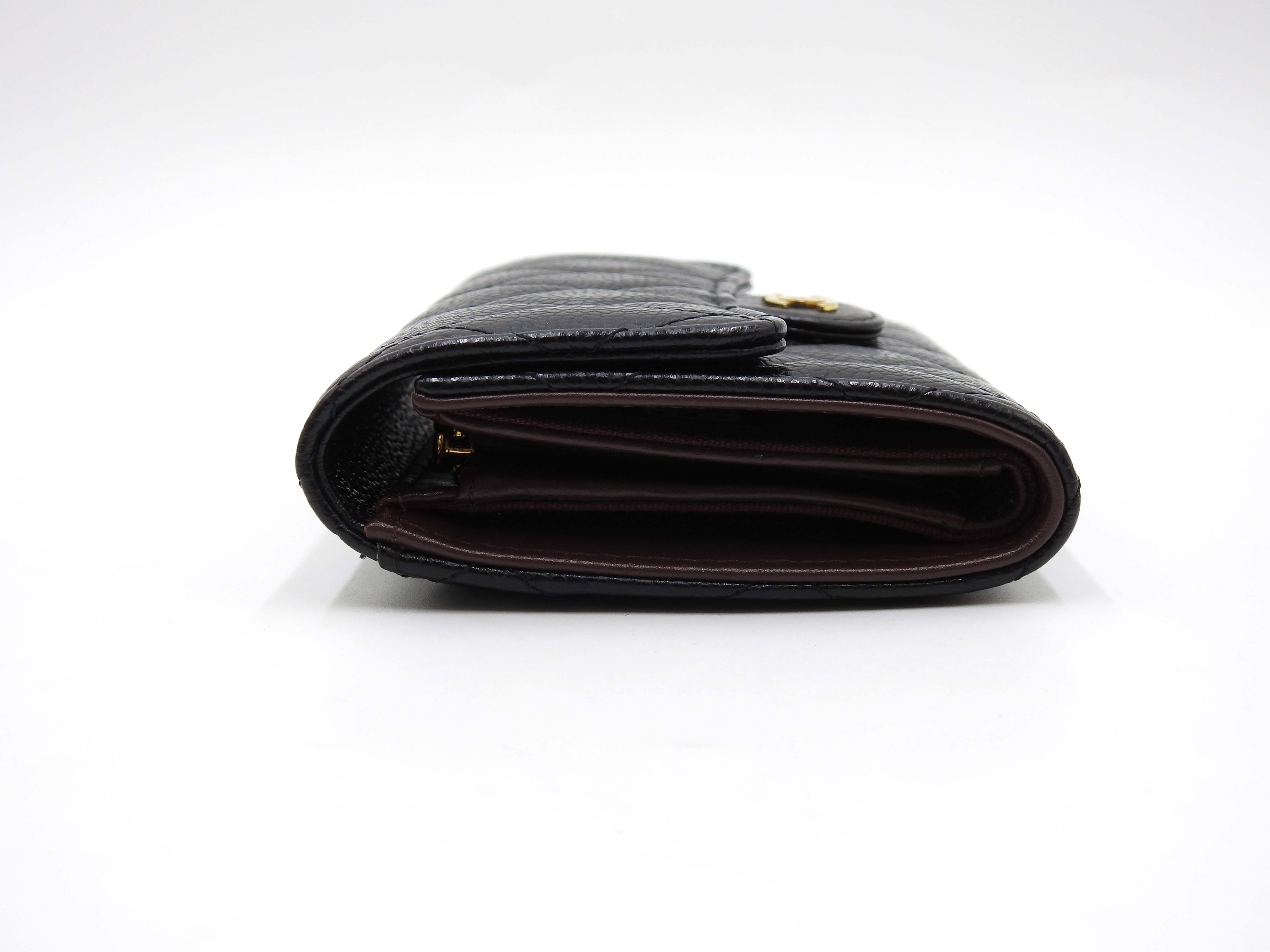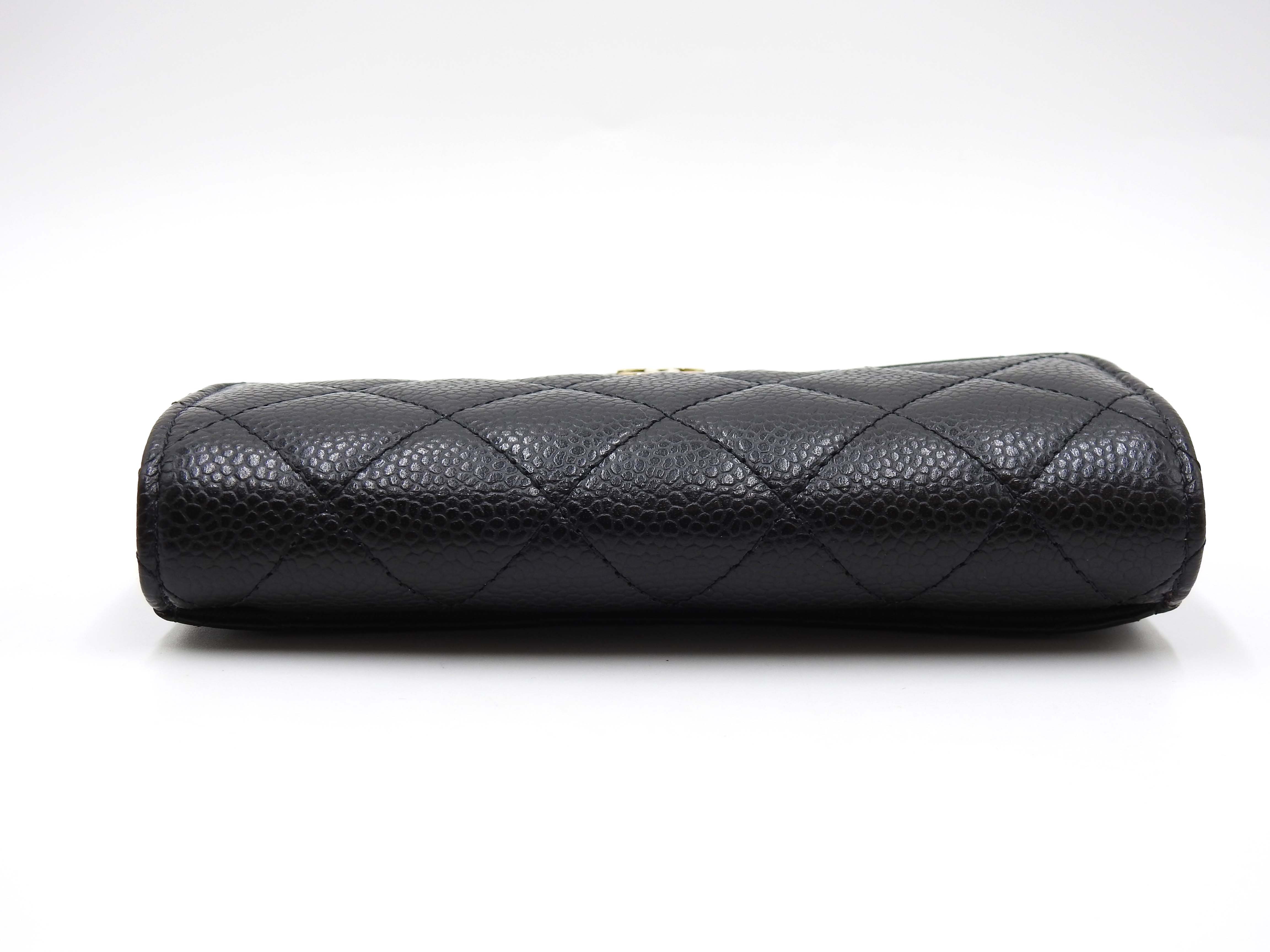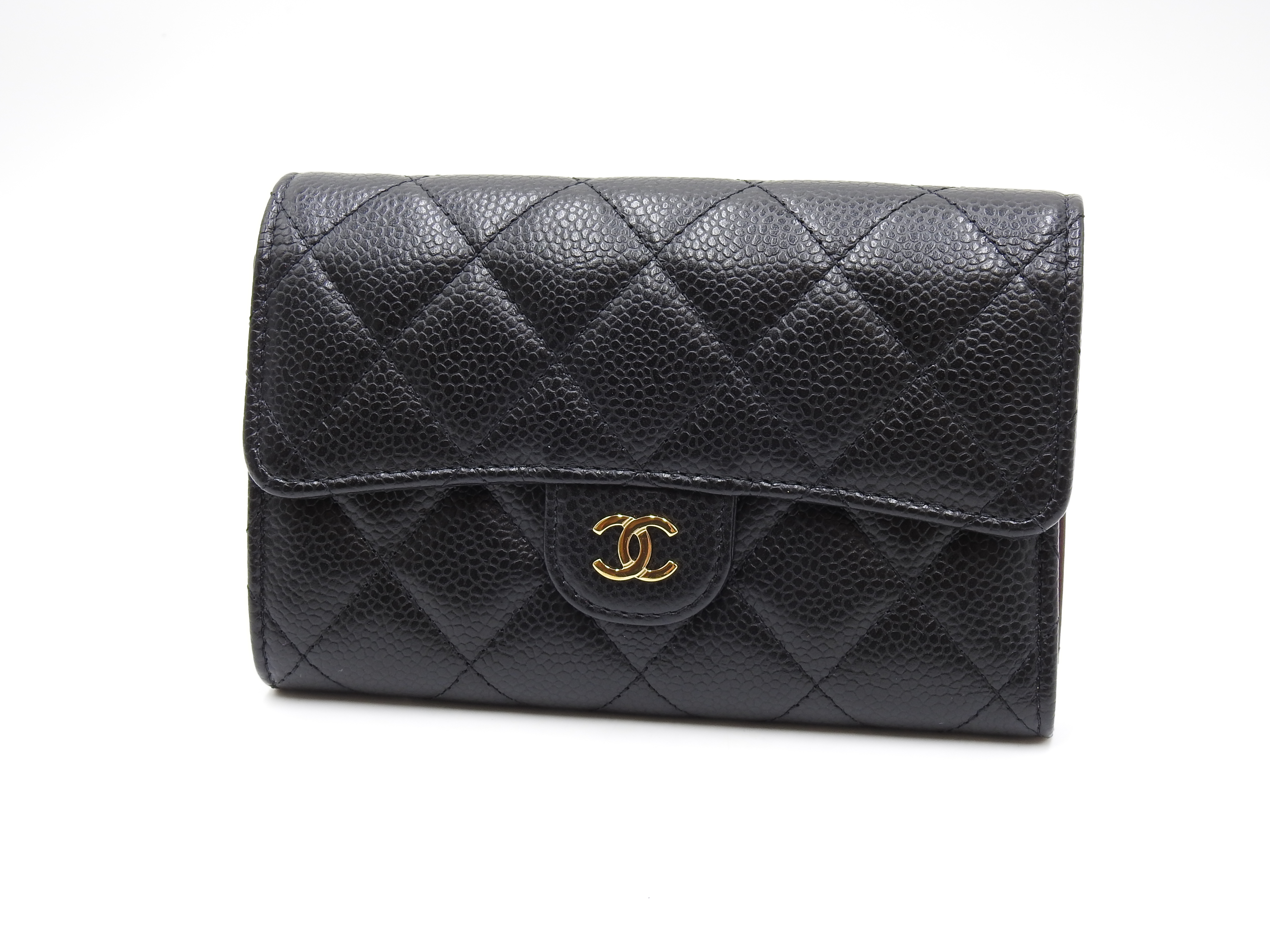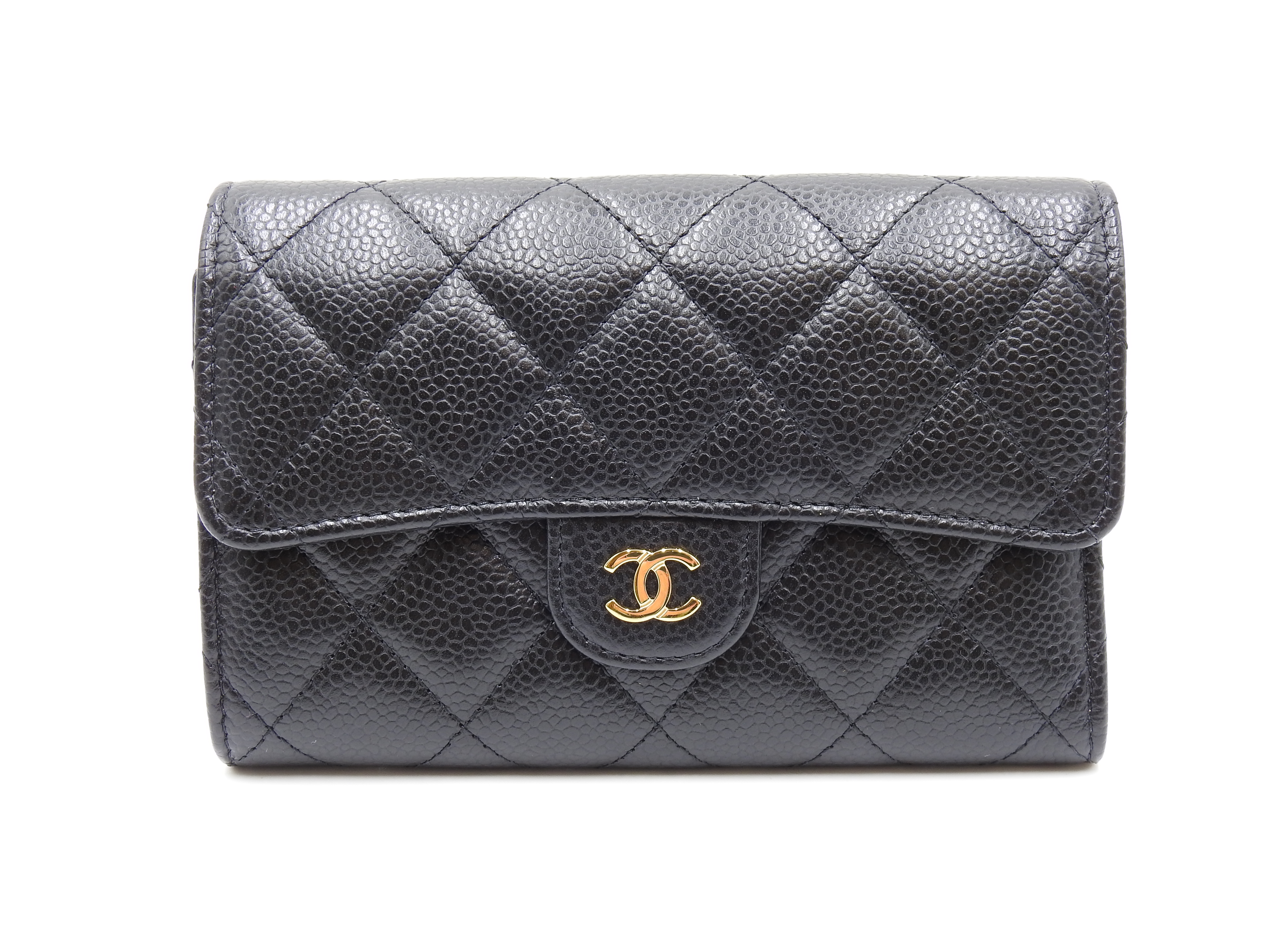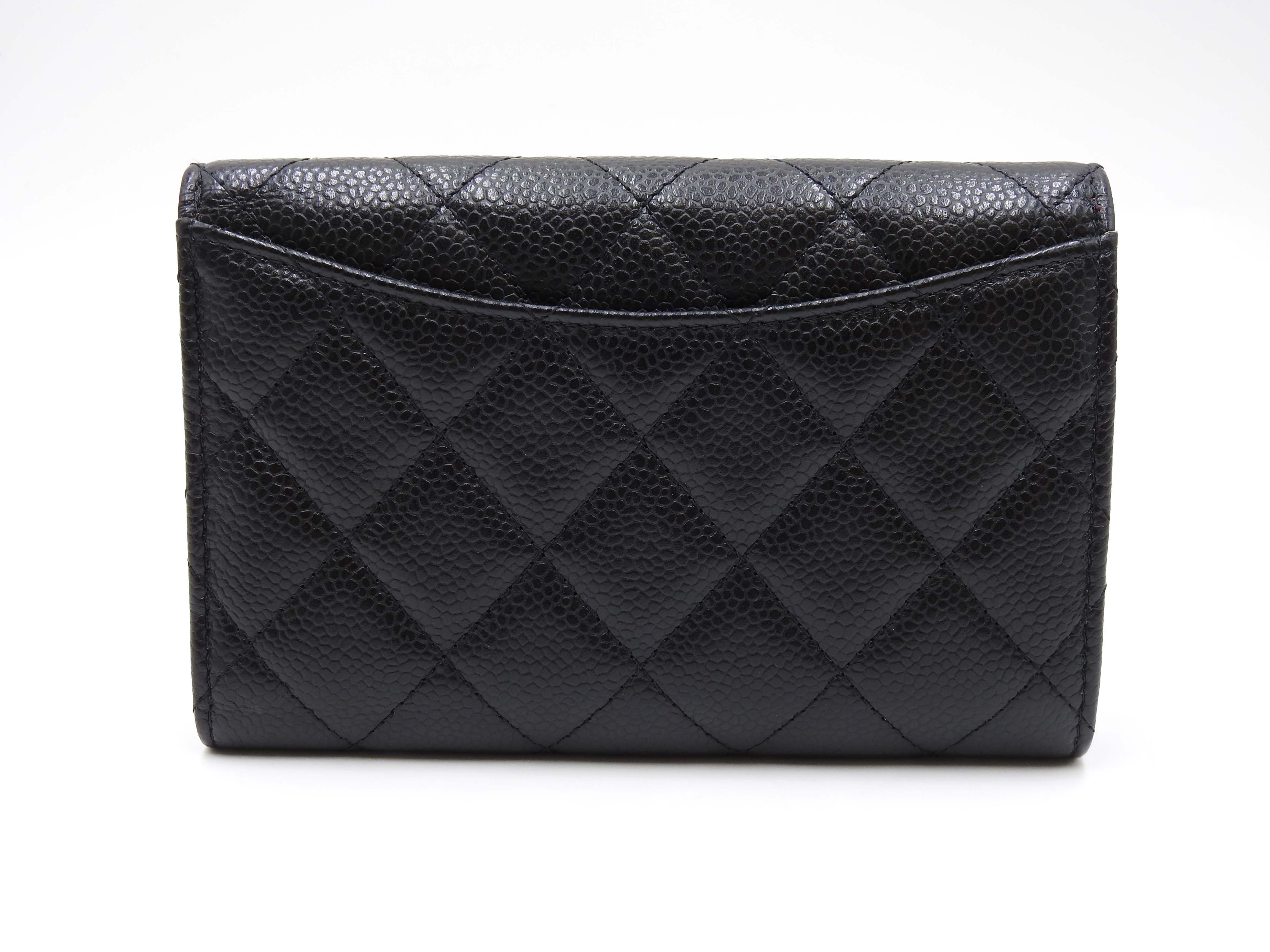 Auth CHANEL CC Matelasse Timeless Classic Trifold Medium Flap Compact Wallet Caviarskin Leather Black Gold Hardware AP0232 X-8886