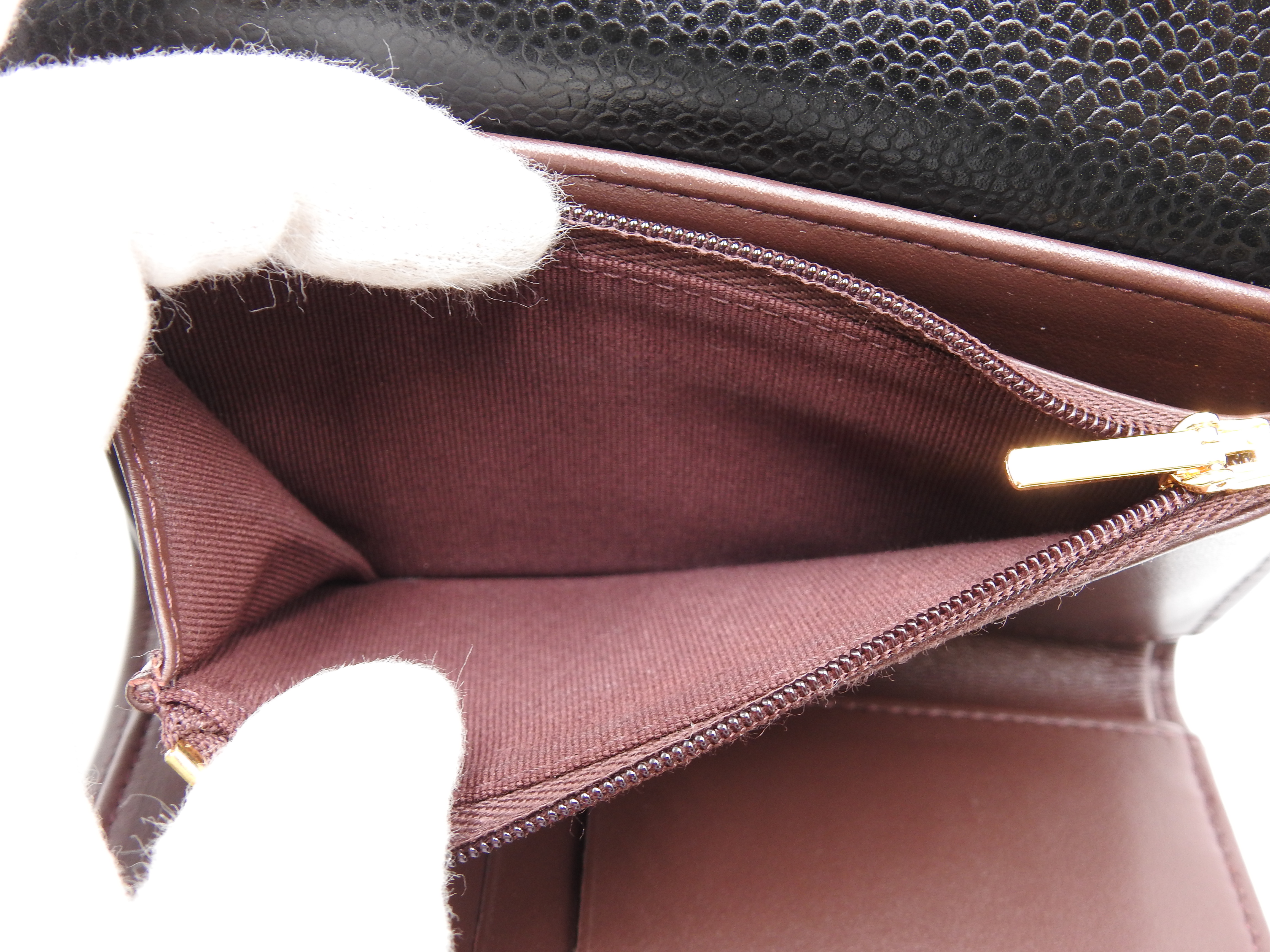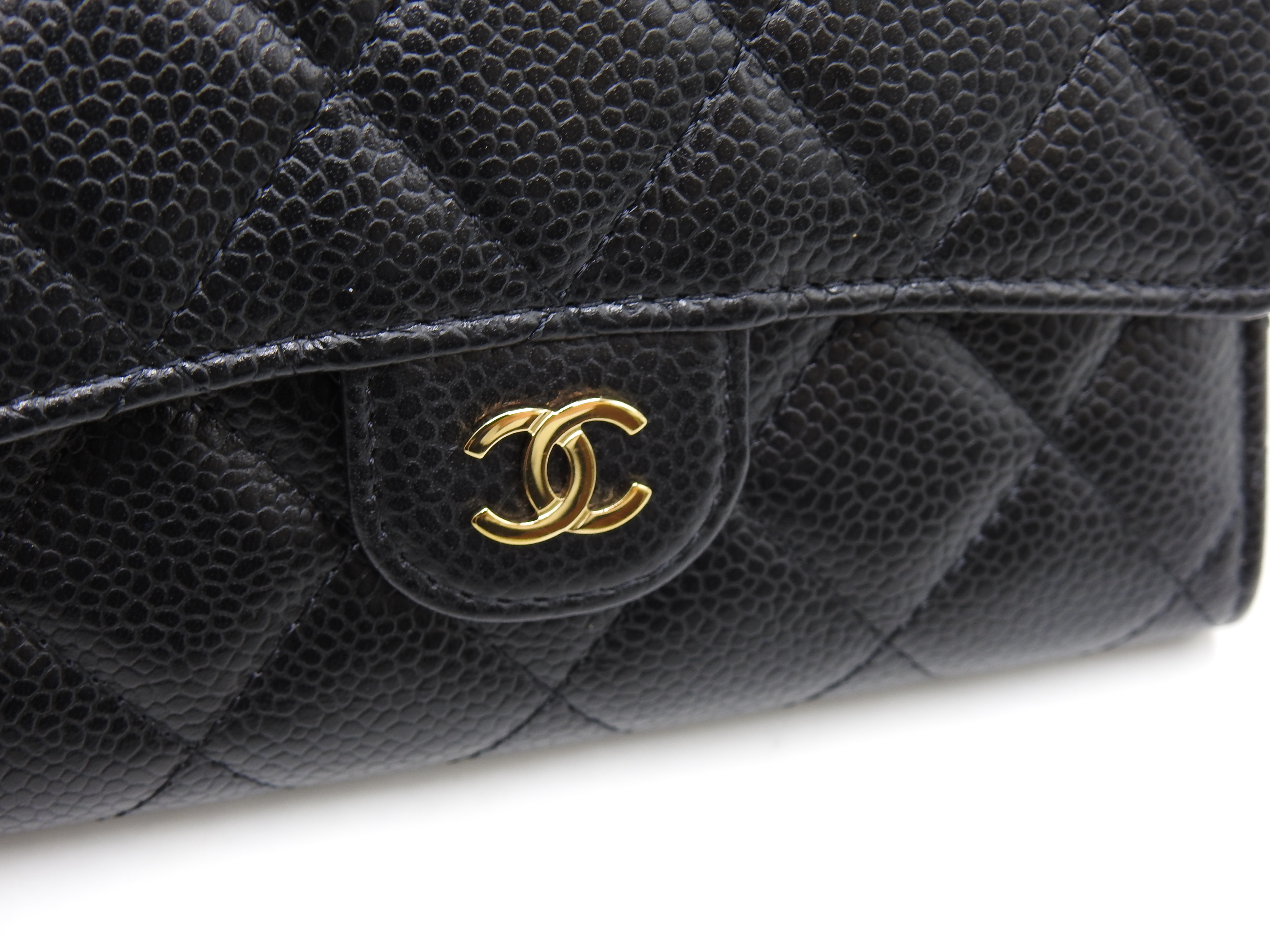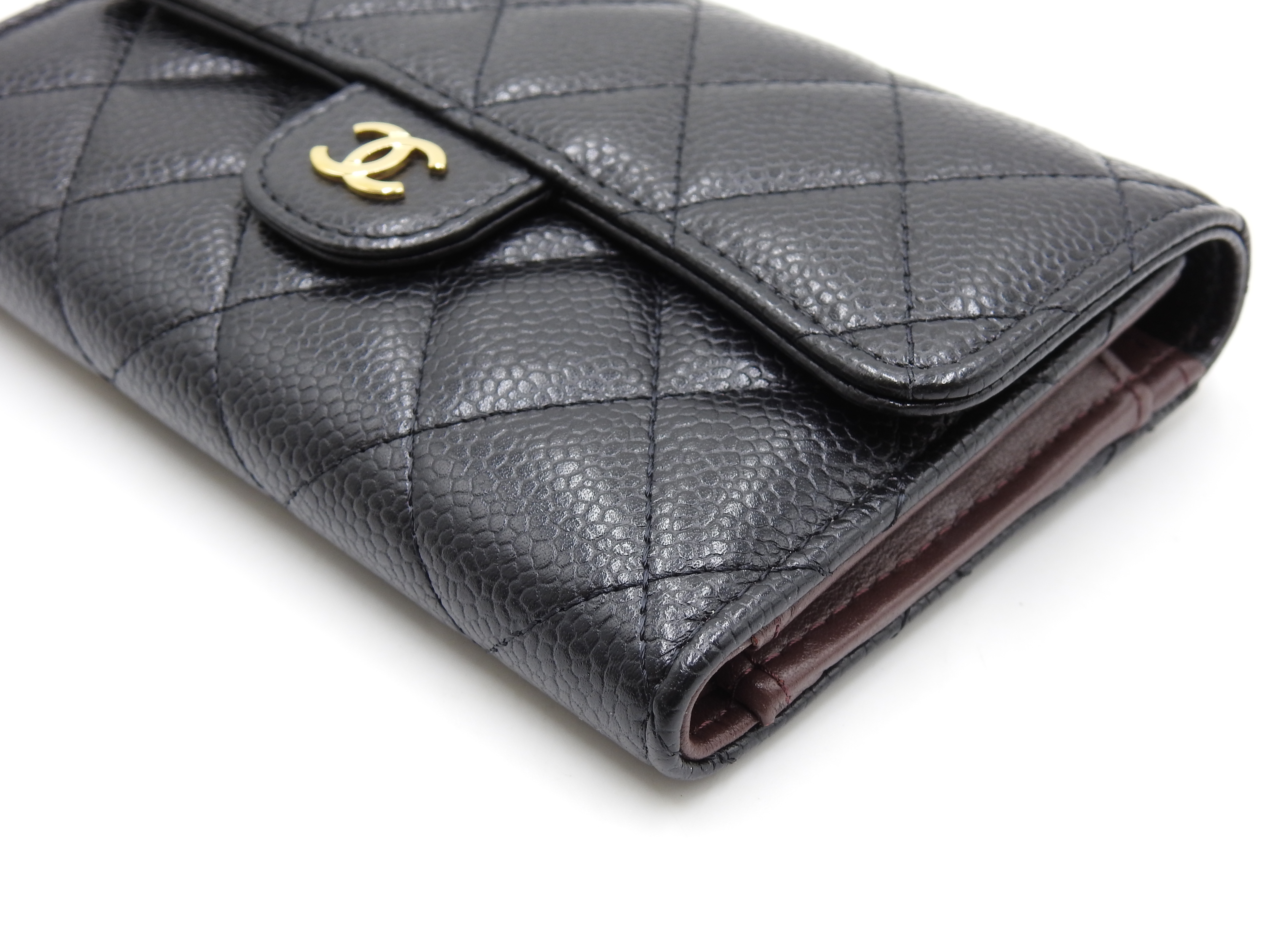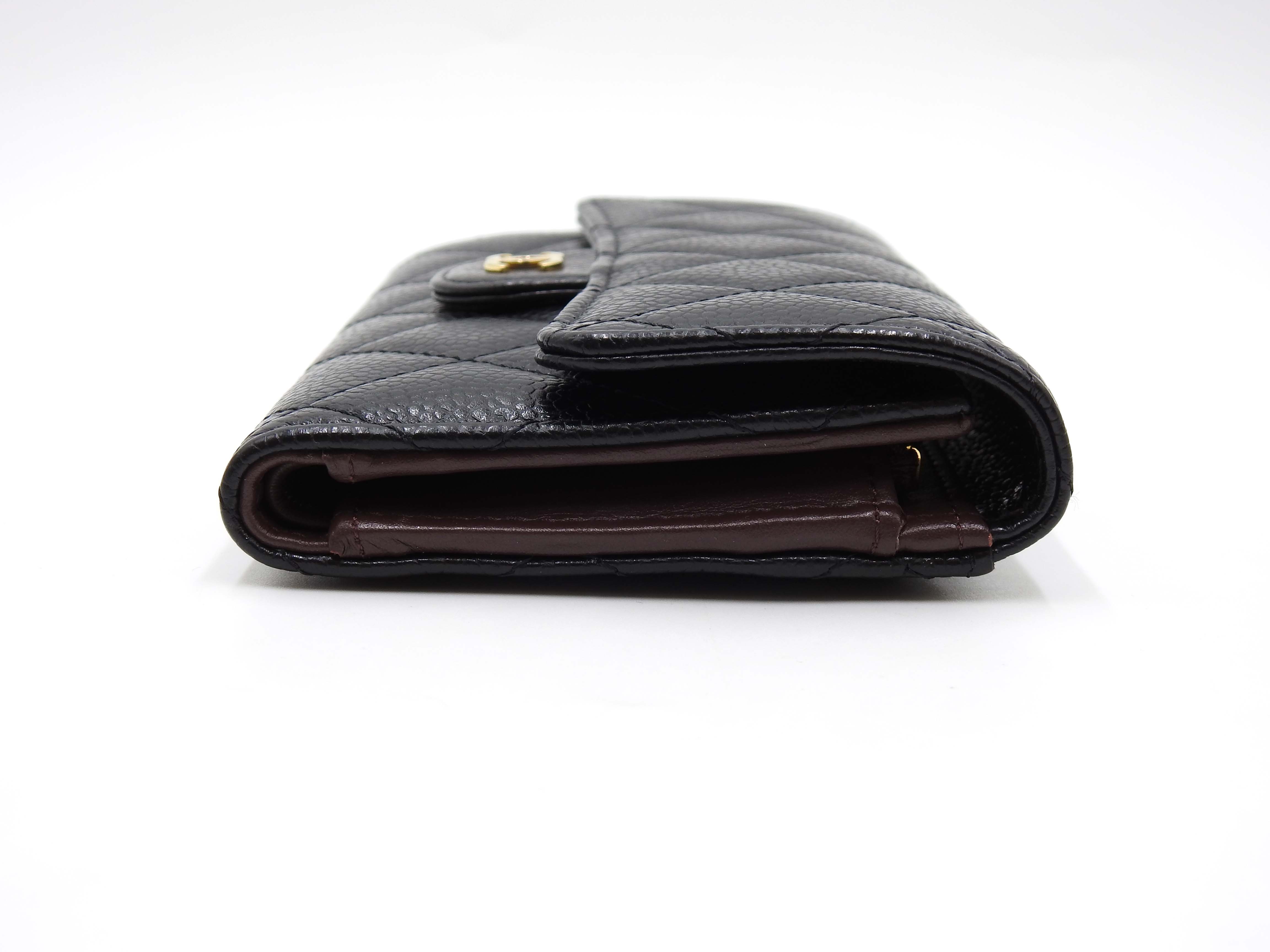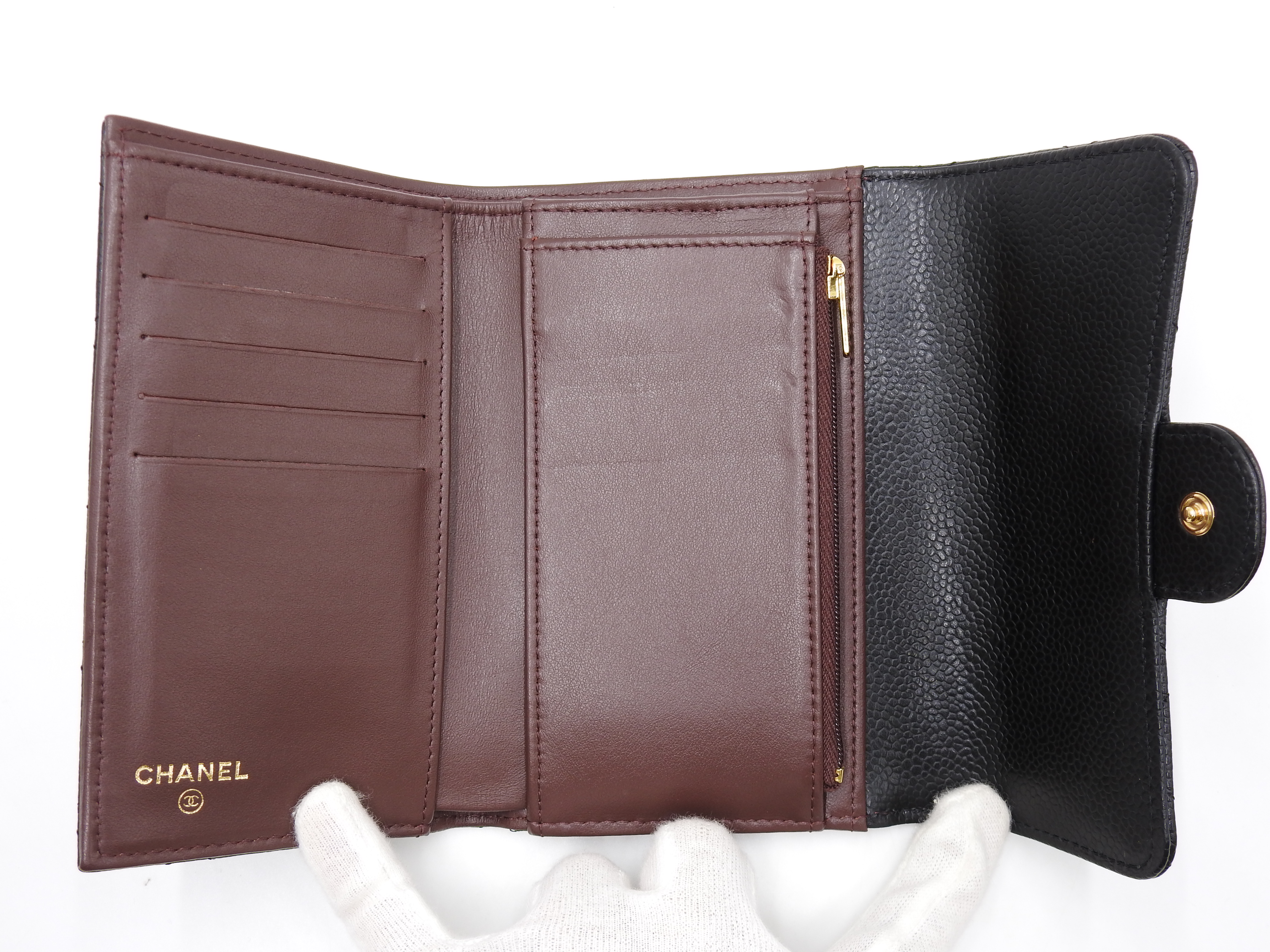 Auth CHANEL CC Matelasse Timeless Classic Trifold Medium Flap Compact Wallet Caviarskin Leather Black Gold Hardware AP0232 X-8886