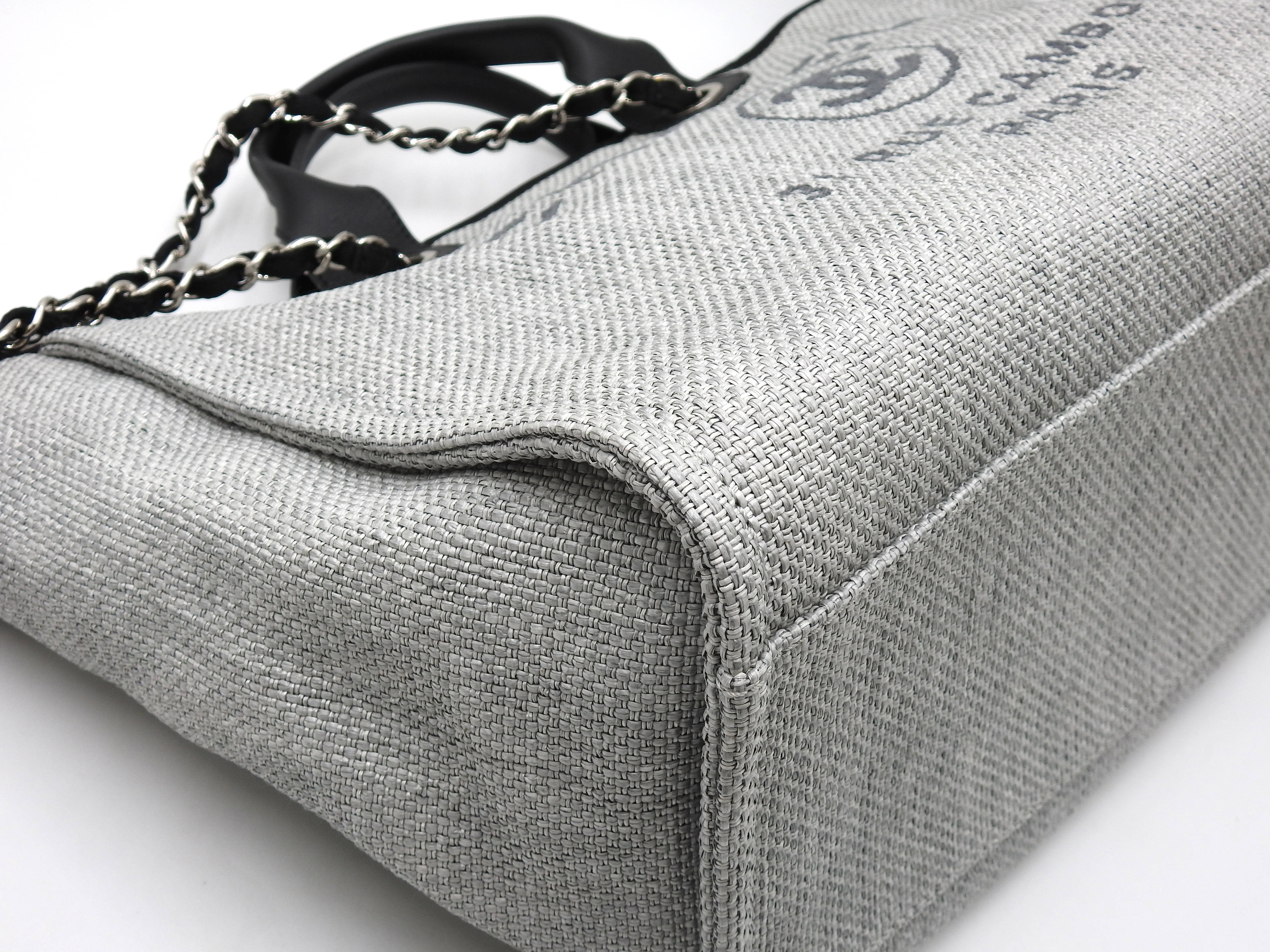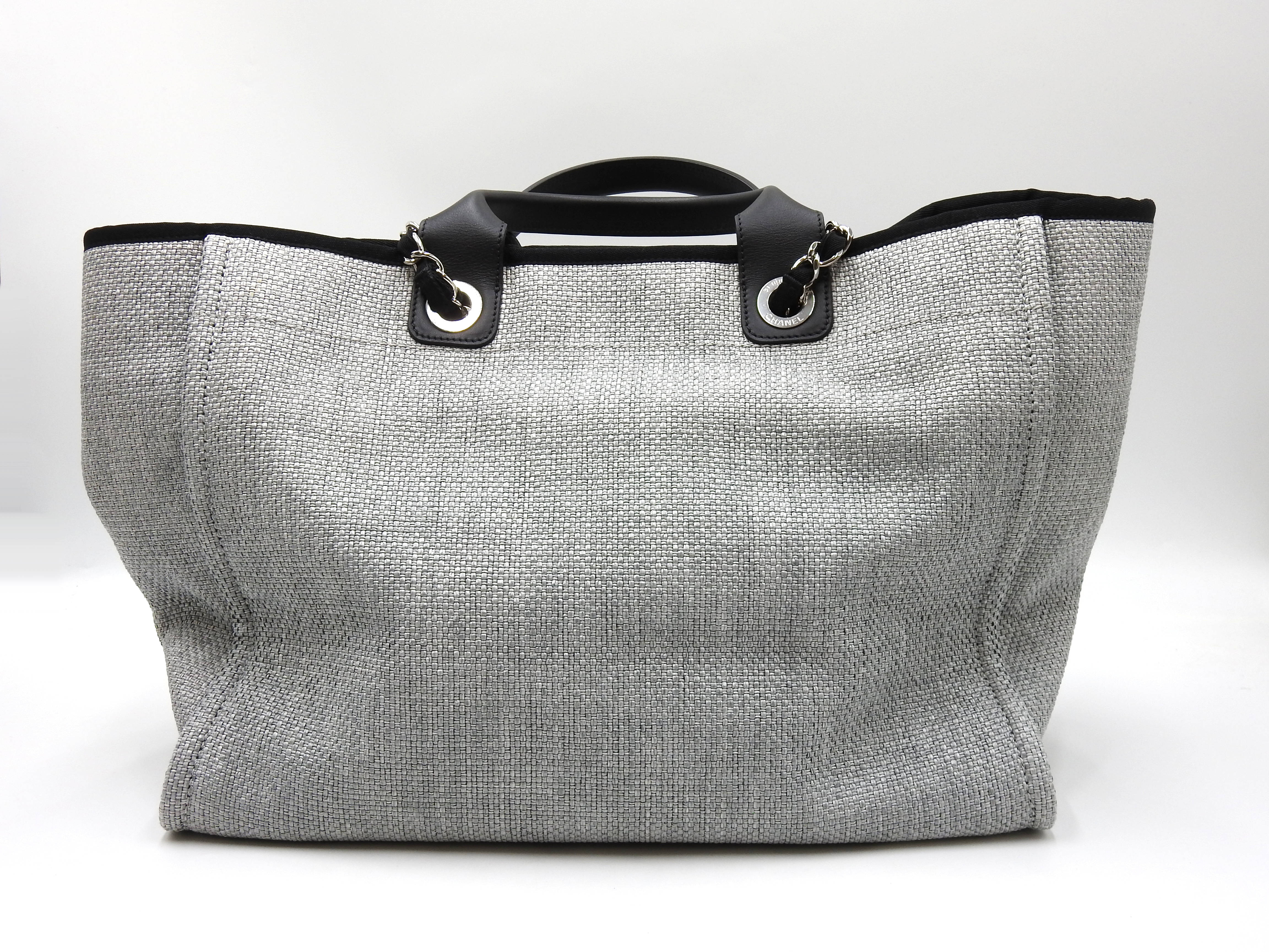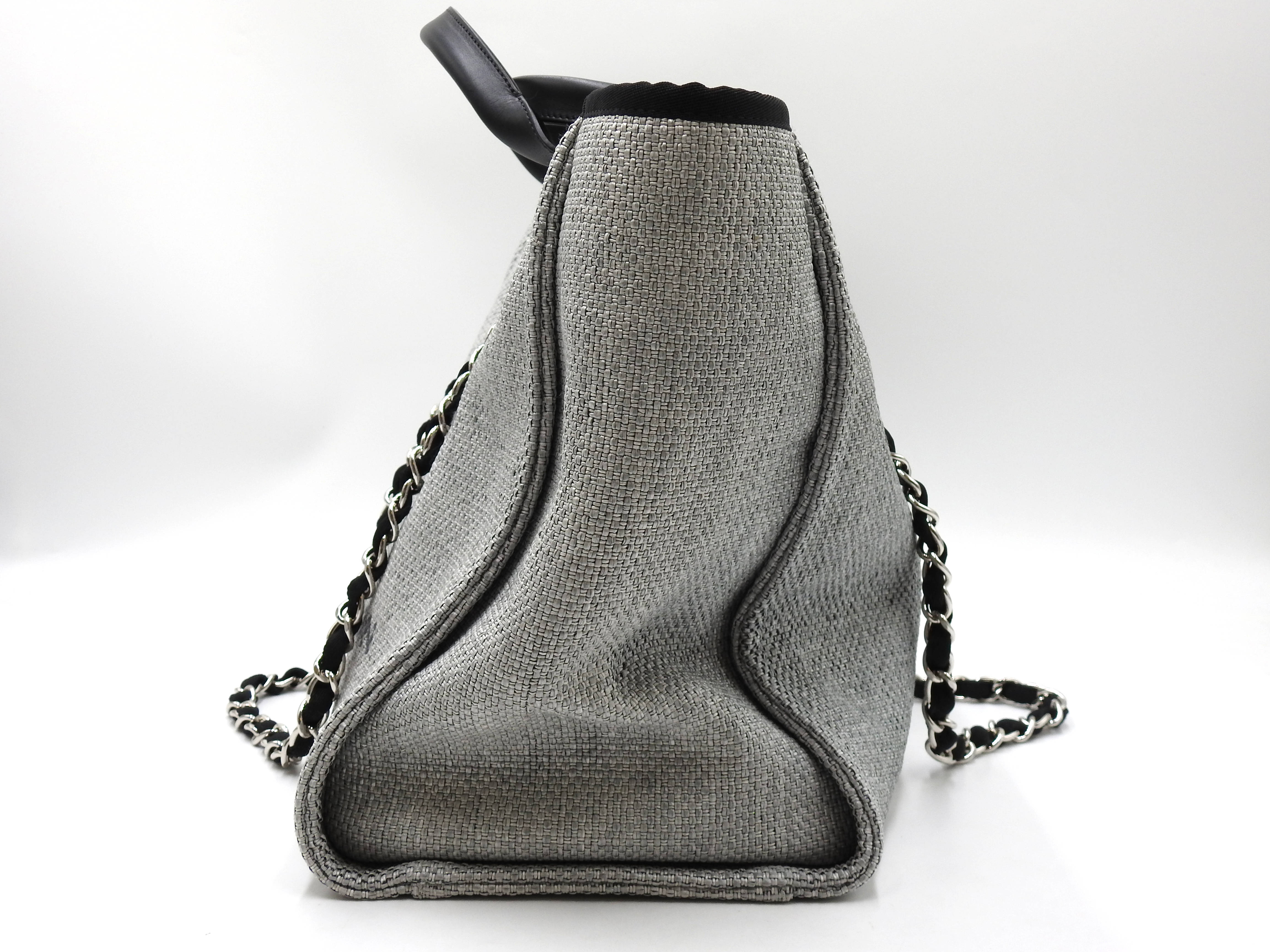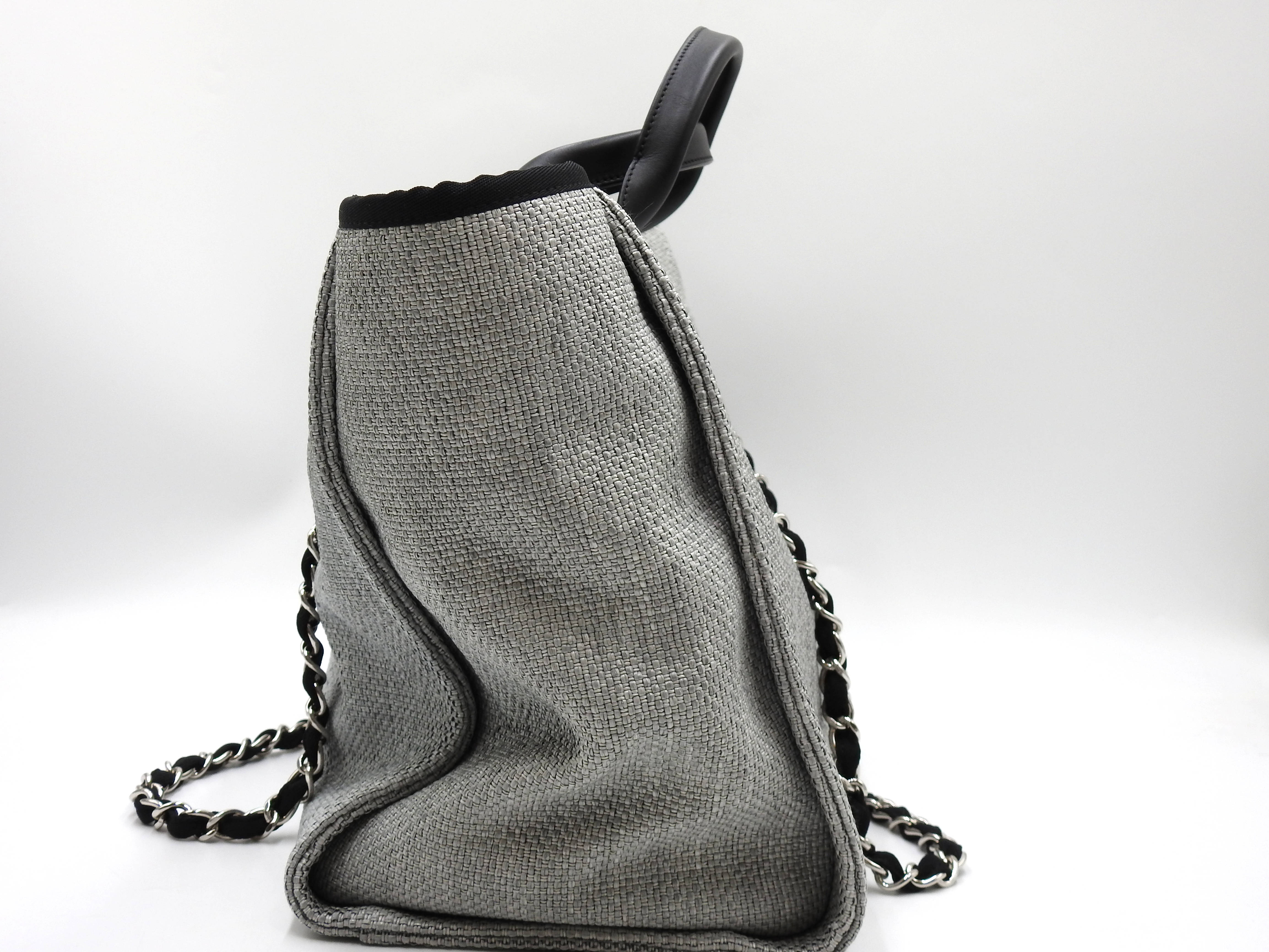 Auth Chanel Deauville Large 2way Tote Bag Shoulder Bag Straw Canvas Leather Grey Silver Hardware A66941 X-8780