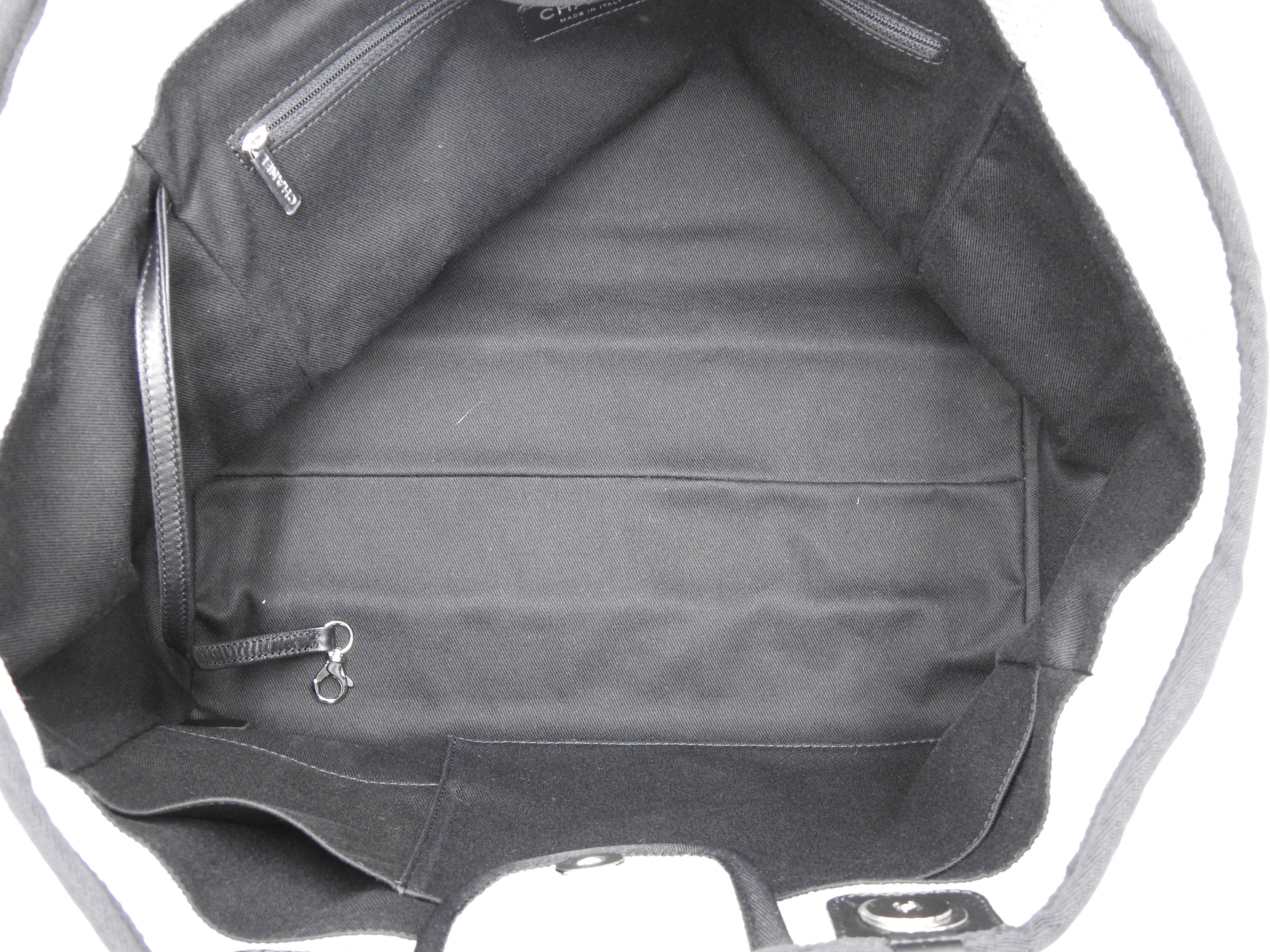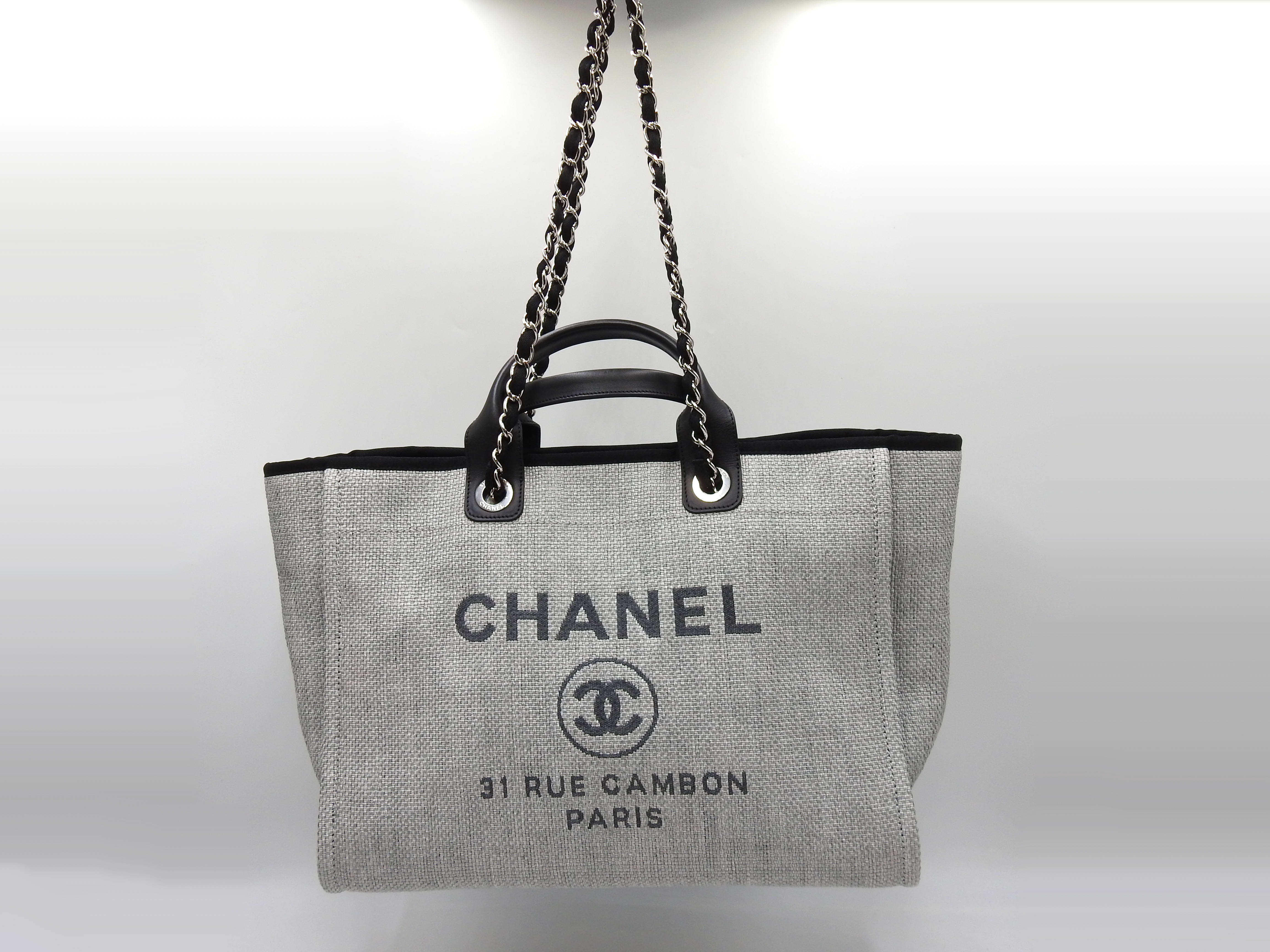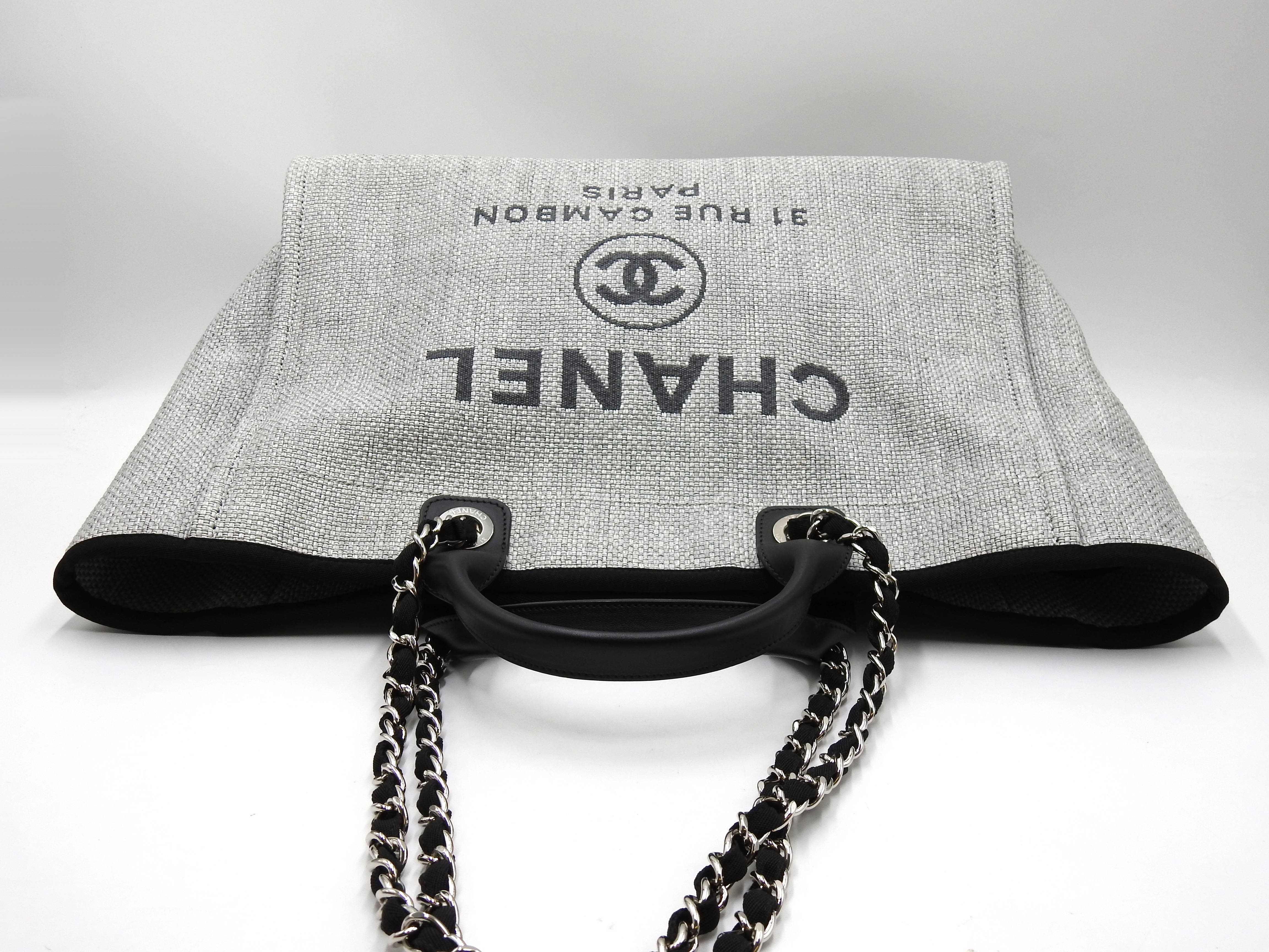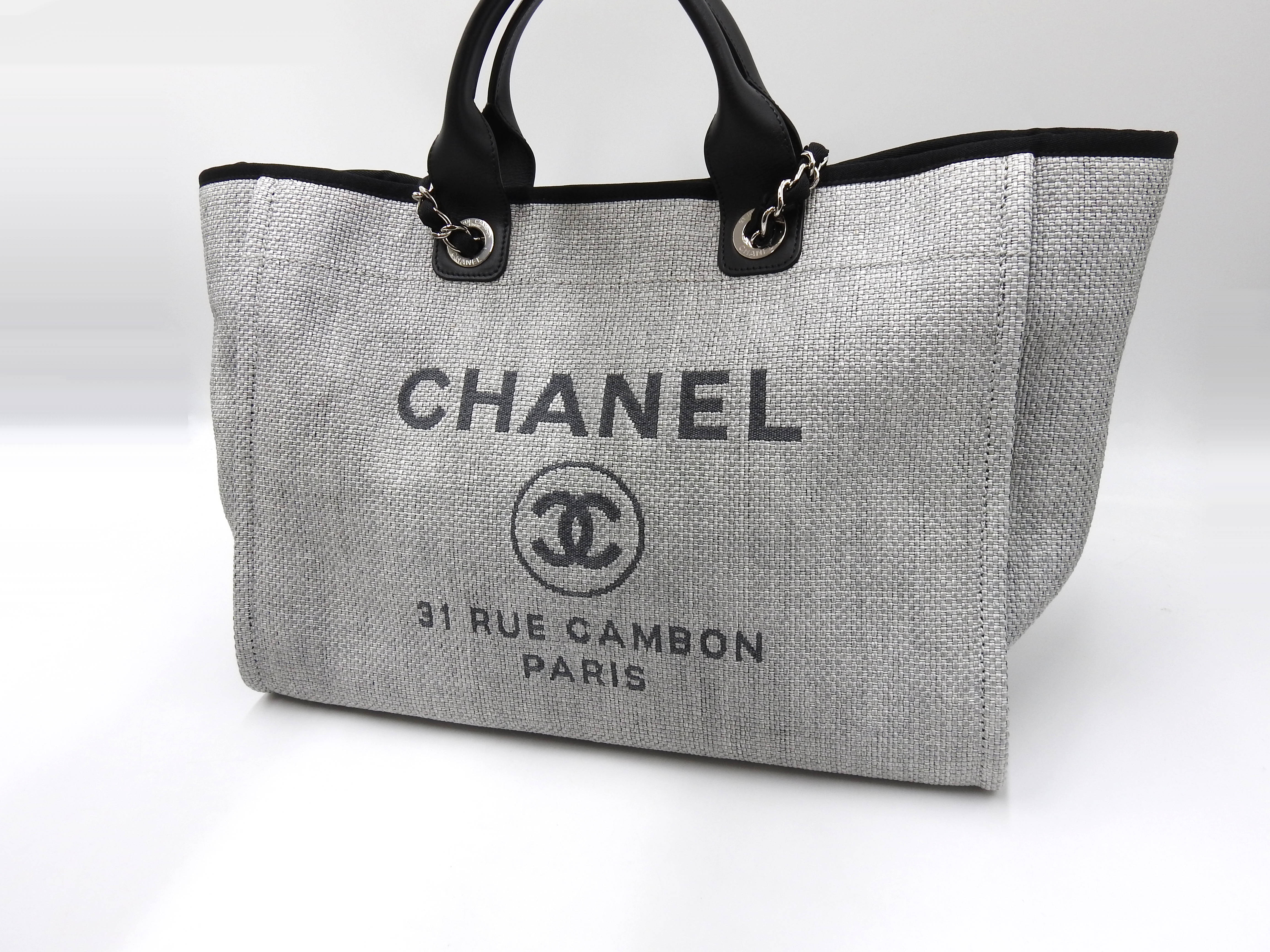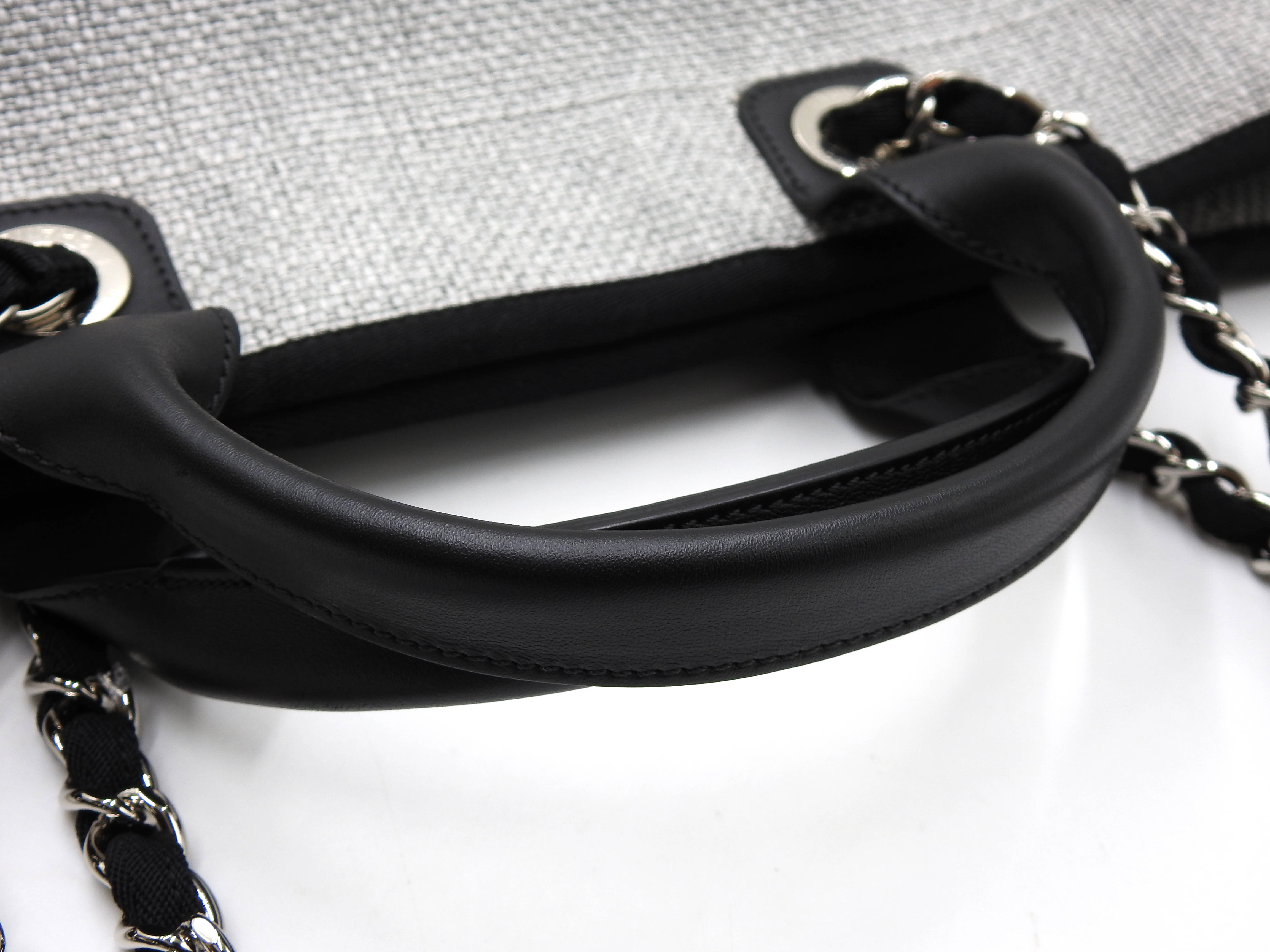Auth Chanel Deauville Large 2way Tote Bag Shoulder Bag Straw Canvas Leather Grey Silver Hardware A66941 X-8780