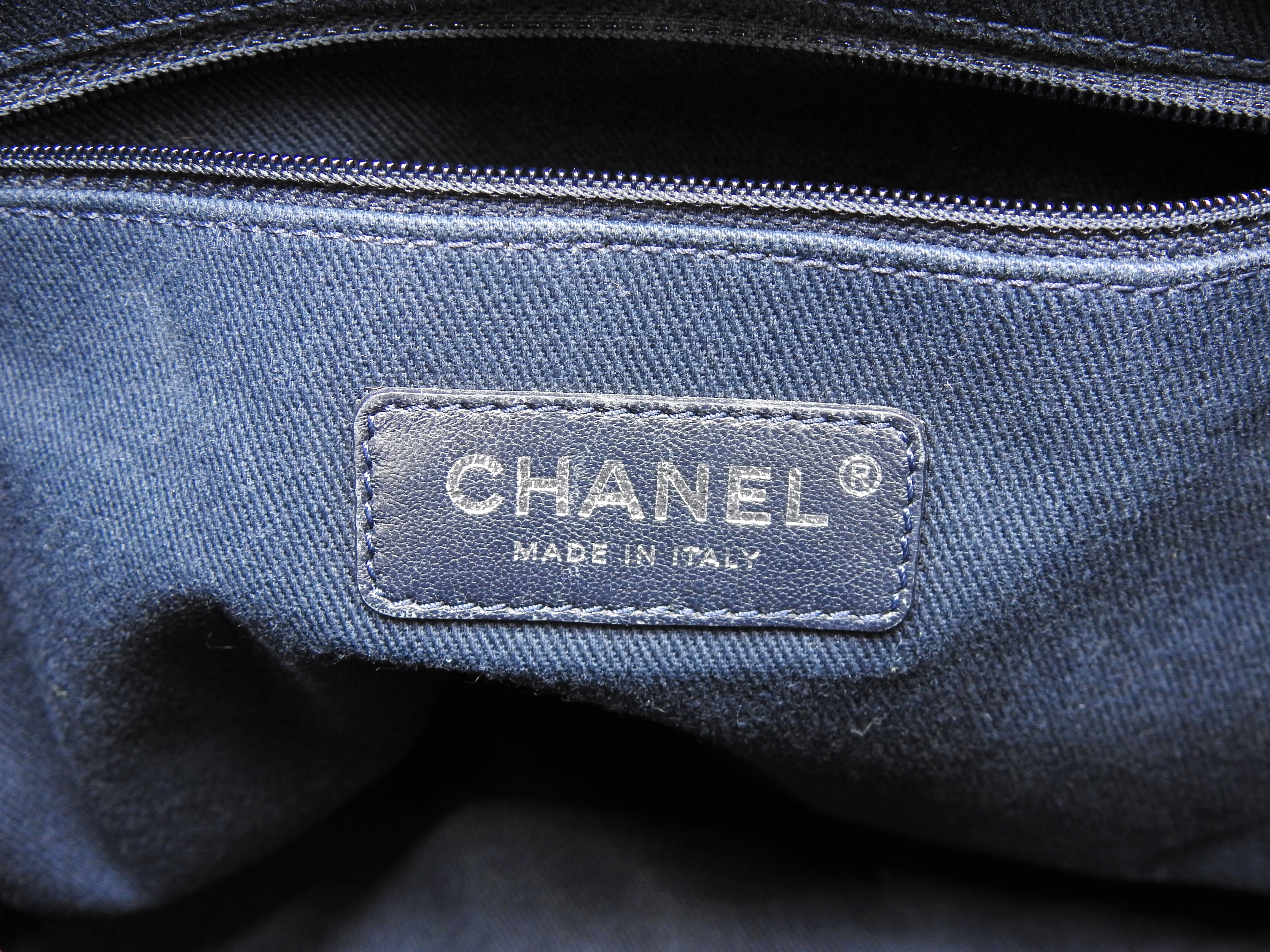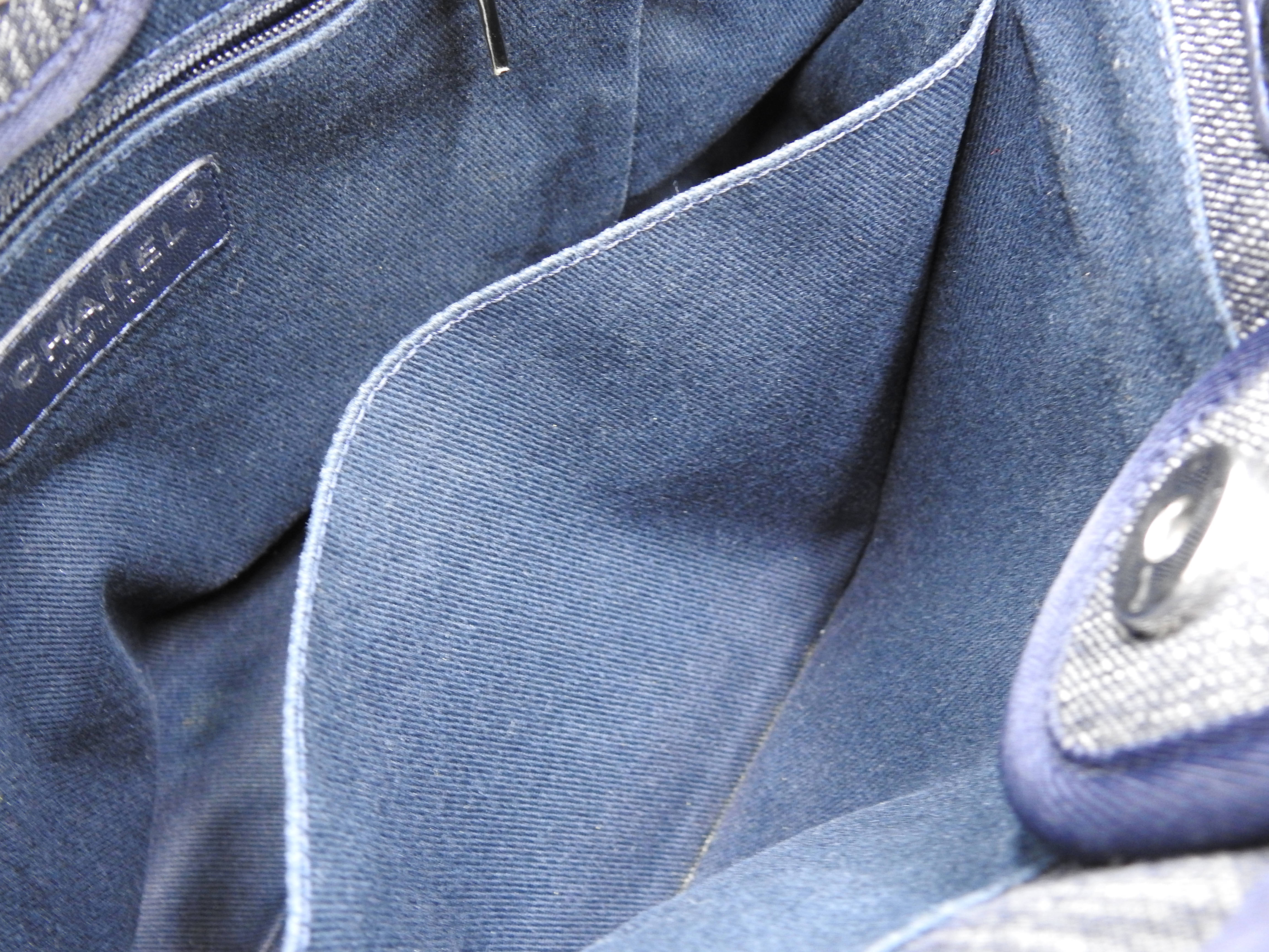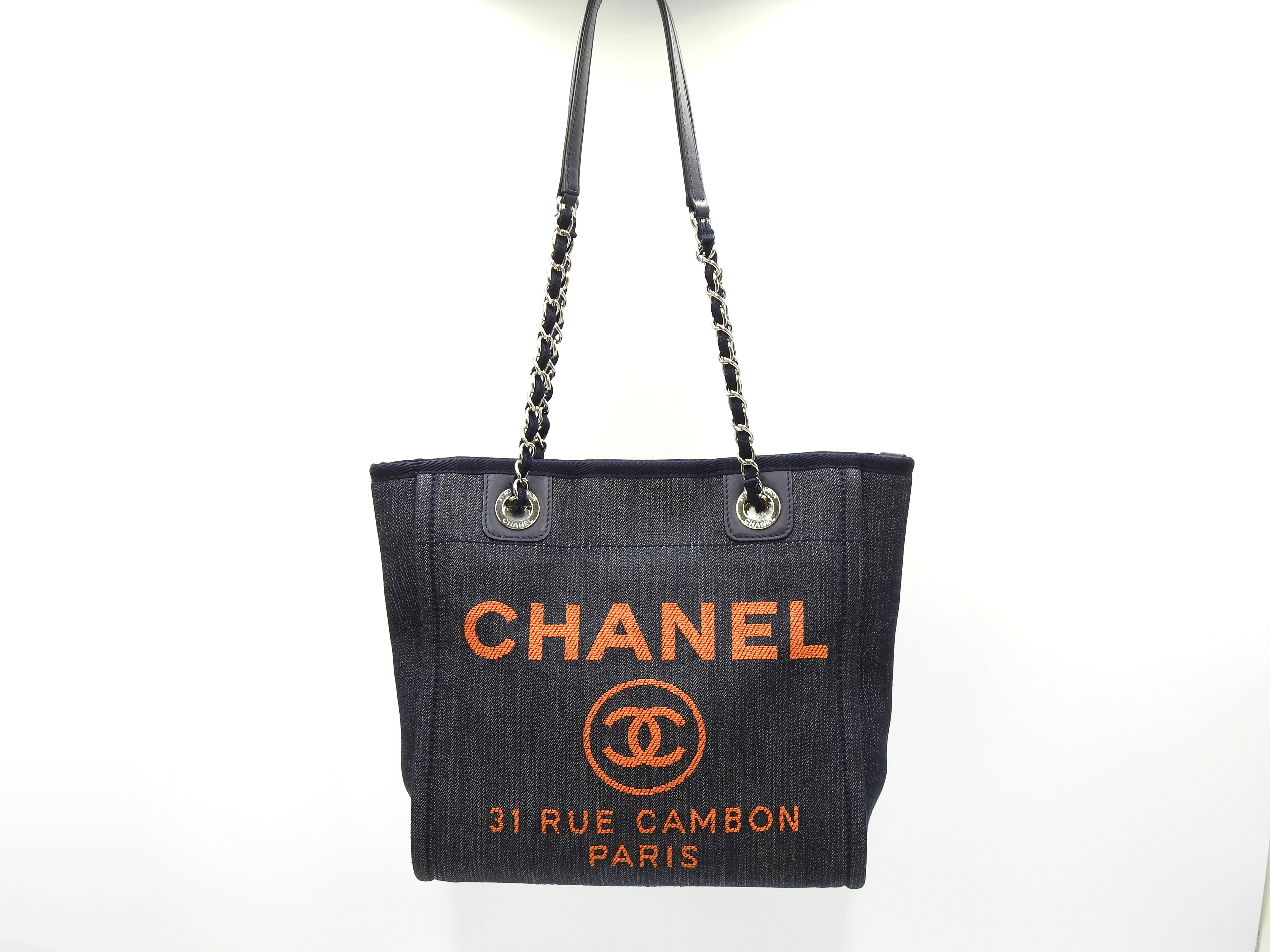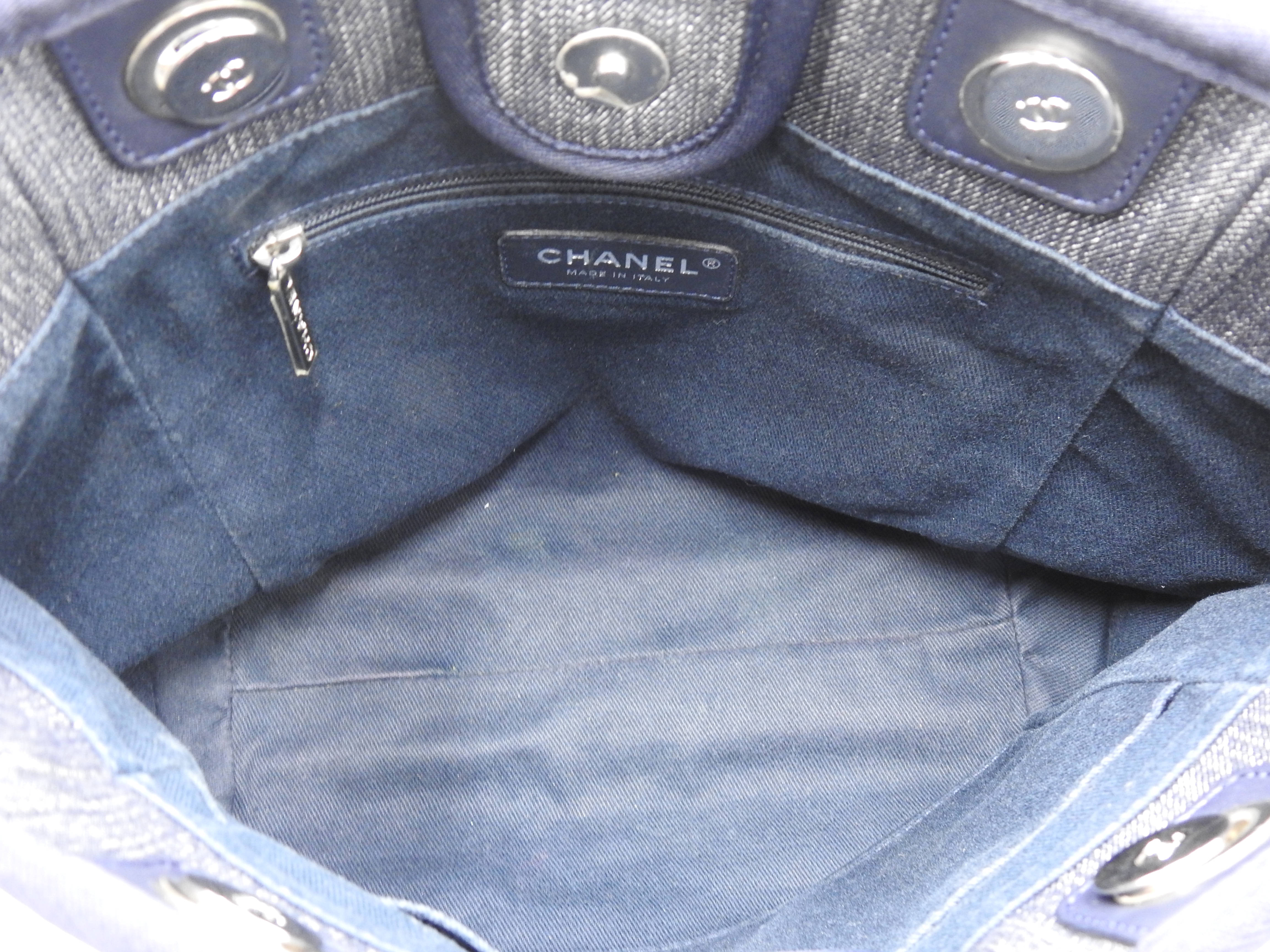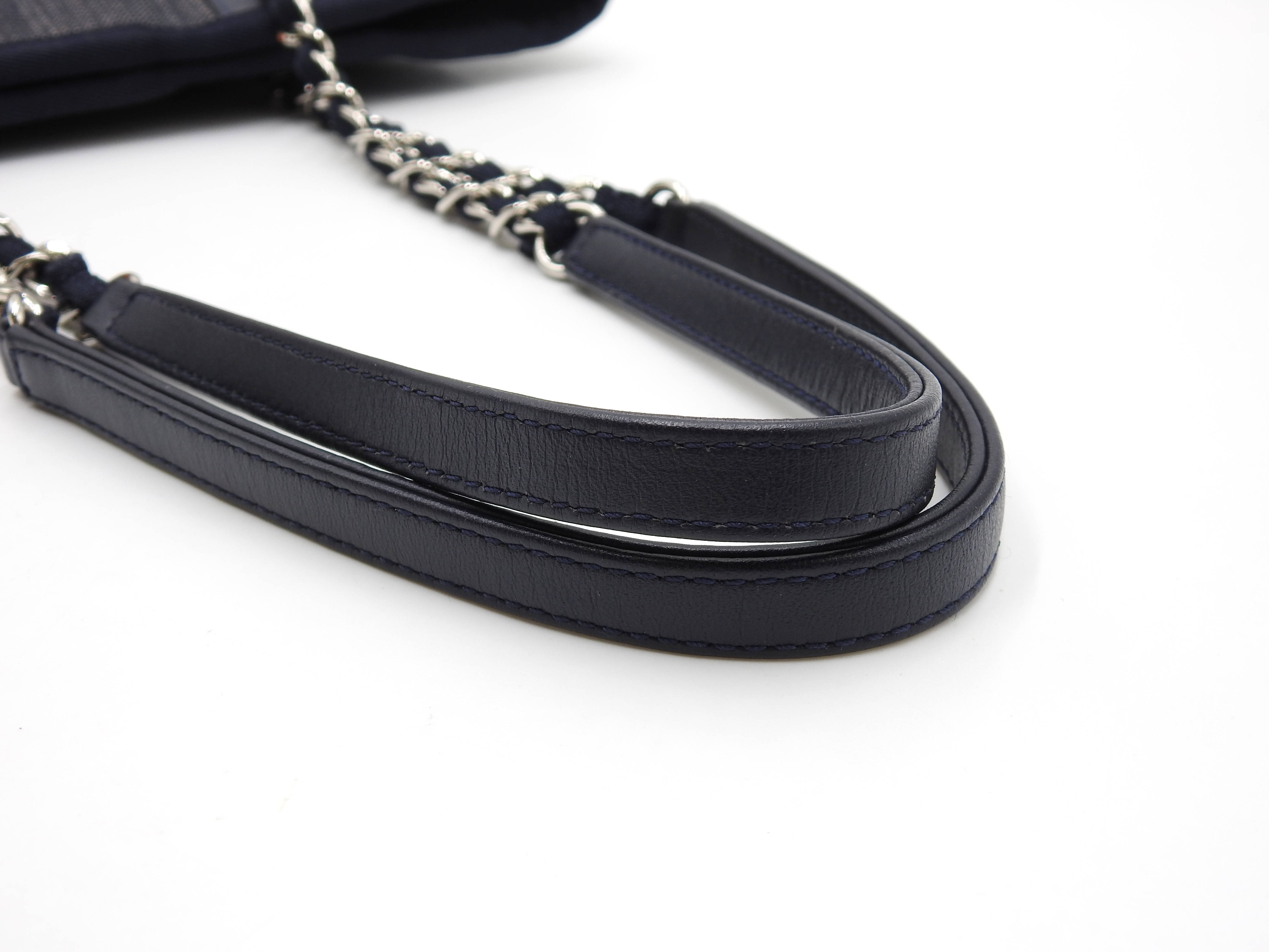Auth Chanel Deauville PM Chain Tote Bag Shoulder Bag Denim Canvas Navy Silver Hardware A66939 X-8628