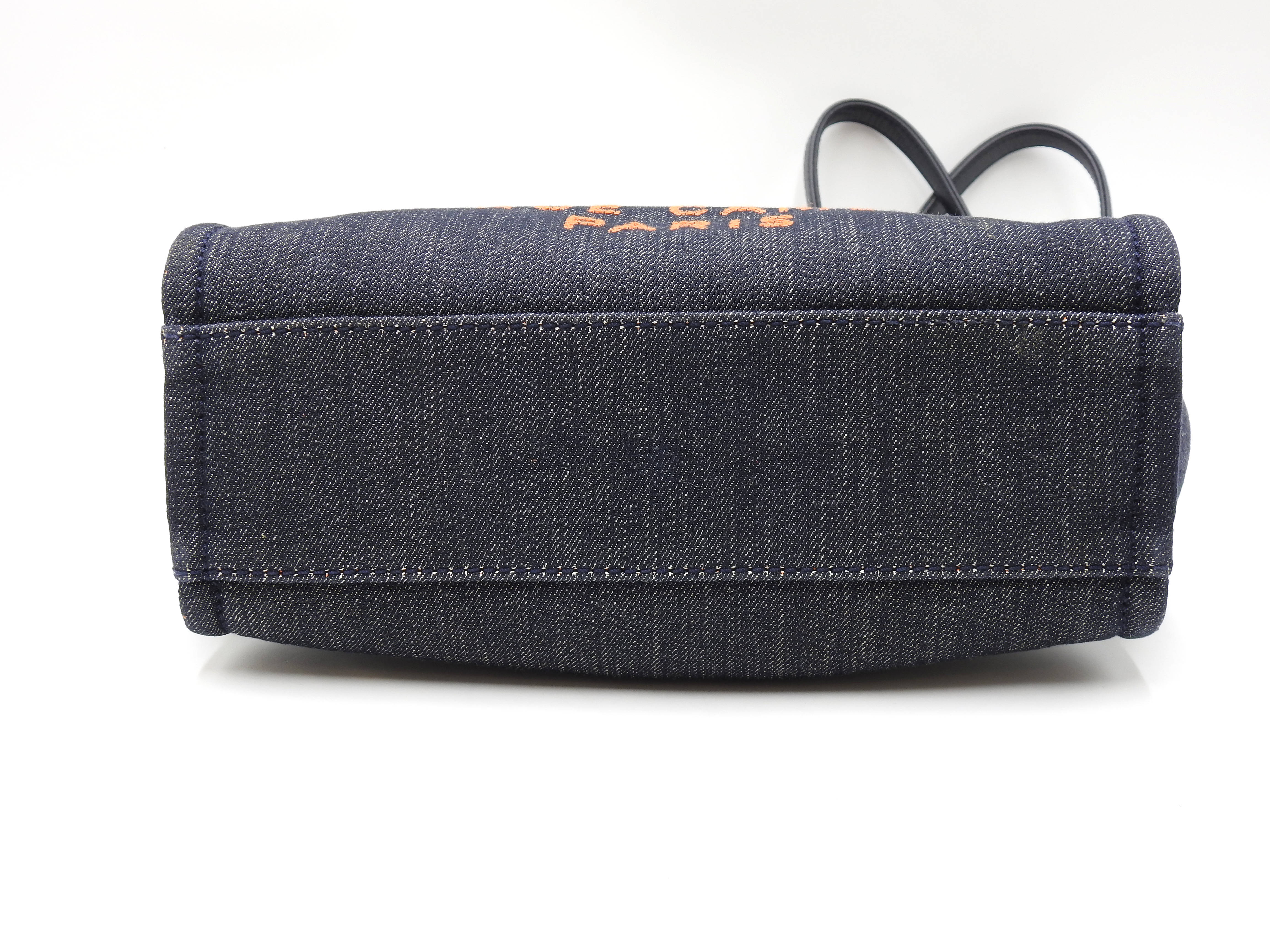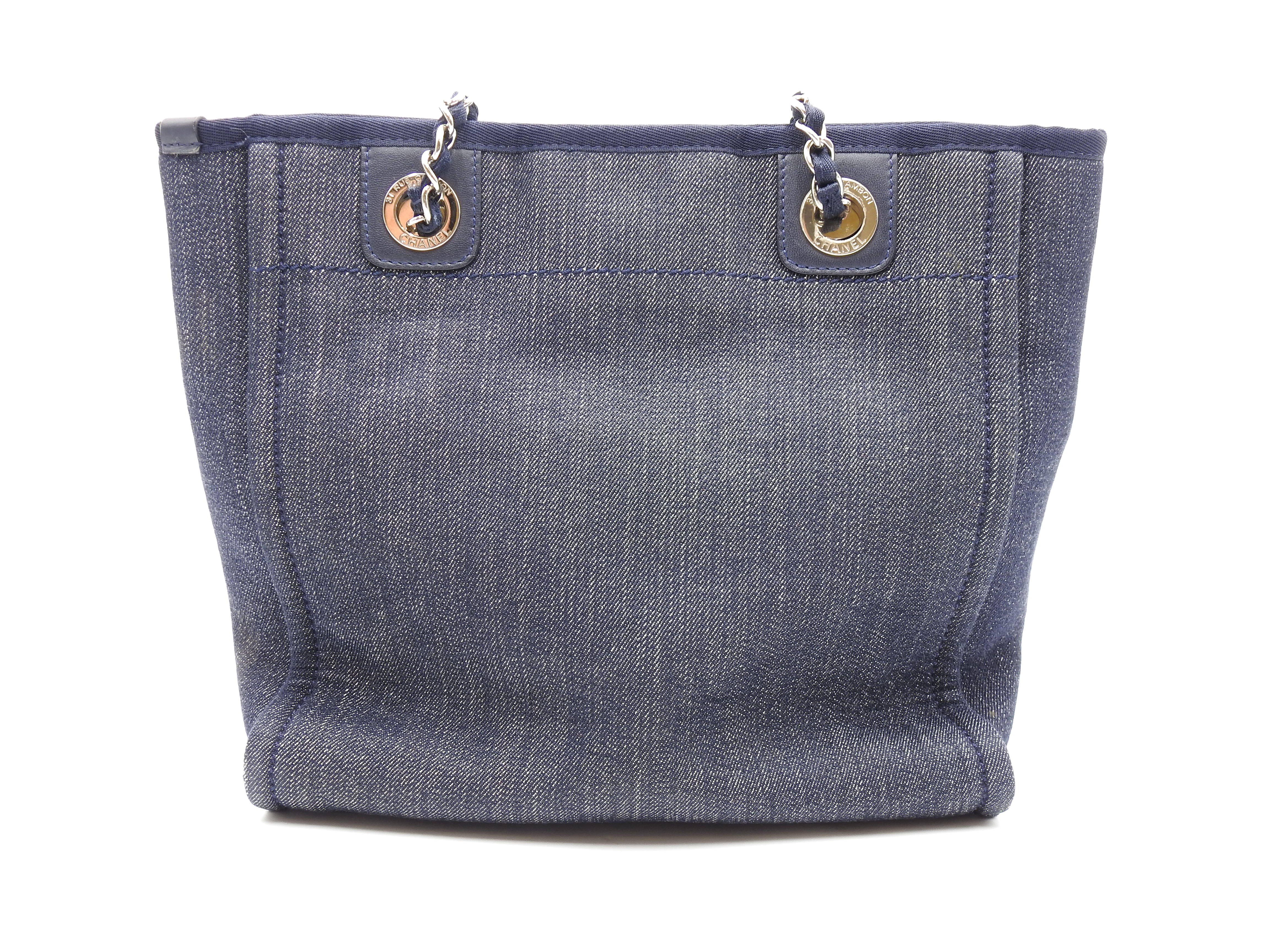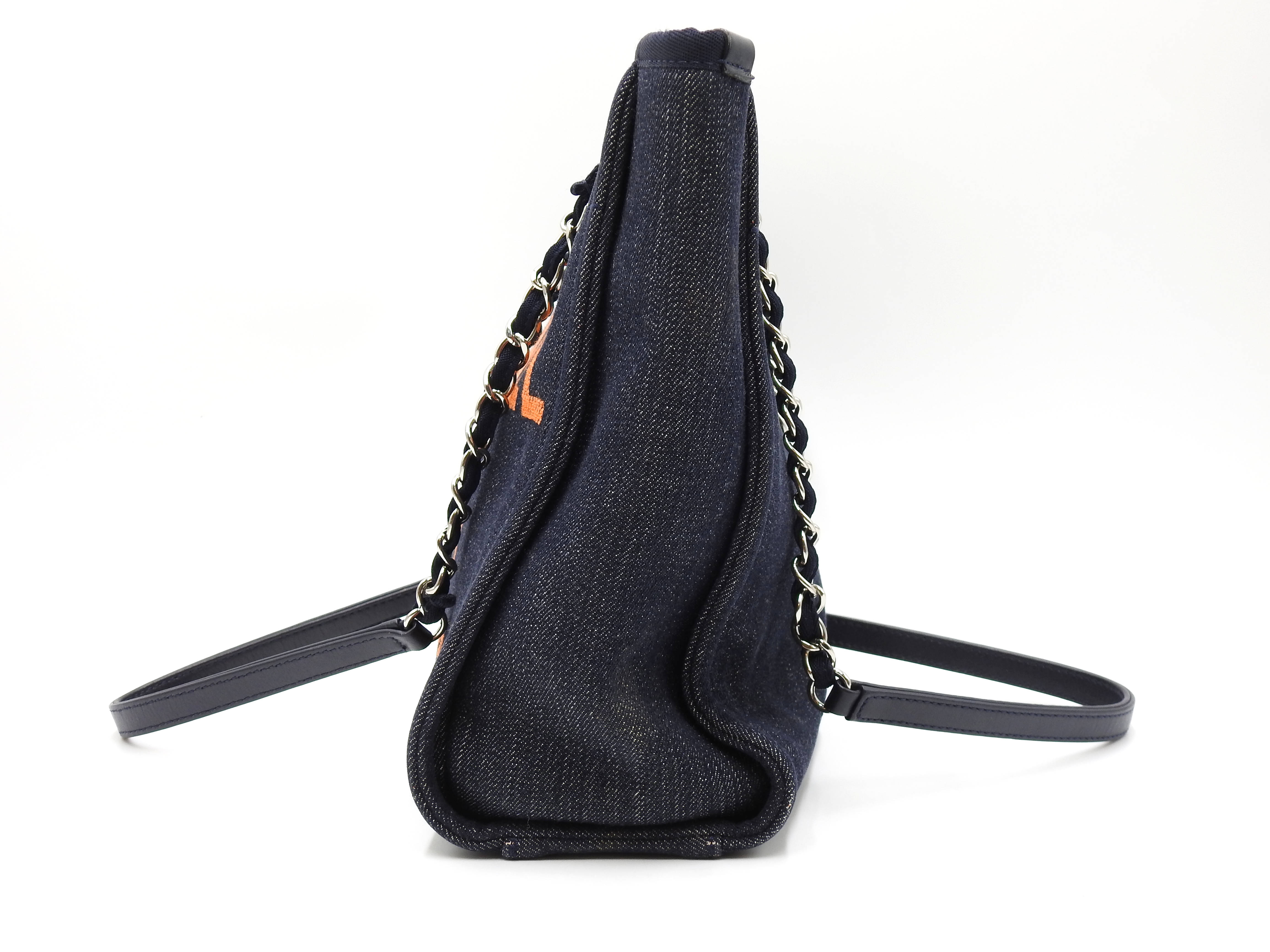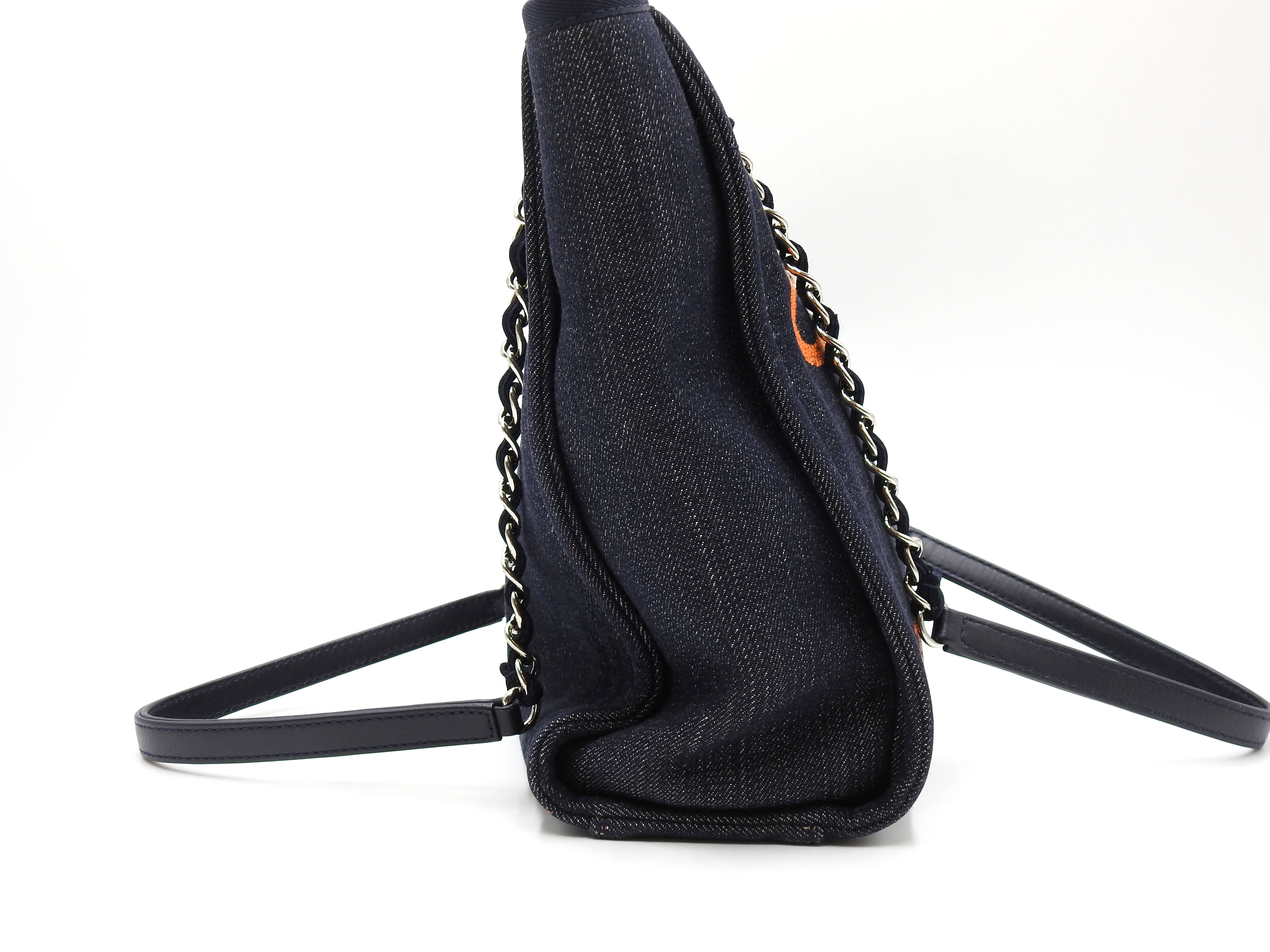 Chanel Deauville PM Chain Tote Bag Shoulder Bag Denim Canvas Navy A66939 X-8628