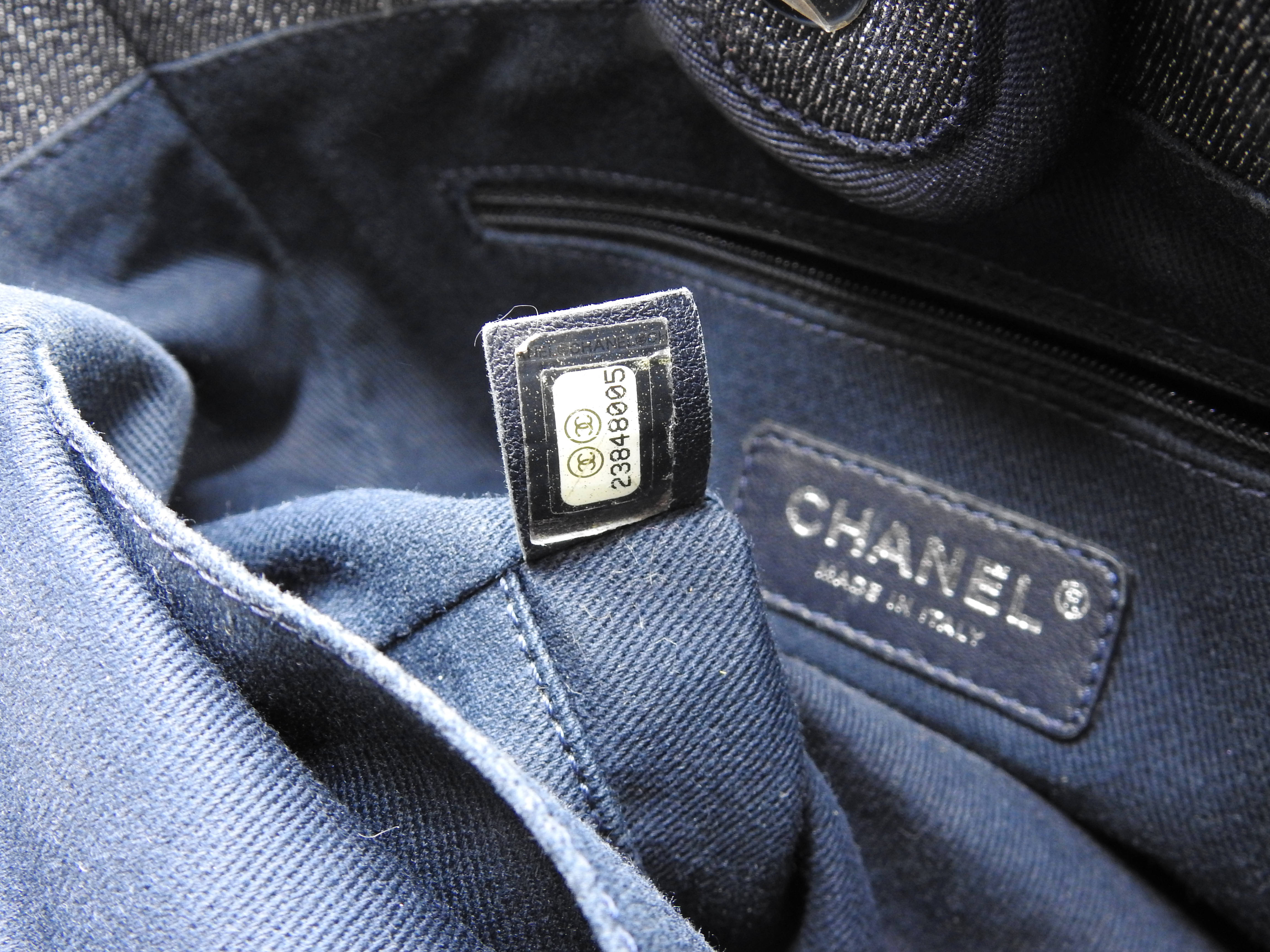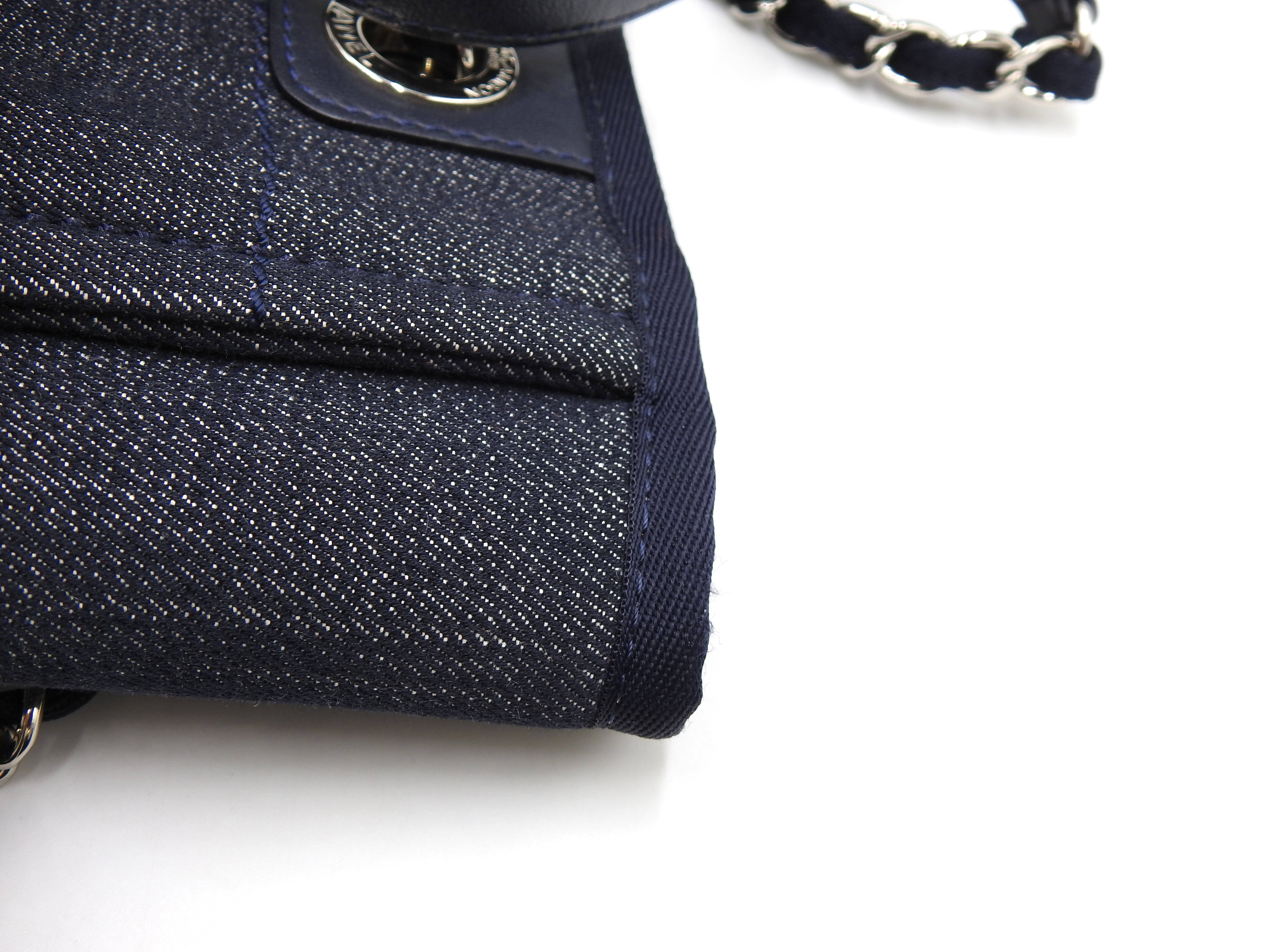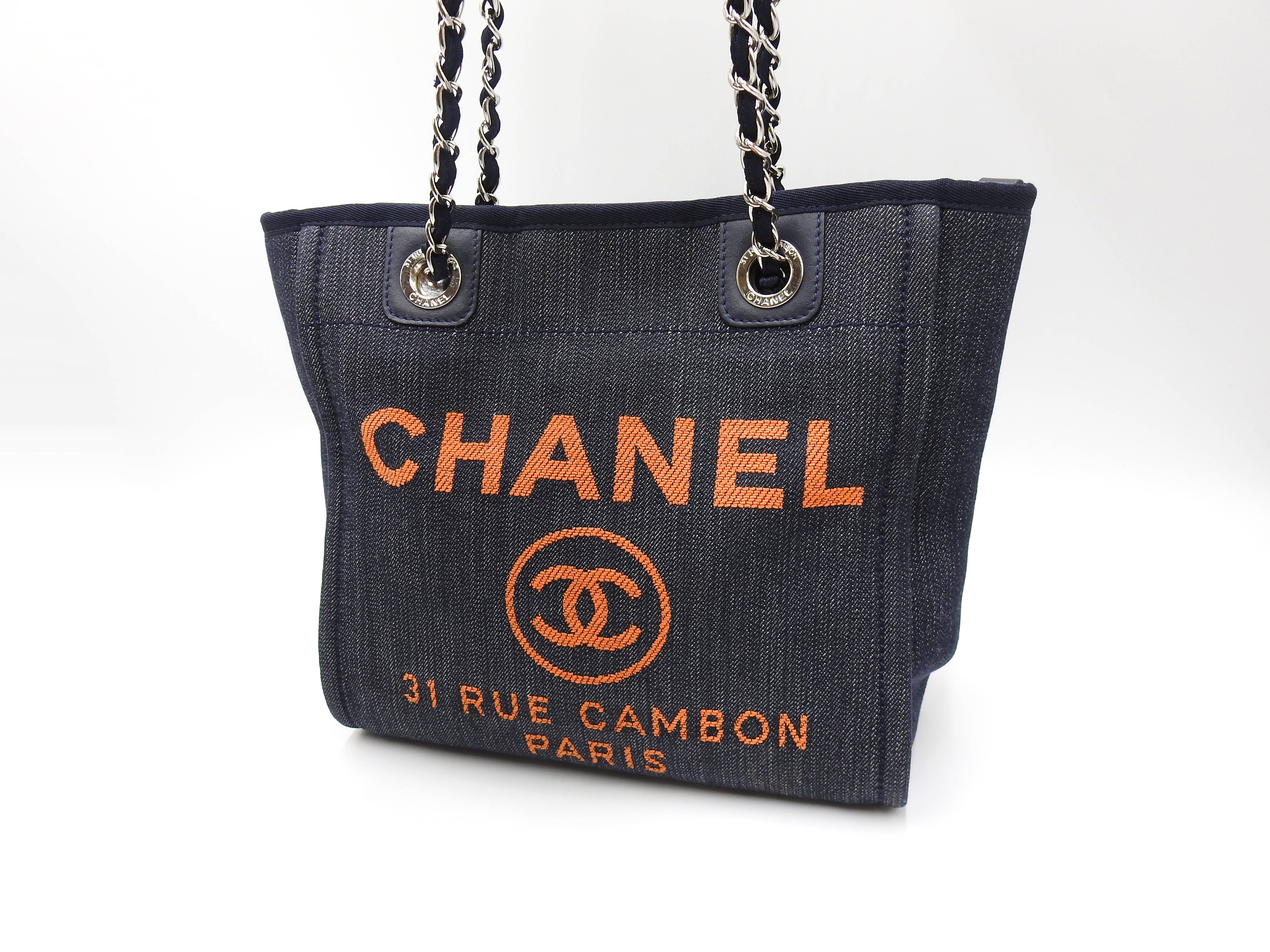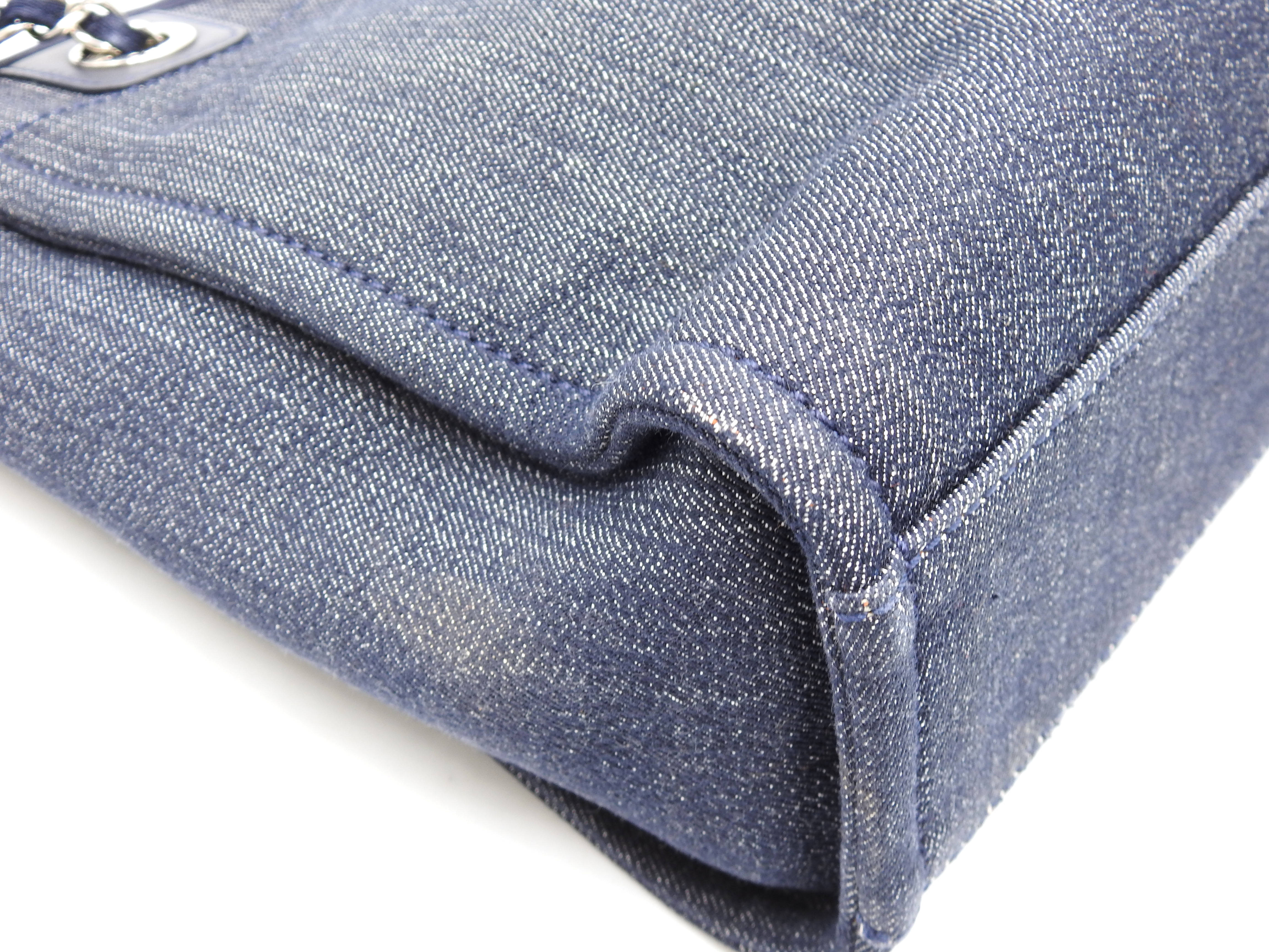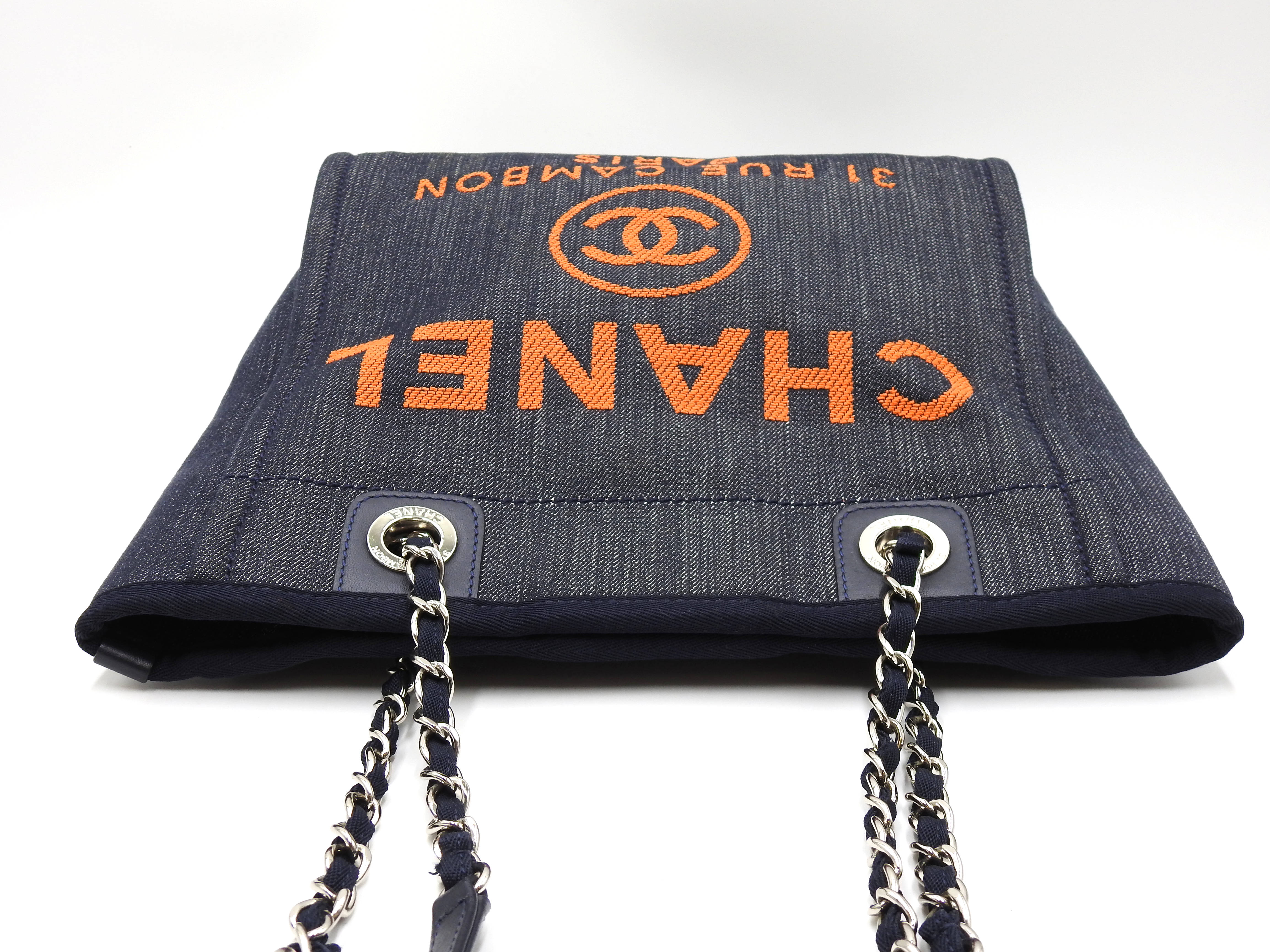 Chanel Deauville PM Chain Tote Bag Shoulder Bag Denim Canvas Navy A66939 X-8628