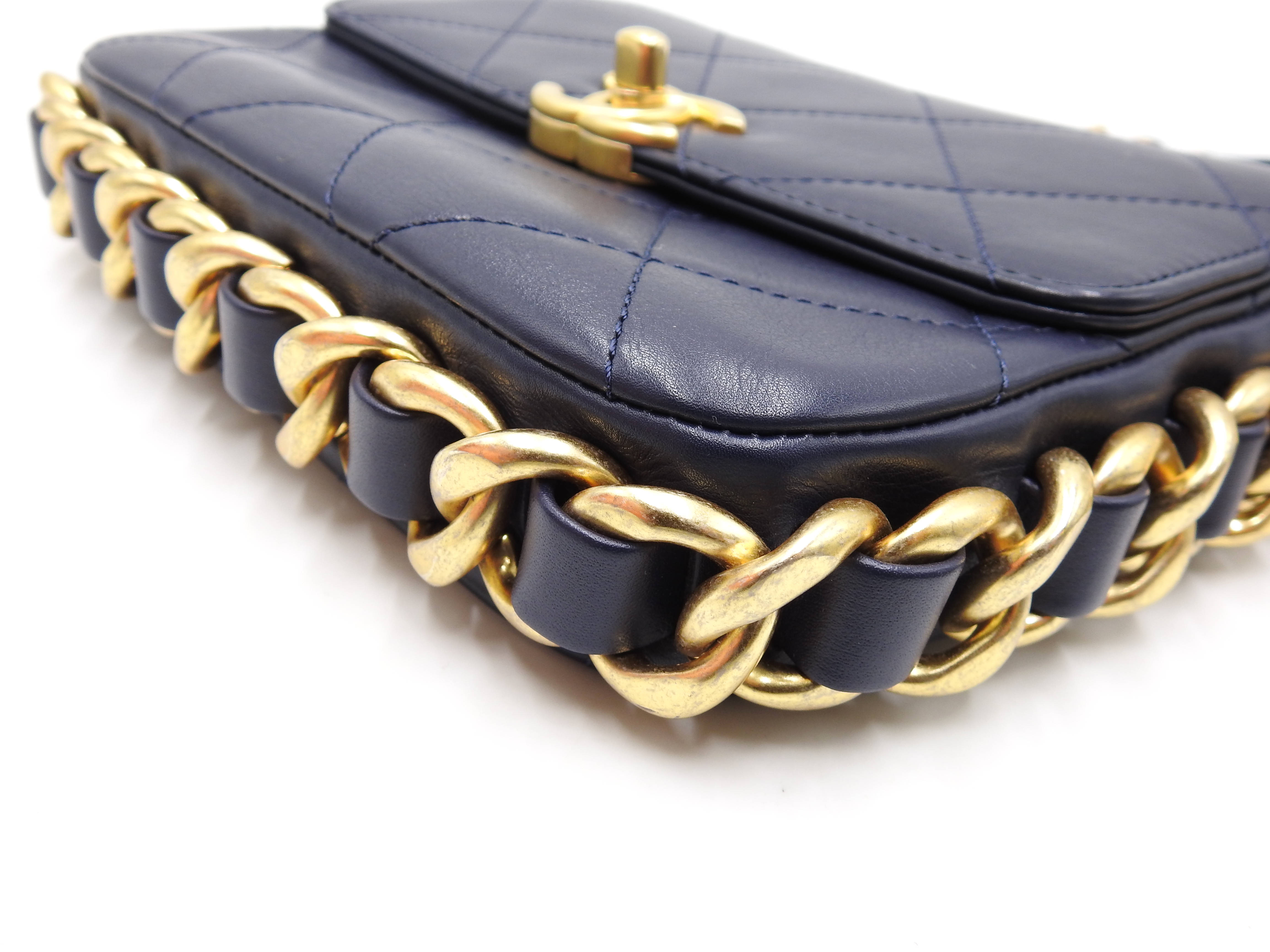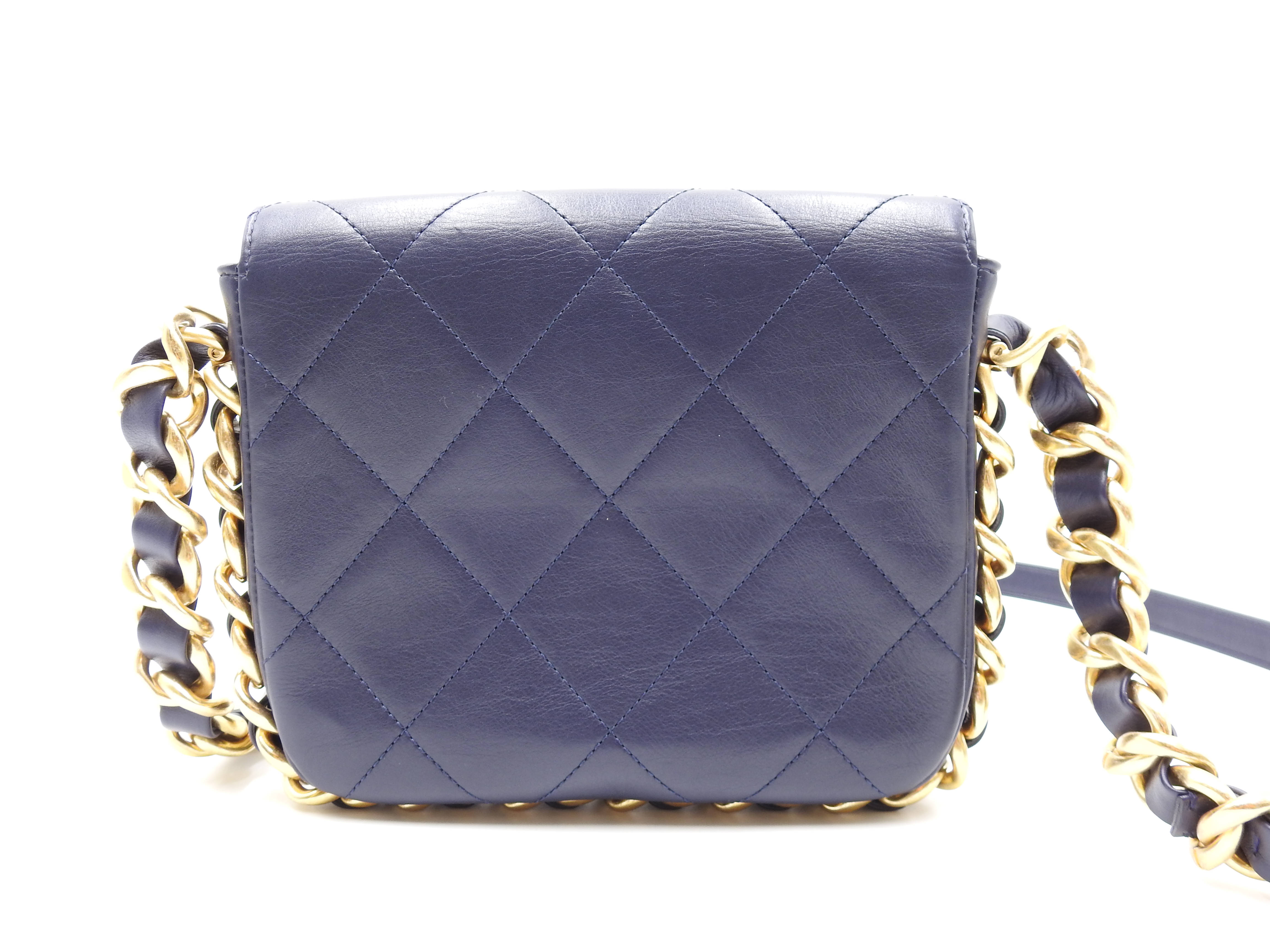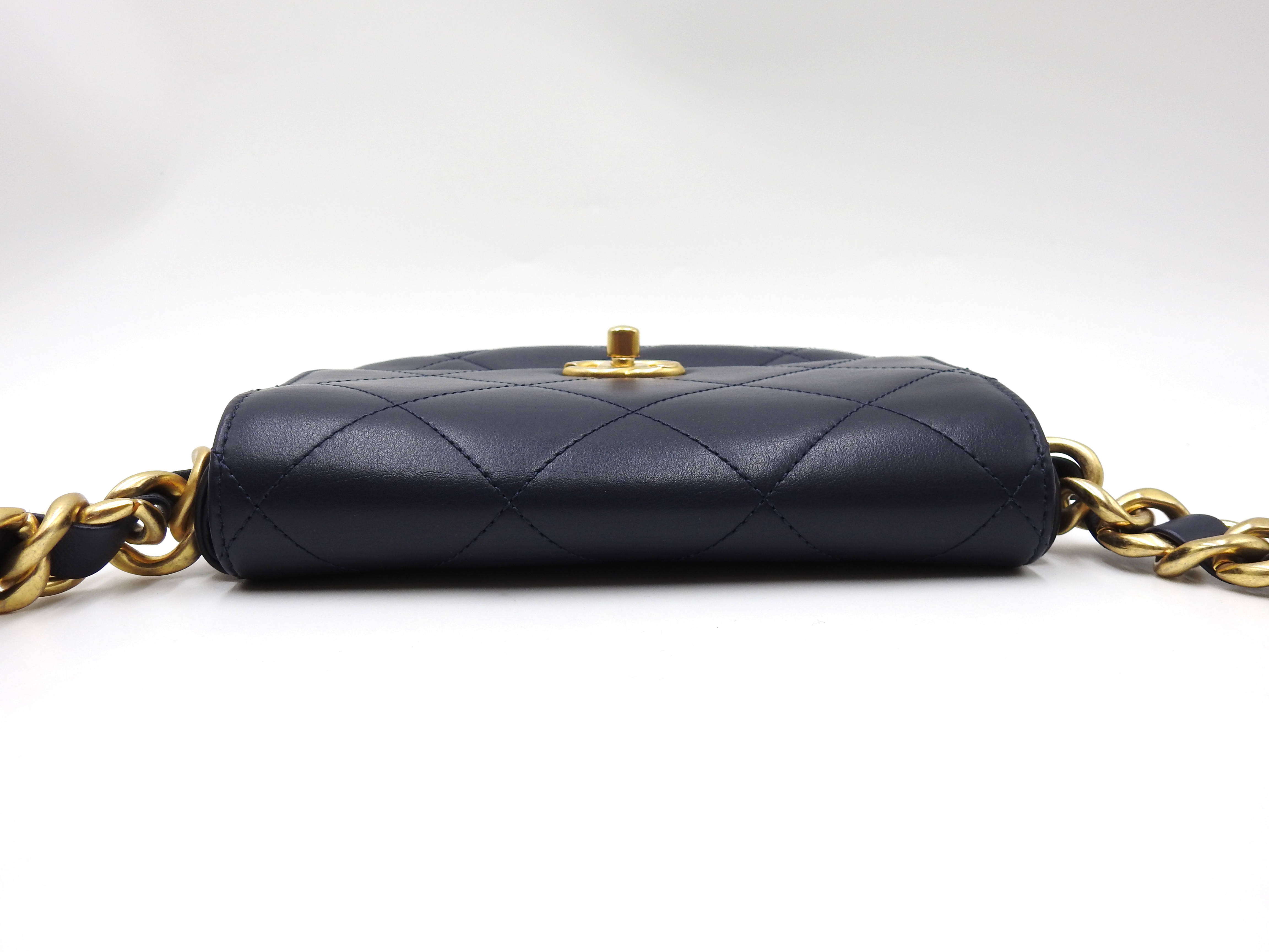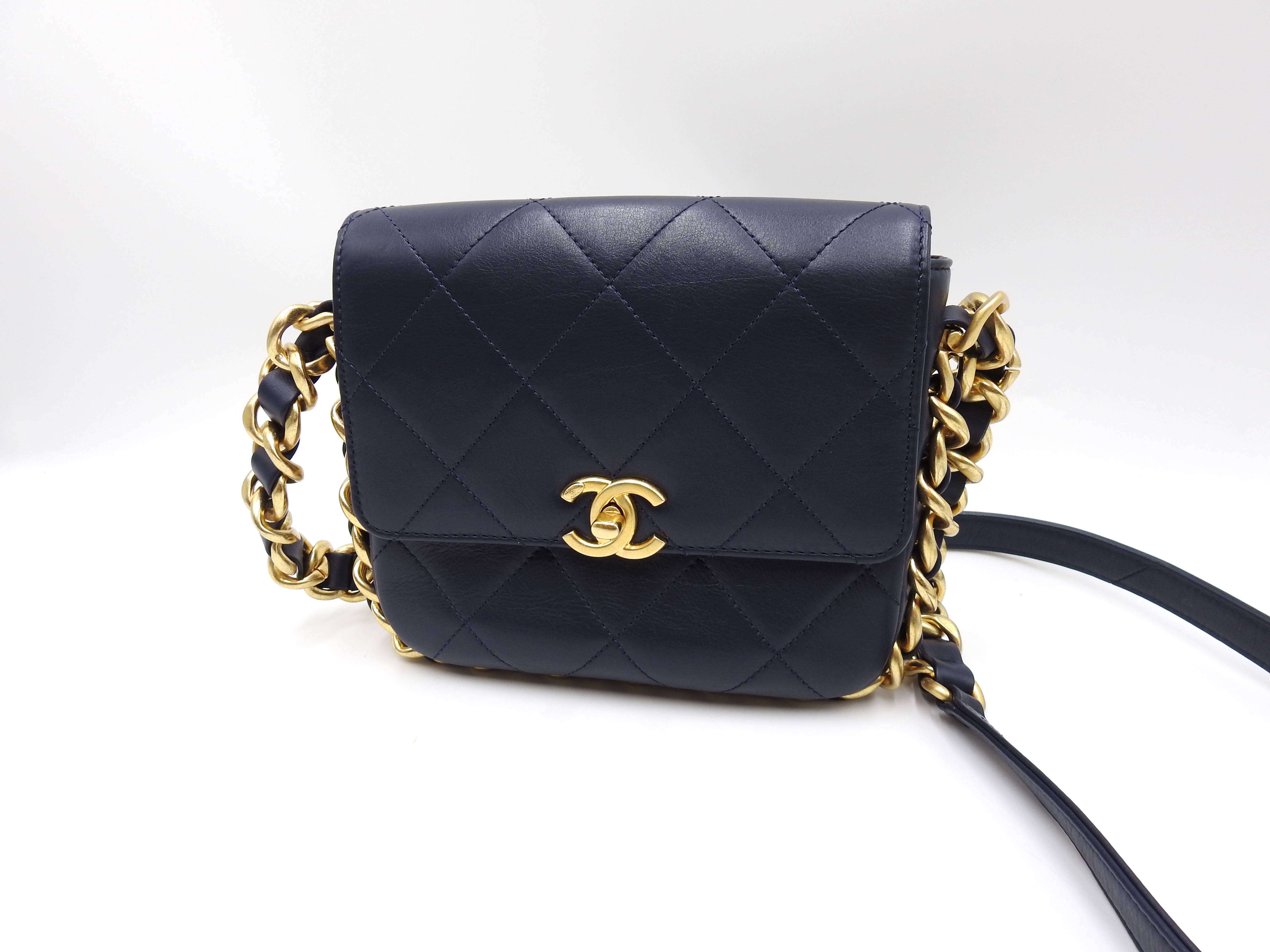 Auth Chanel Matelasse Small Framing Flap Chain Shoulder Bag Calfskin Leather Navy Gold Hardware AS2831 X-8519