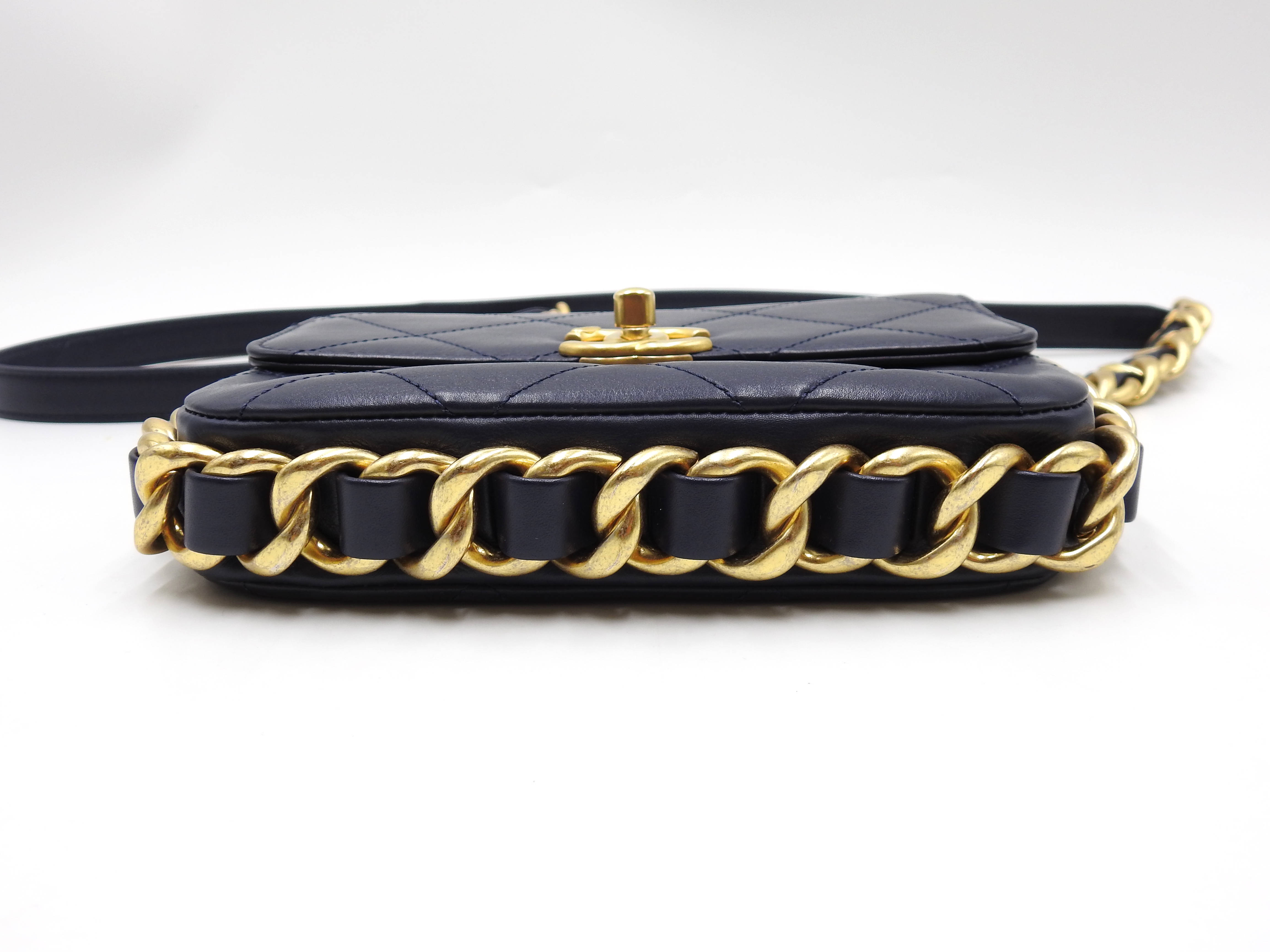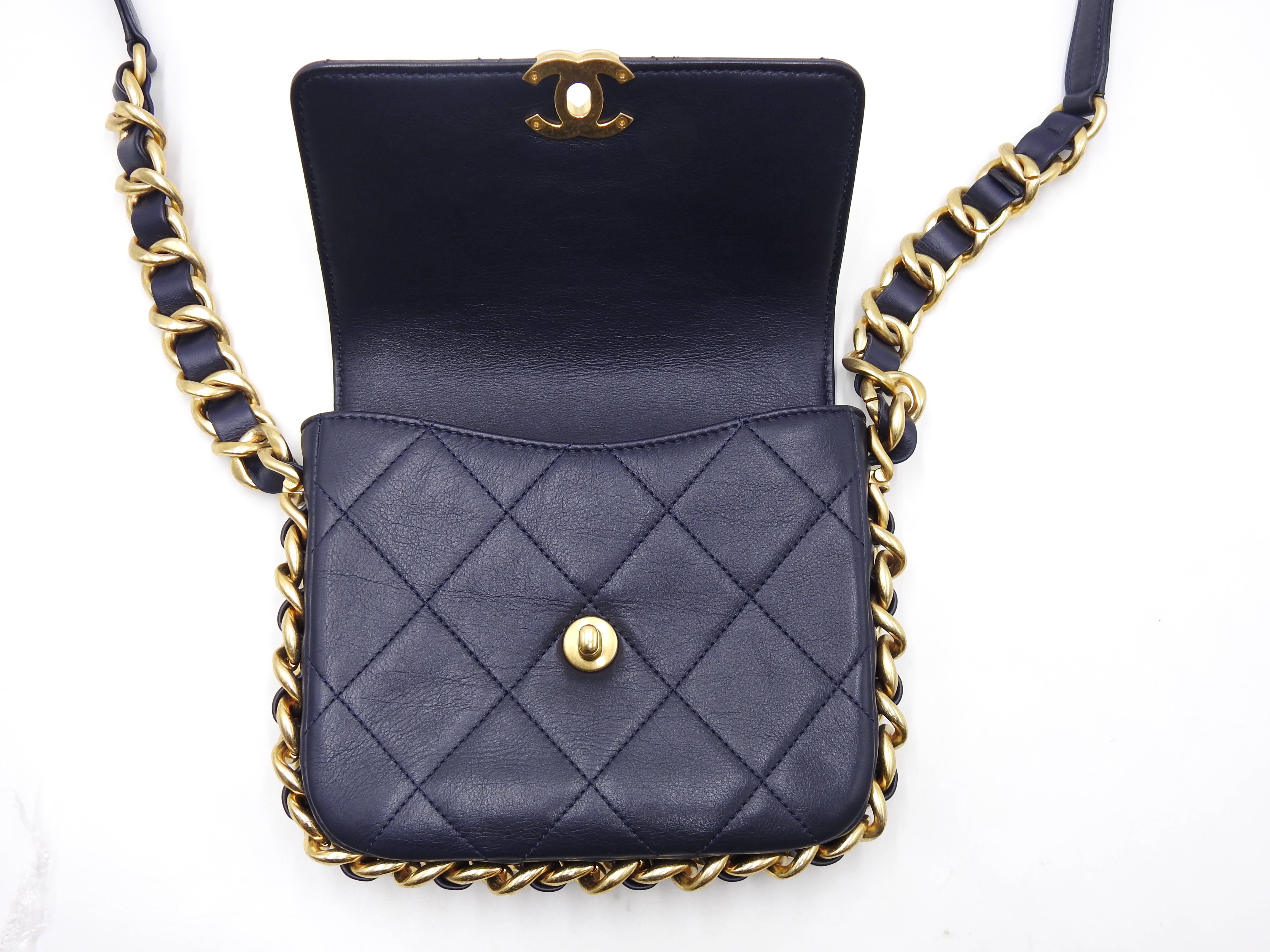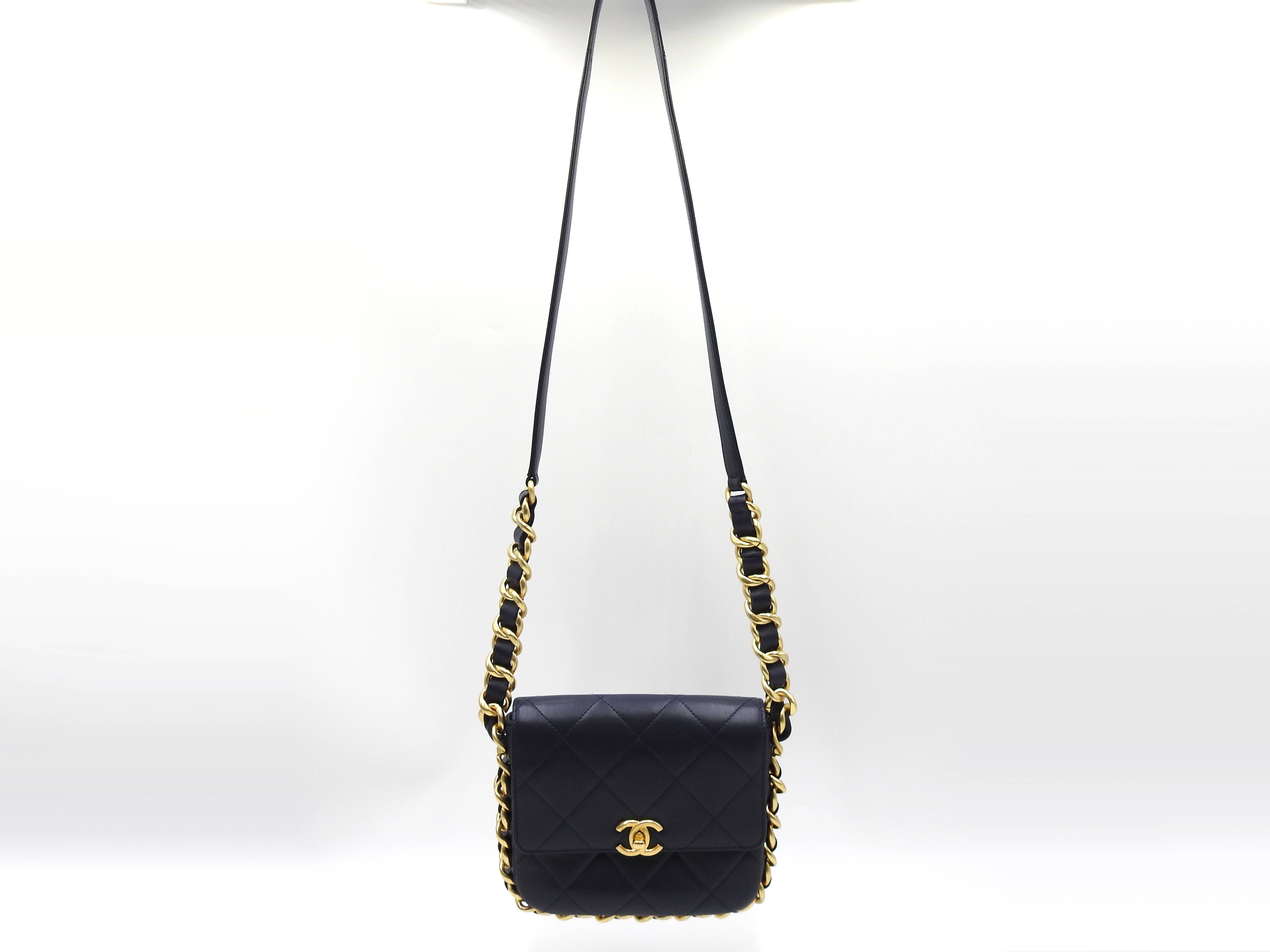 Auth Chanel Matelasse Small Framing Flap Chain Shoulder Bag Calfskin Leather Navy Gold Hardware AS2831 X-8519