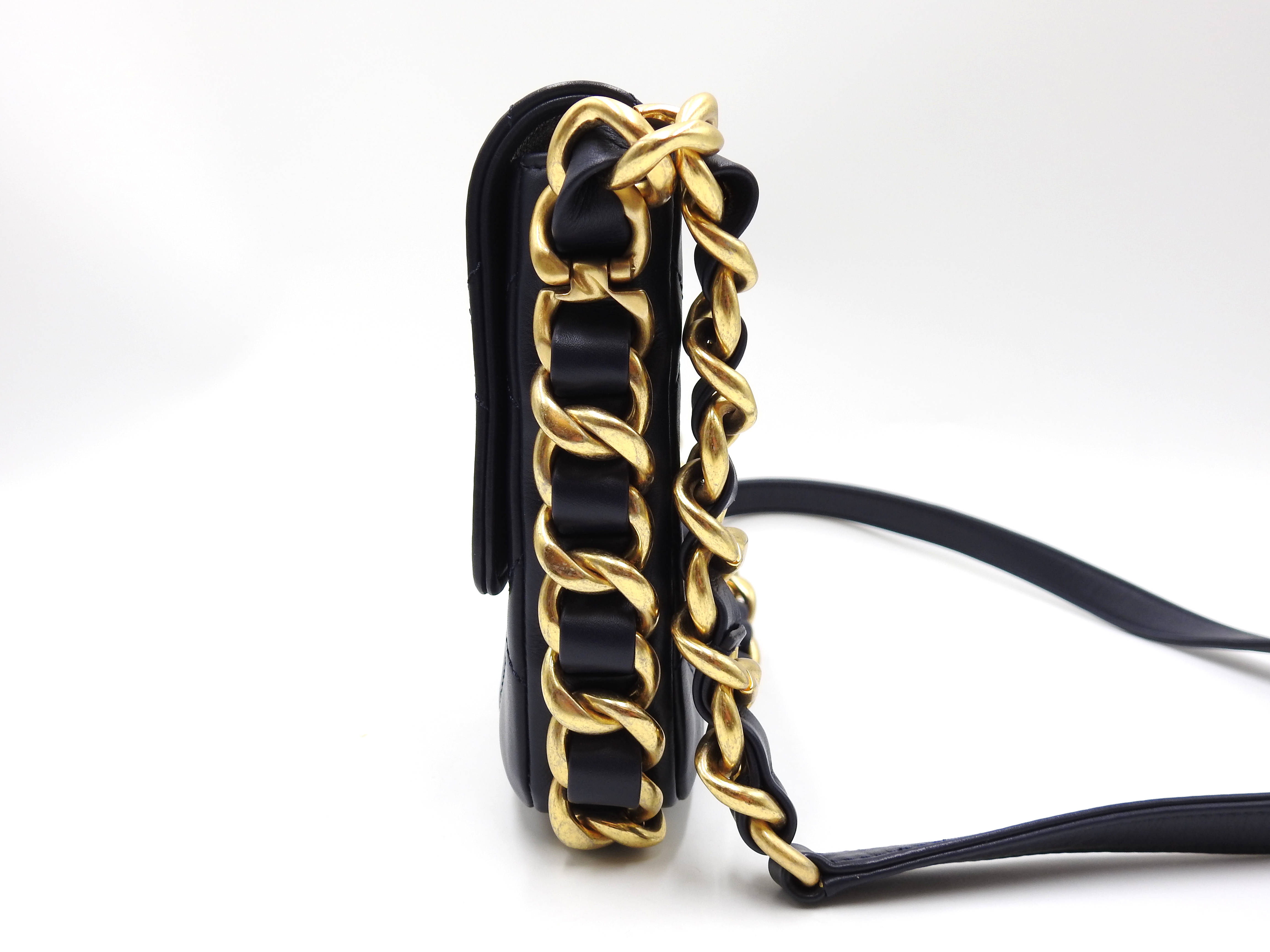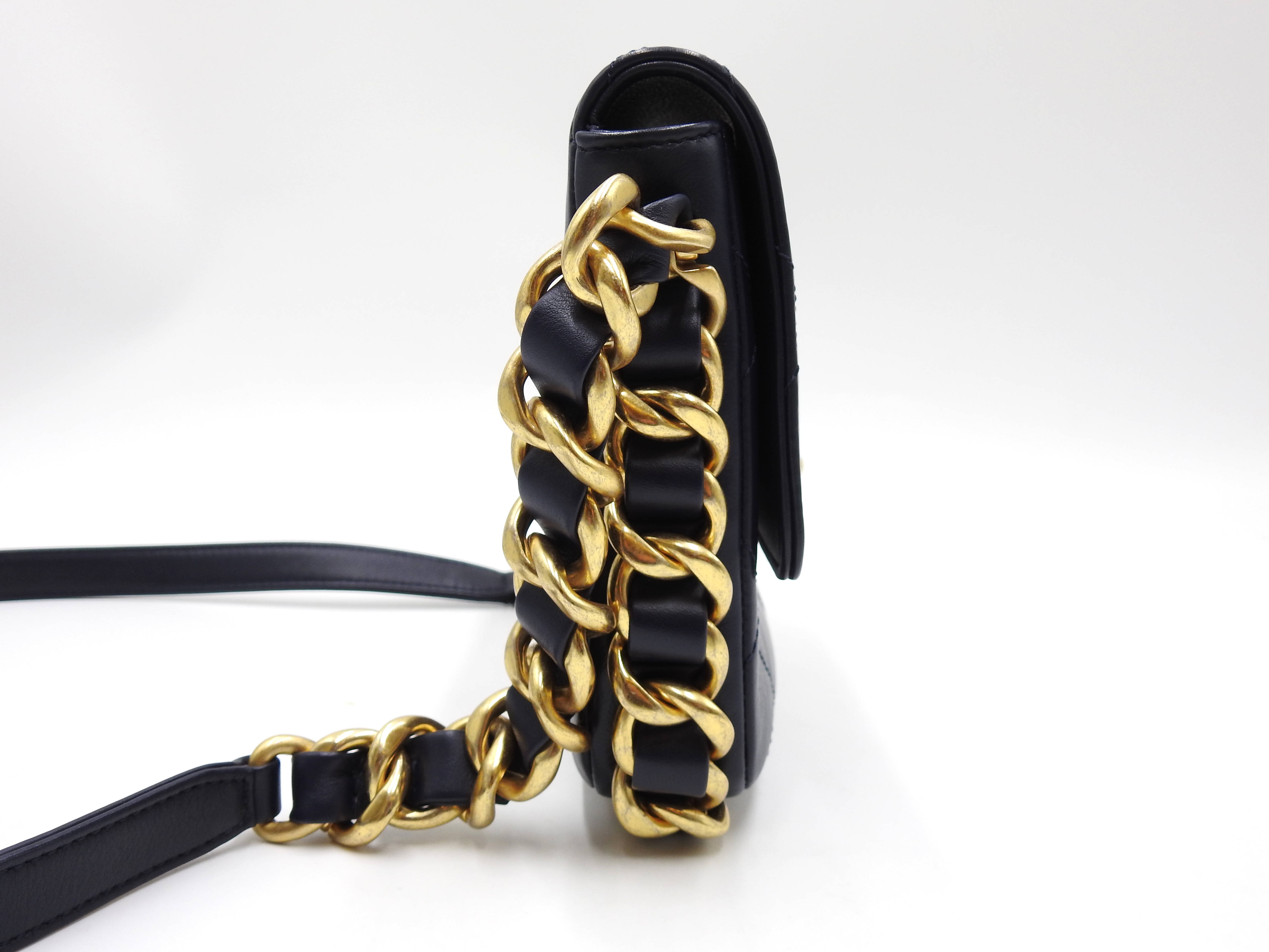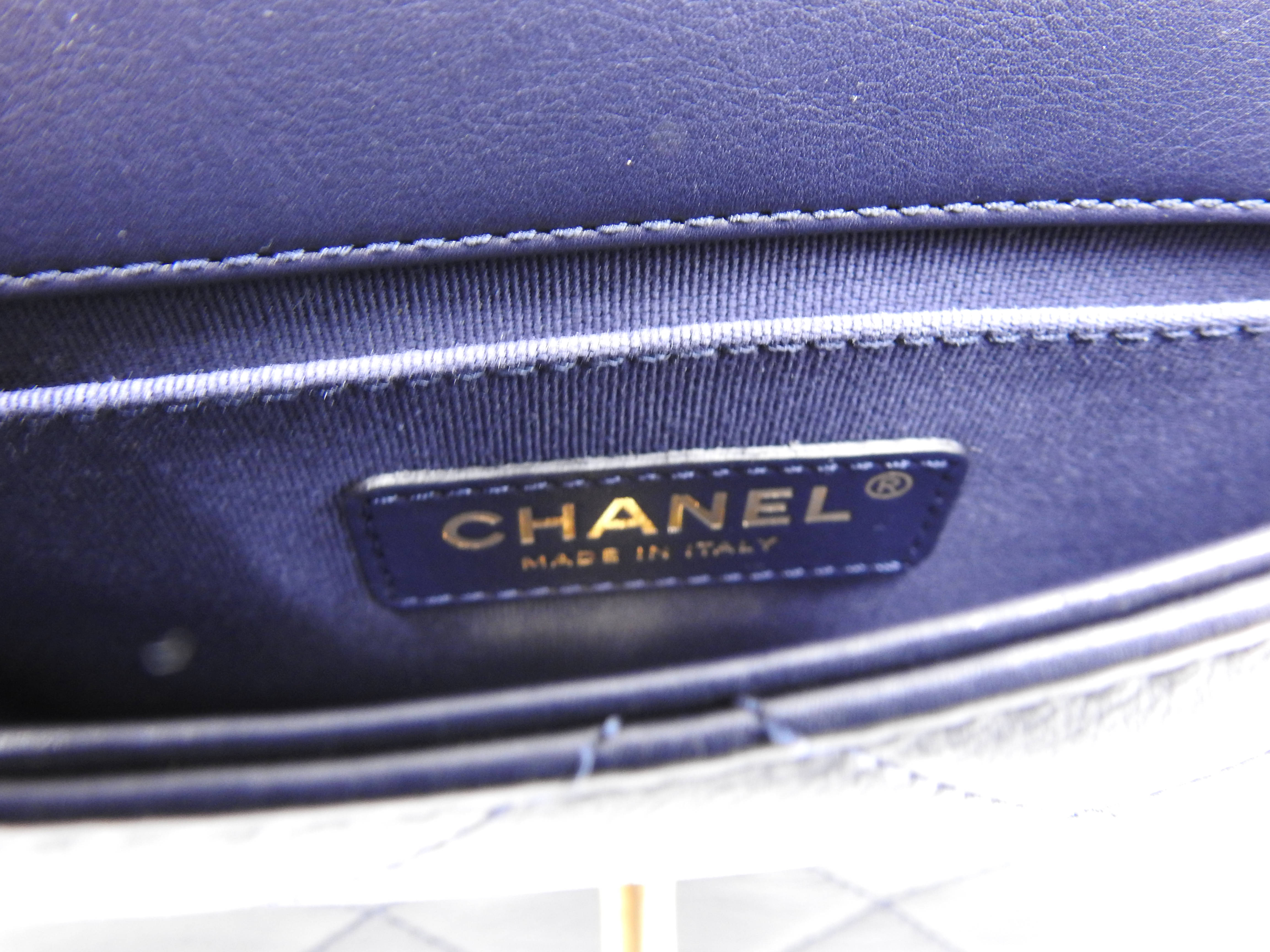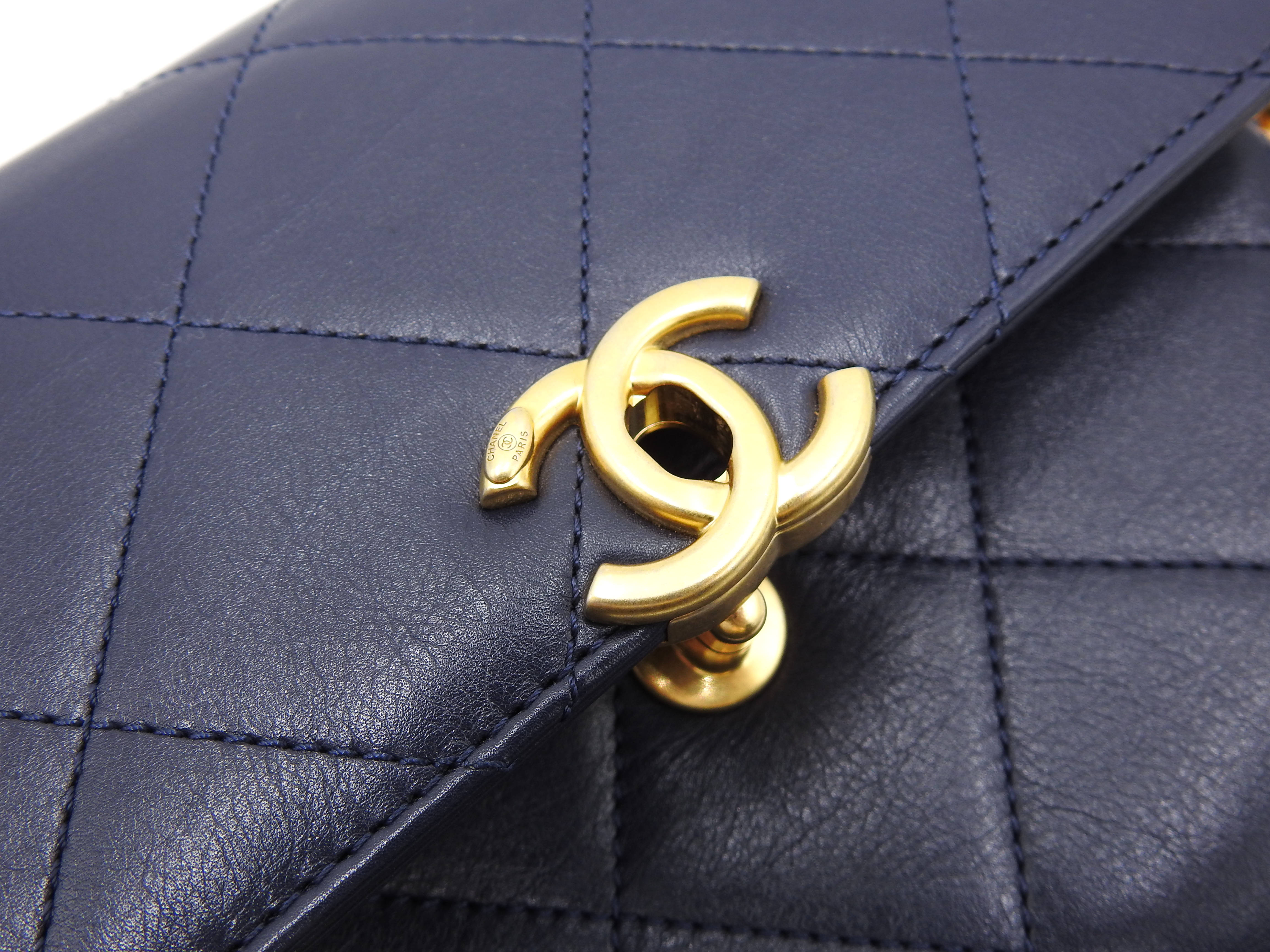 Auth Chanel Matelasse Small Framing Flap Chain Shoulder Bag Calfskin Leather Navy Gold Hardware AS2831 X-8519