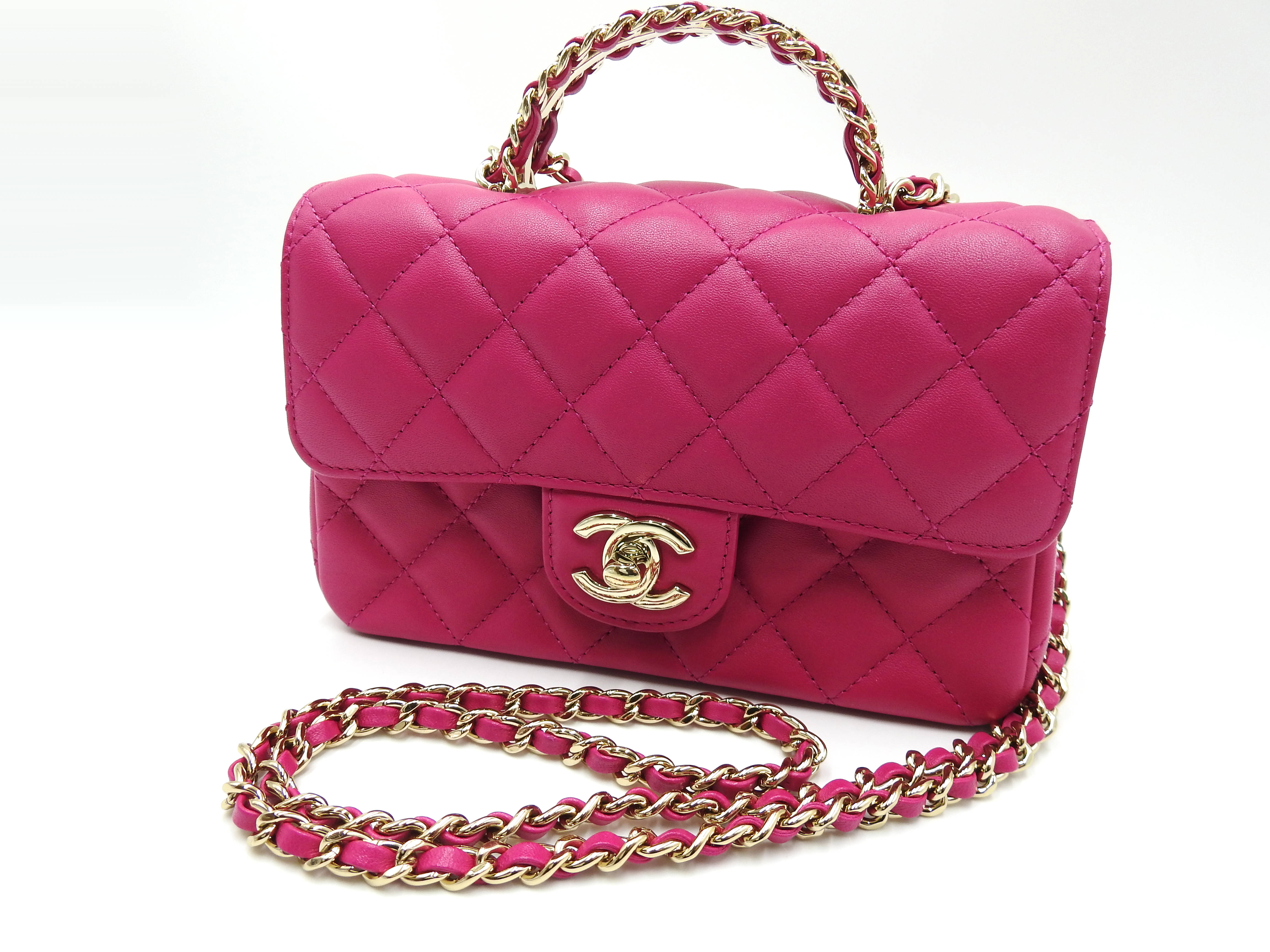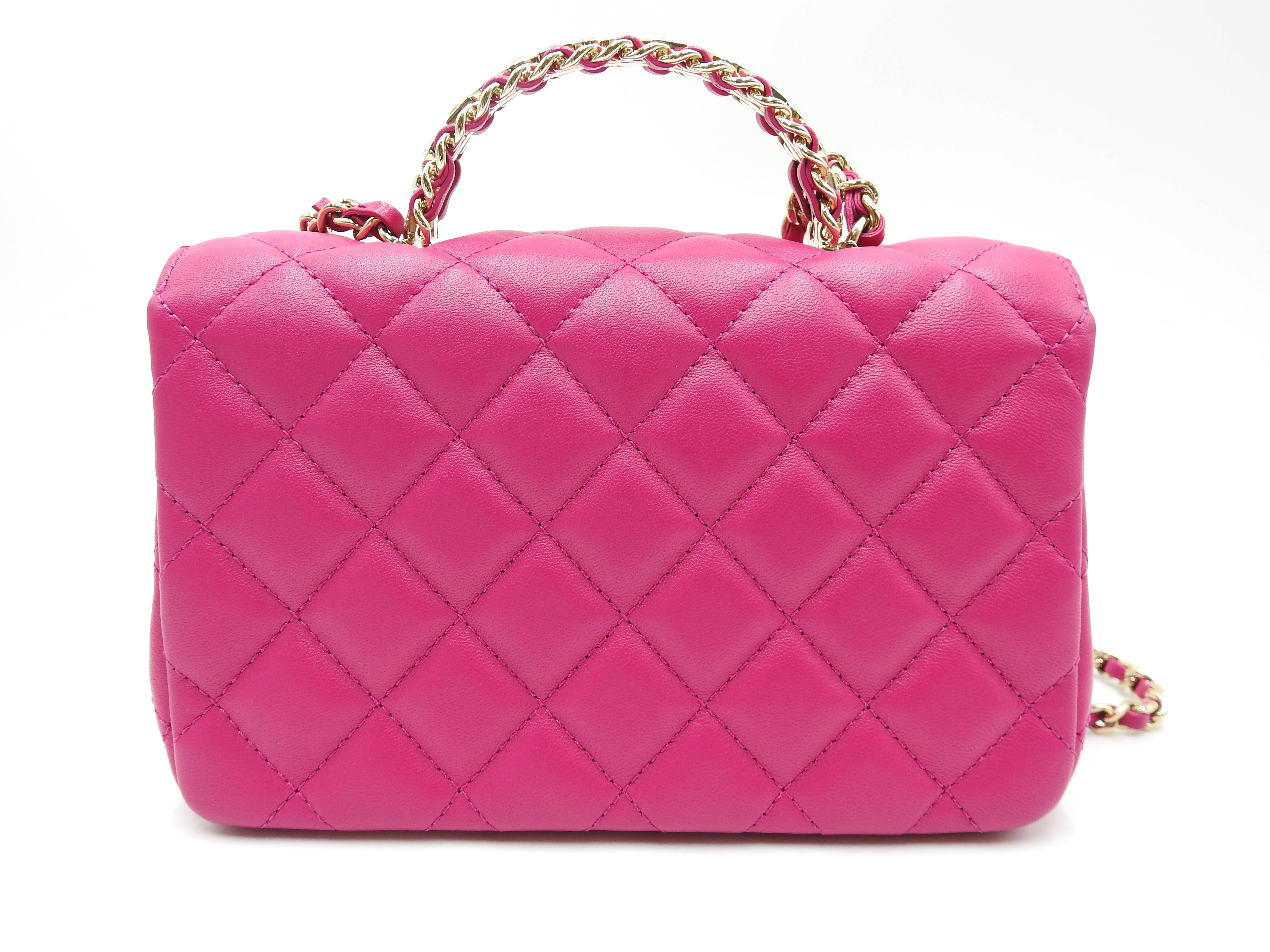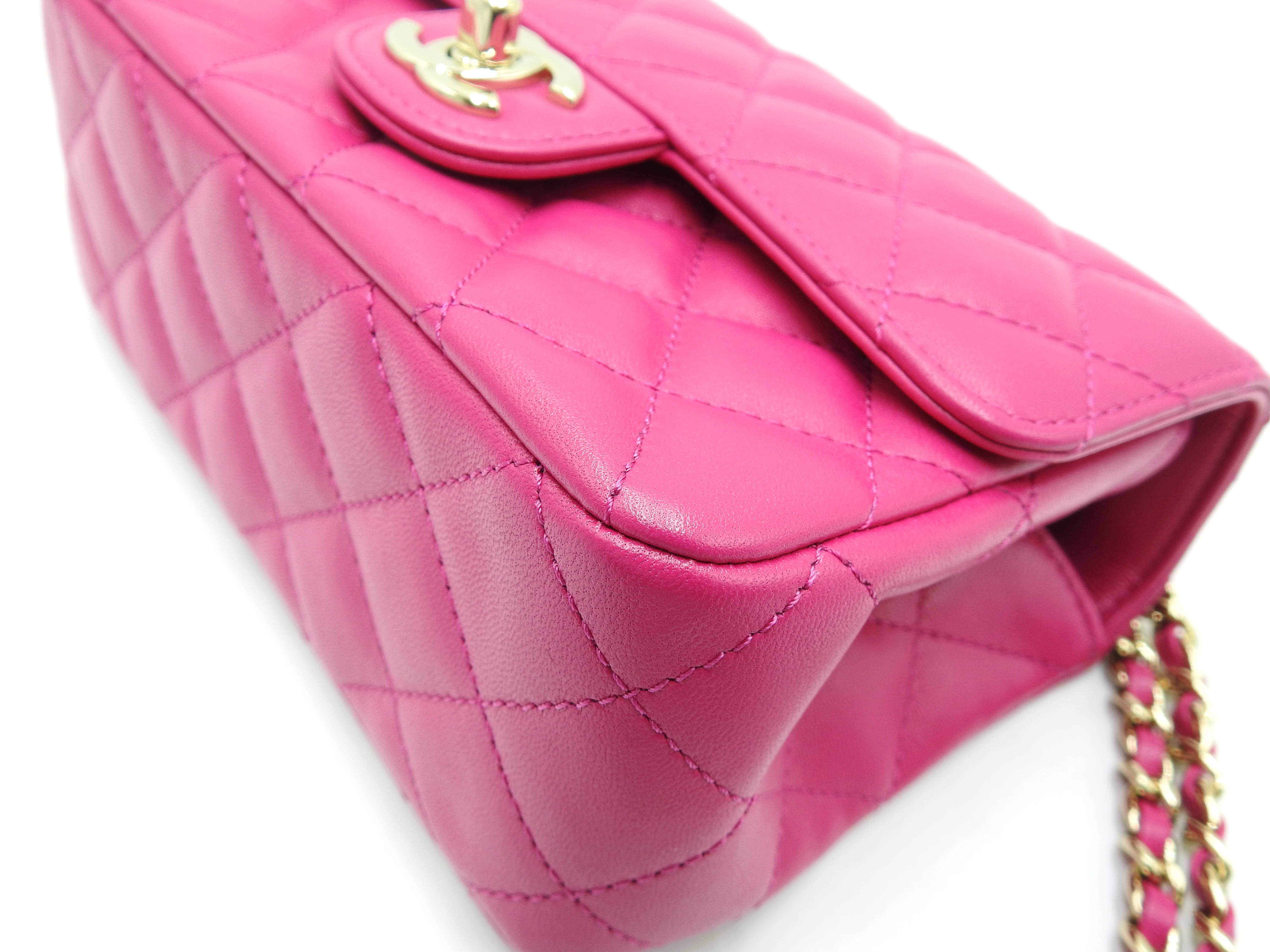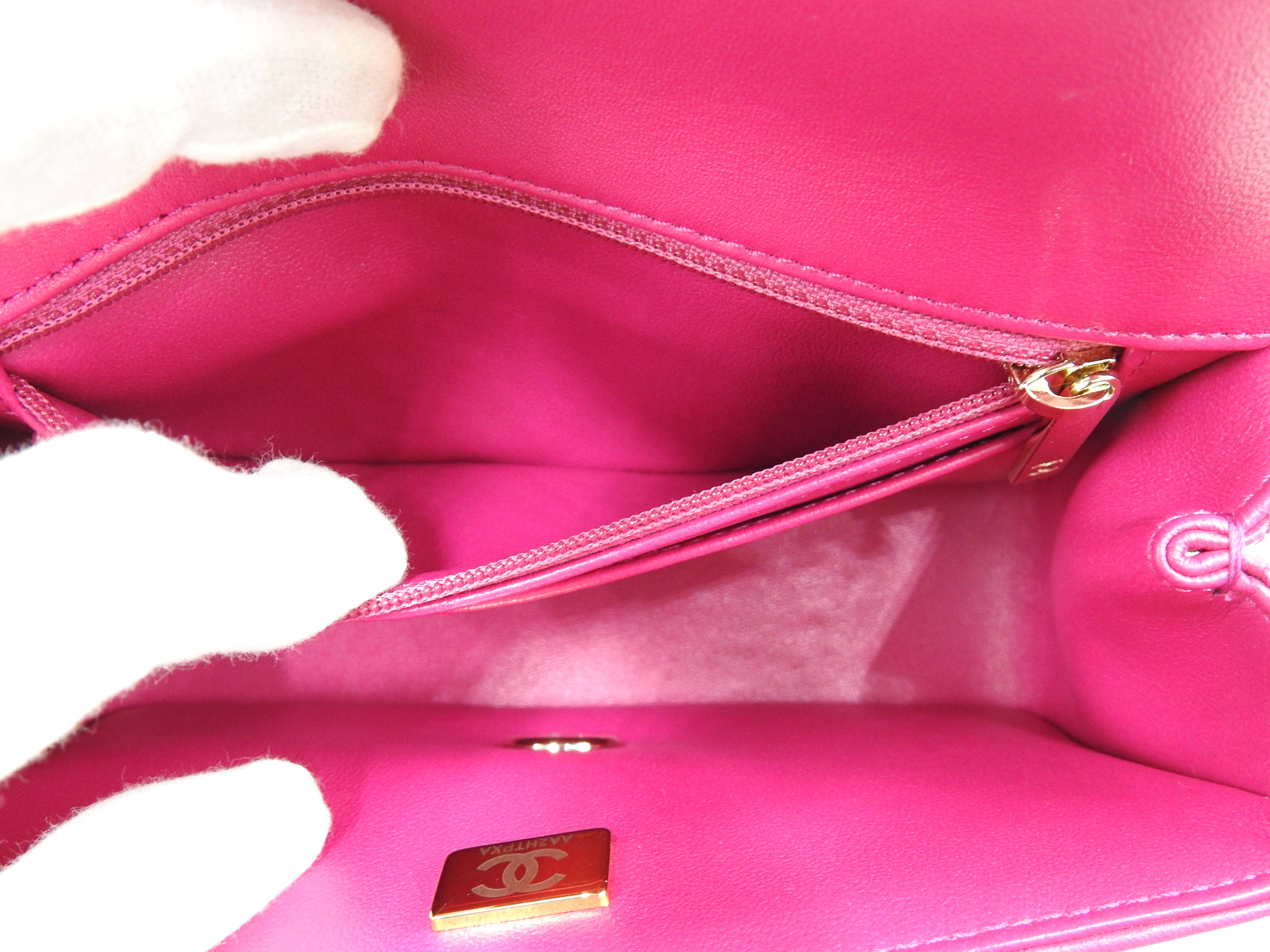Auth Chanel Top Handle Mini Flap Bag Chain Shoulder Bag Lambskin Leather Pink Gold Hardware AS4140 X-8341