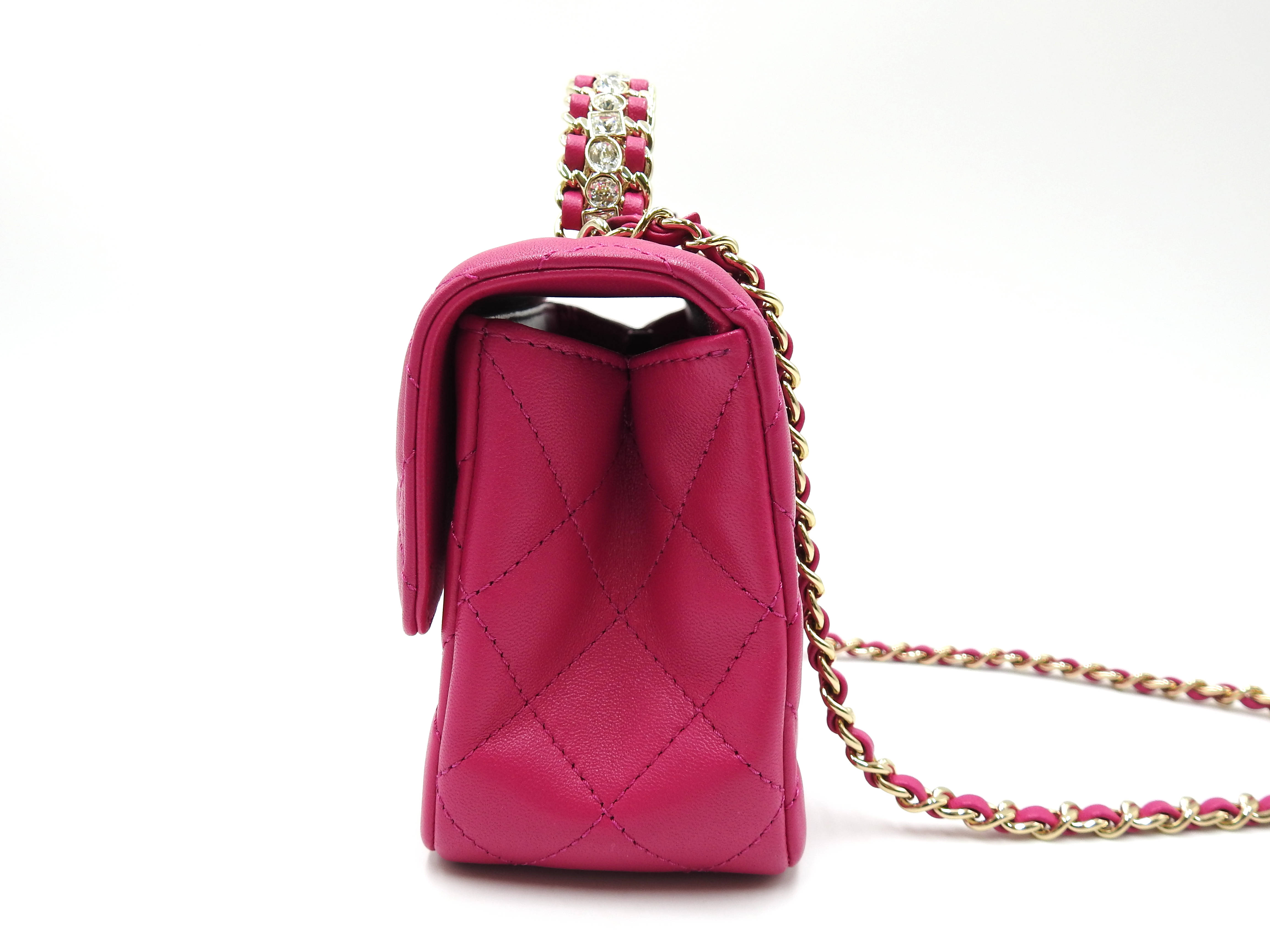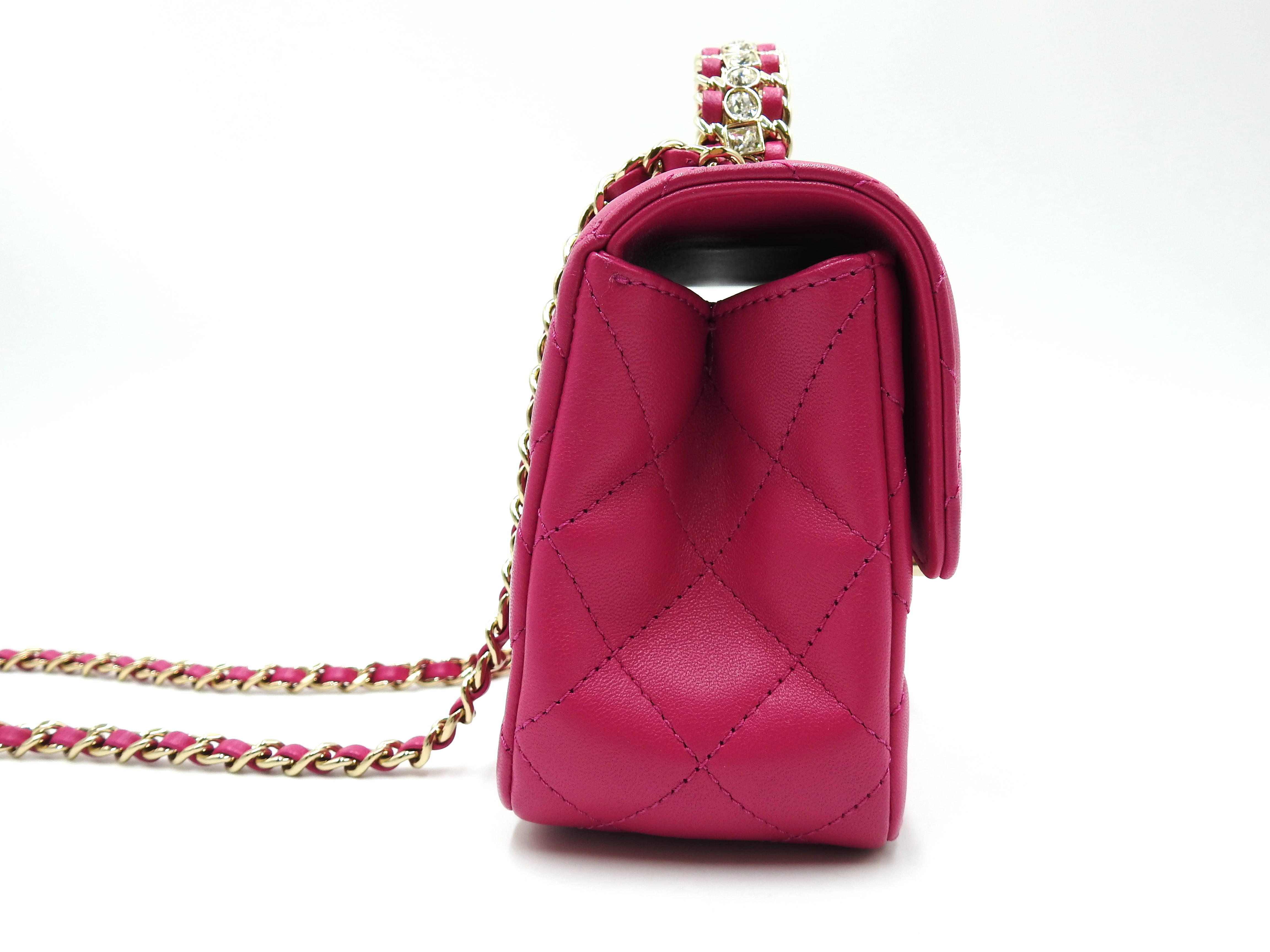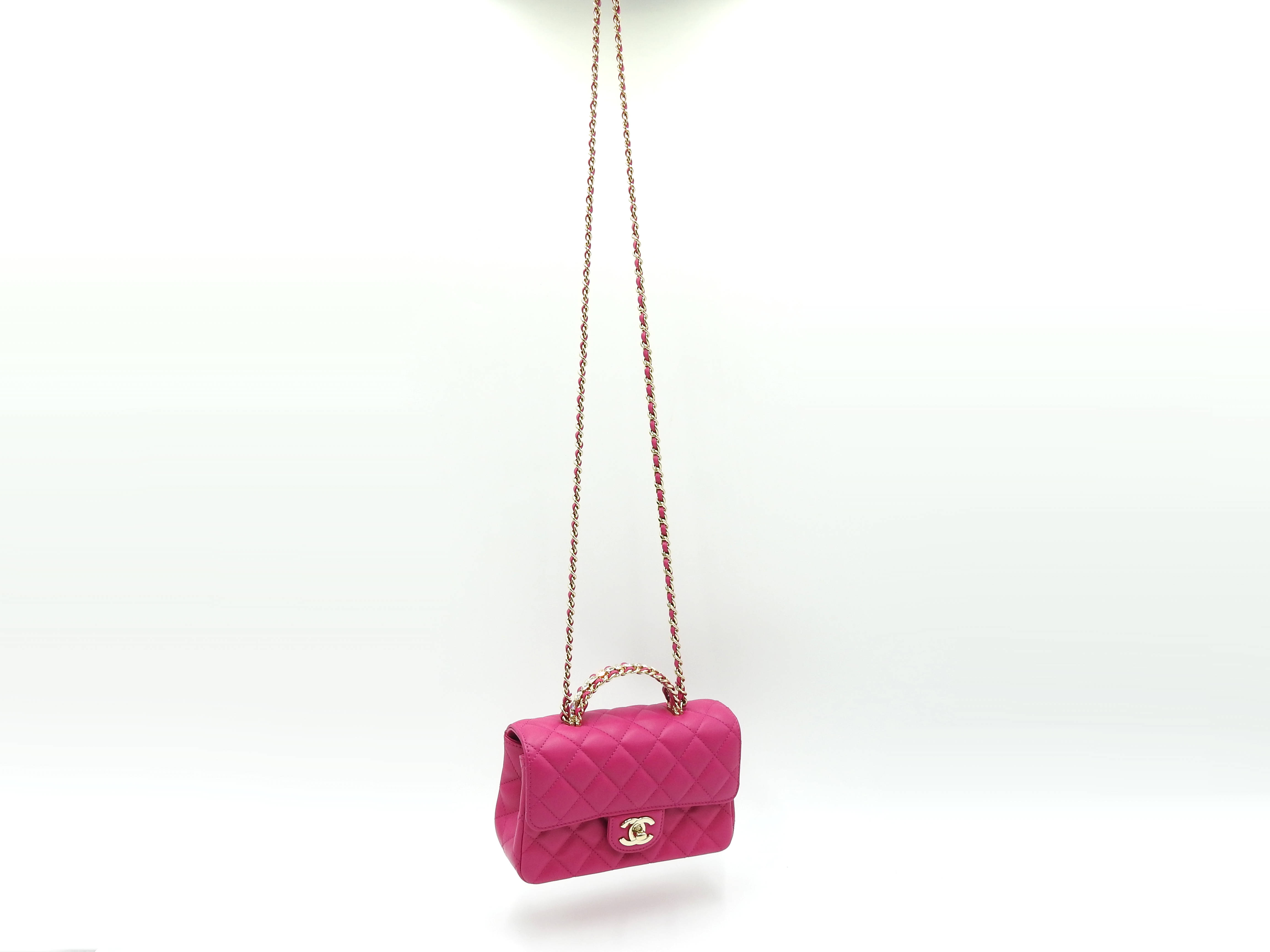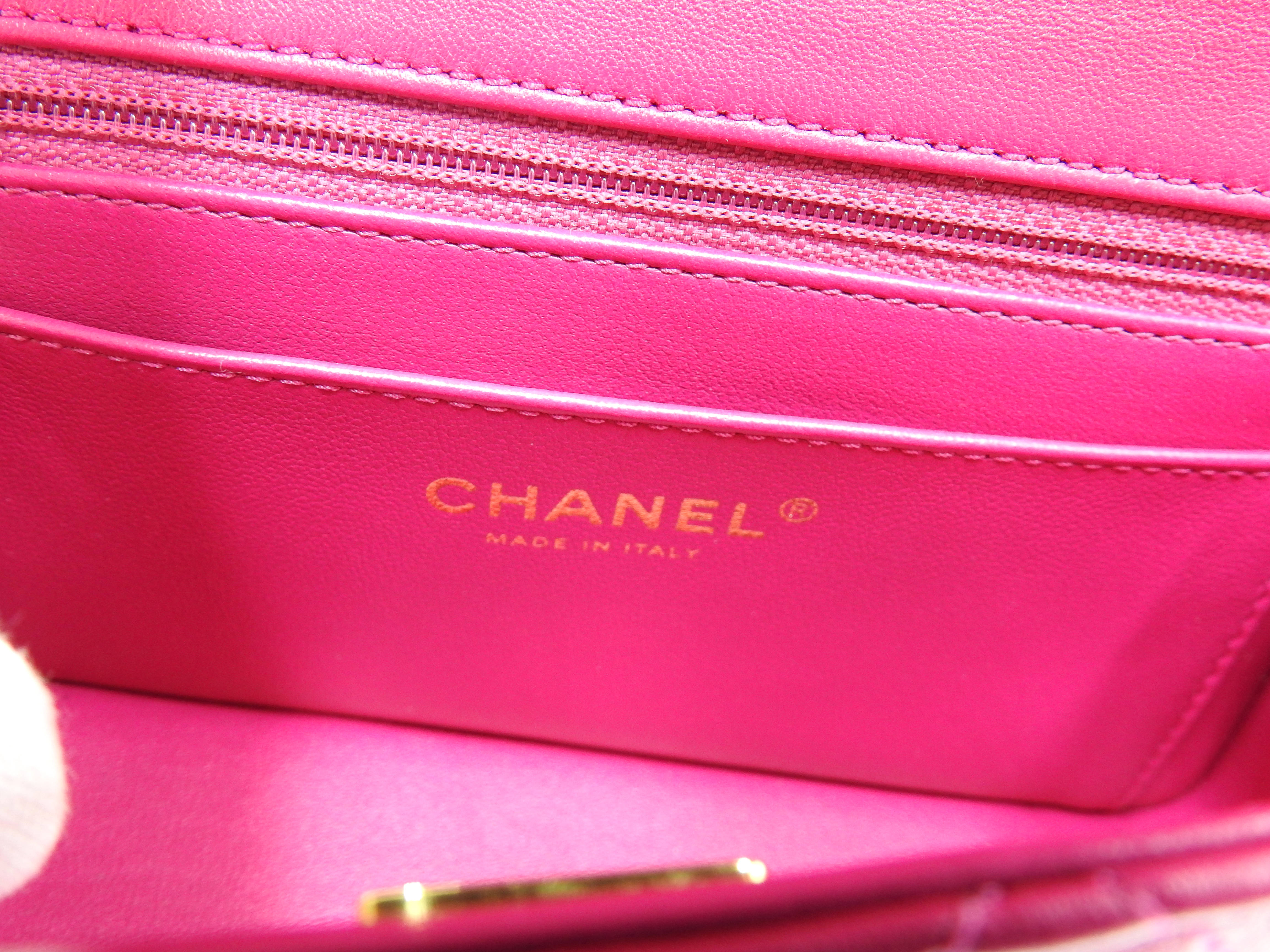 Auth Chanel Top Handle Mini Flap Bag Chain Shoulder Bag Lambskin Leather Pink Gold Hardware AS4140 X-8341