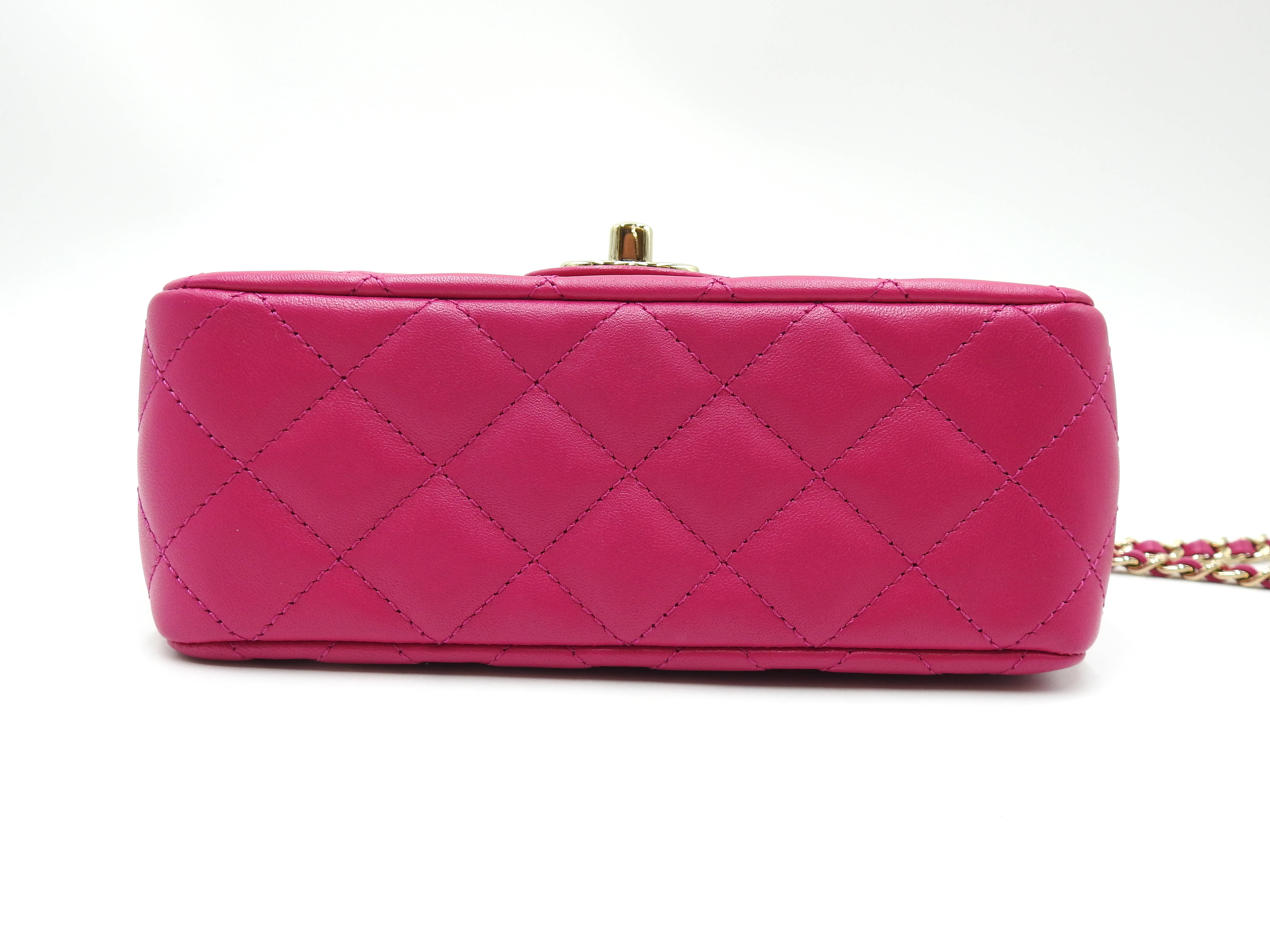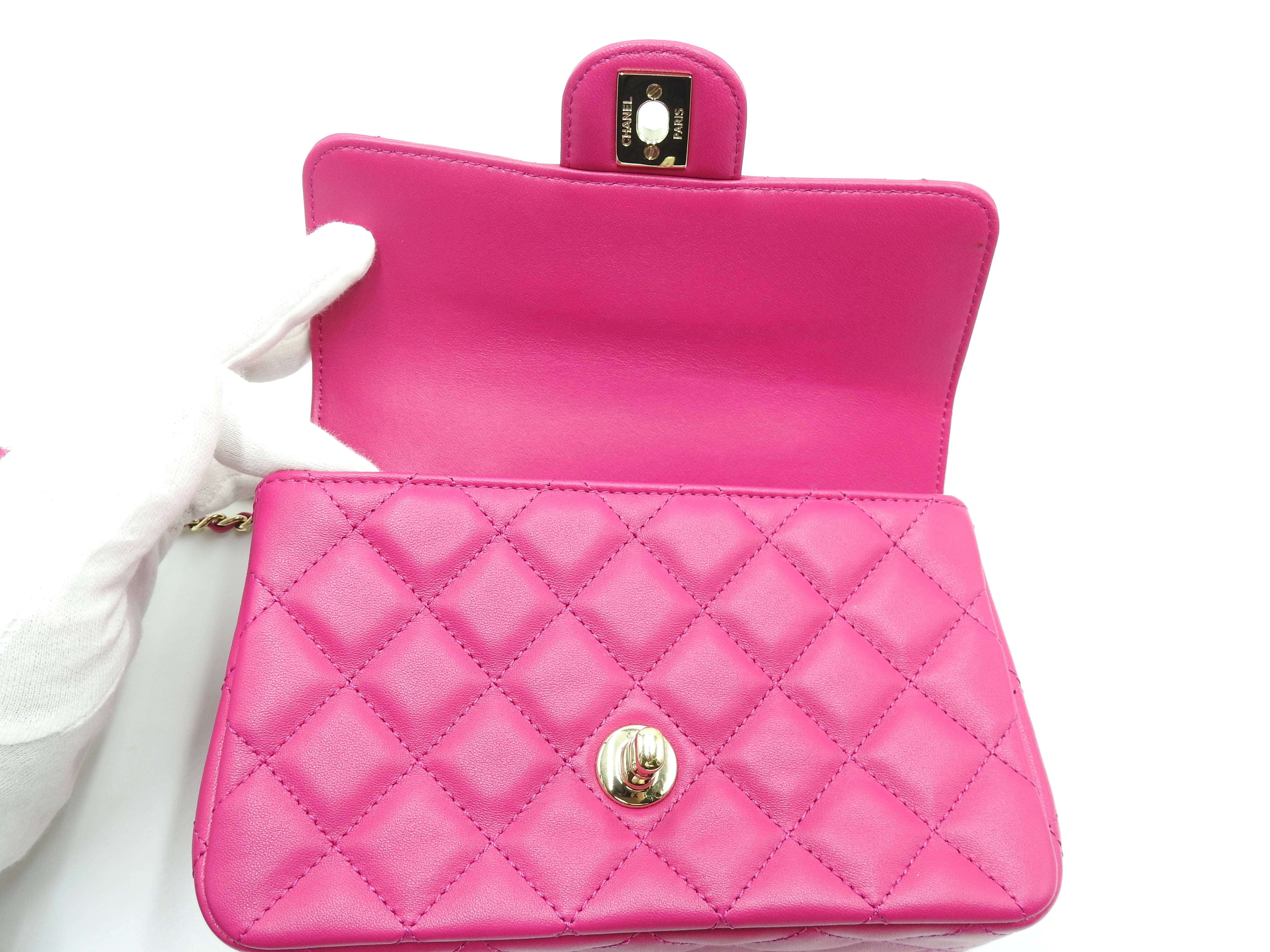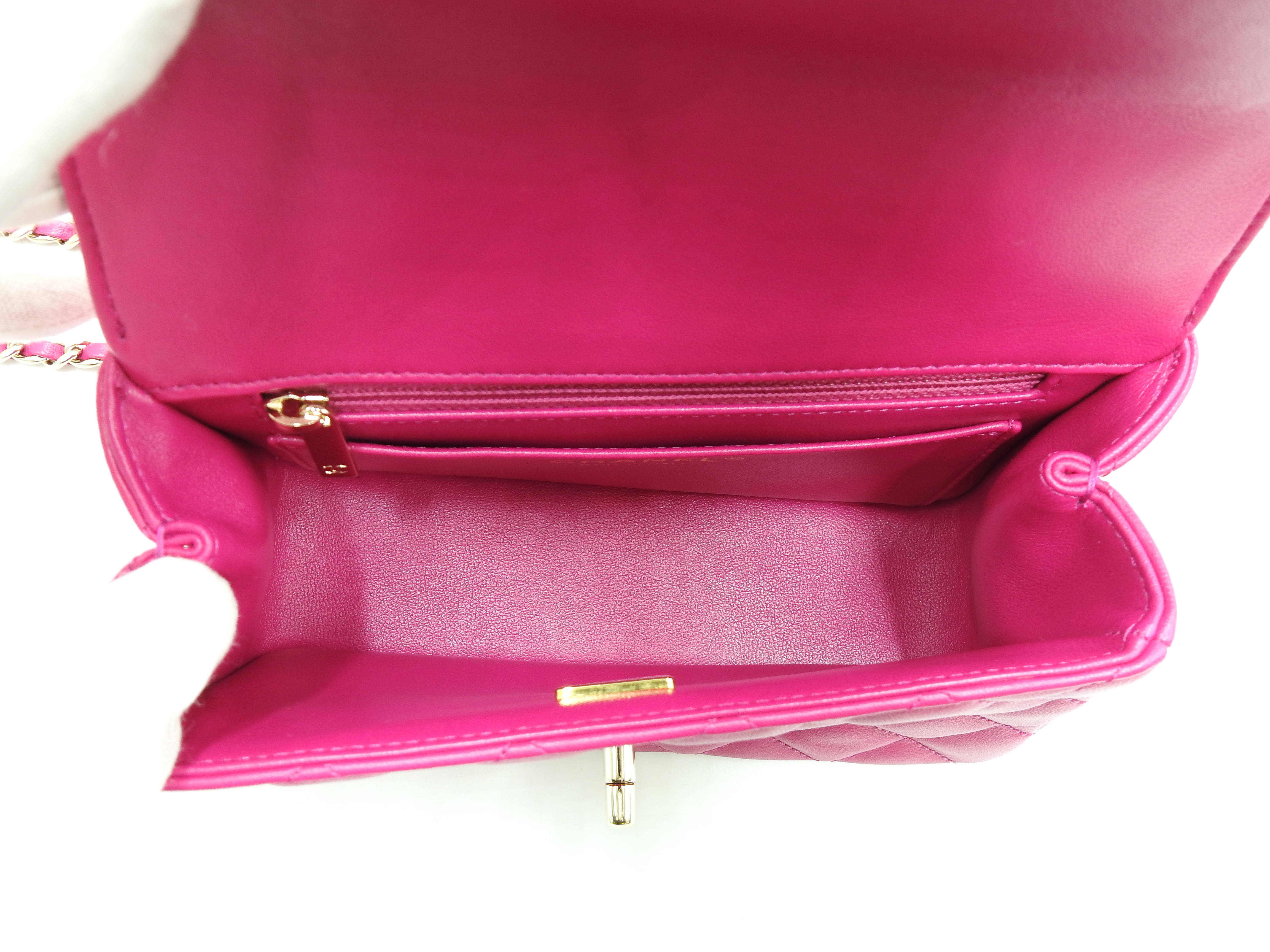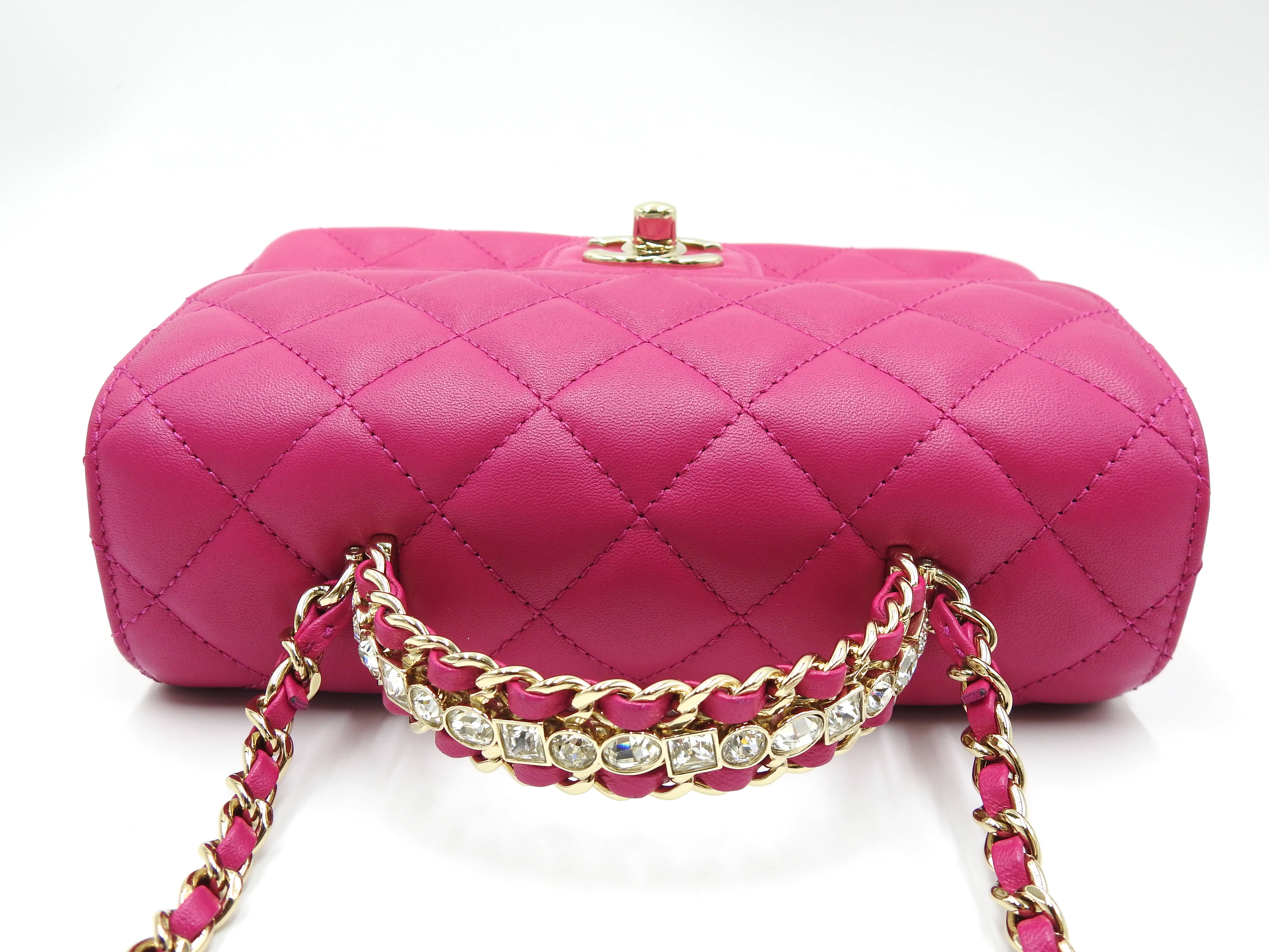 Auth Chanel Top Handle Mini Flap Bag Chain Shoulder Bag Lambskin Leather Pink Gold Hardware AS4140 X-8341