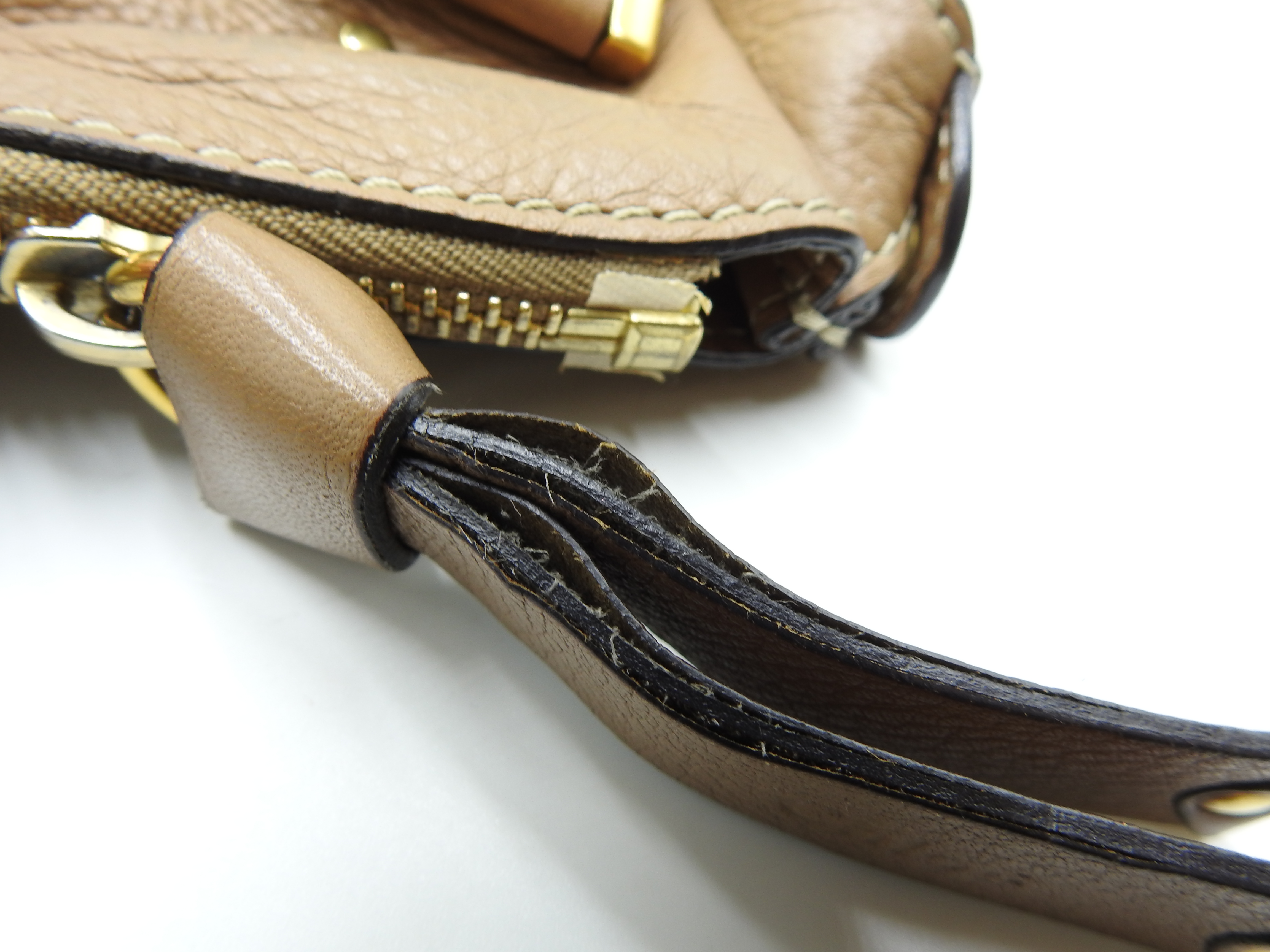 | Snaps, Zippers and Hardware | Used feeling. Some peelings and cracks in the pull leather. |