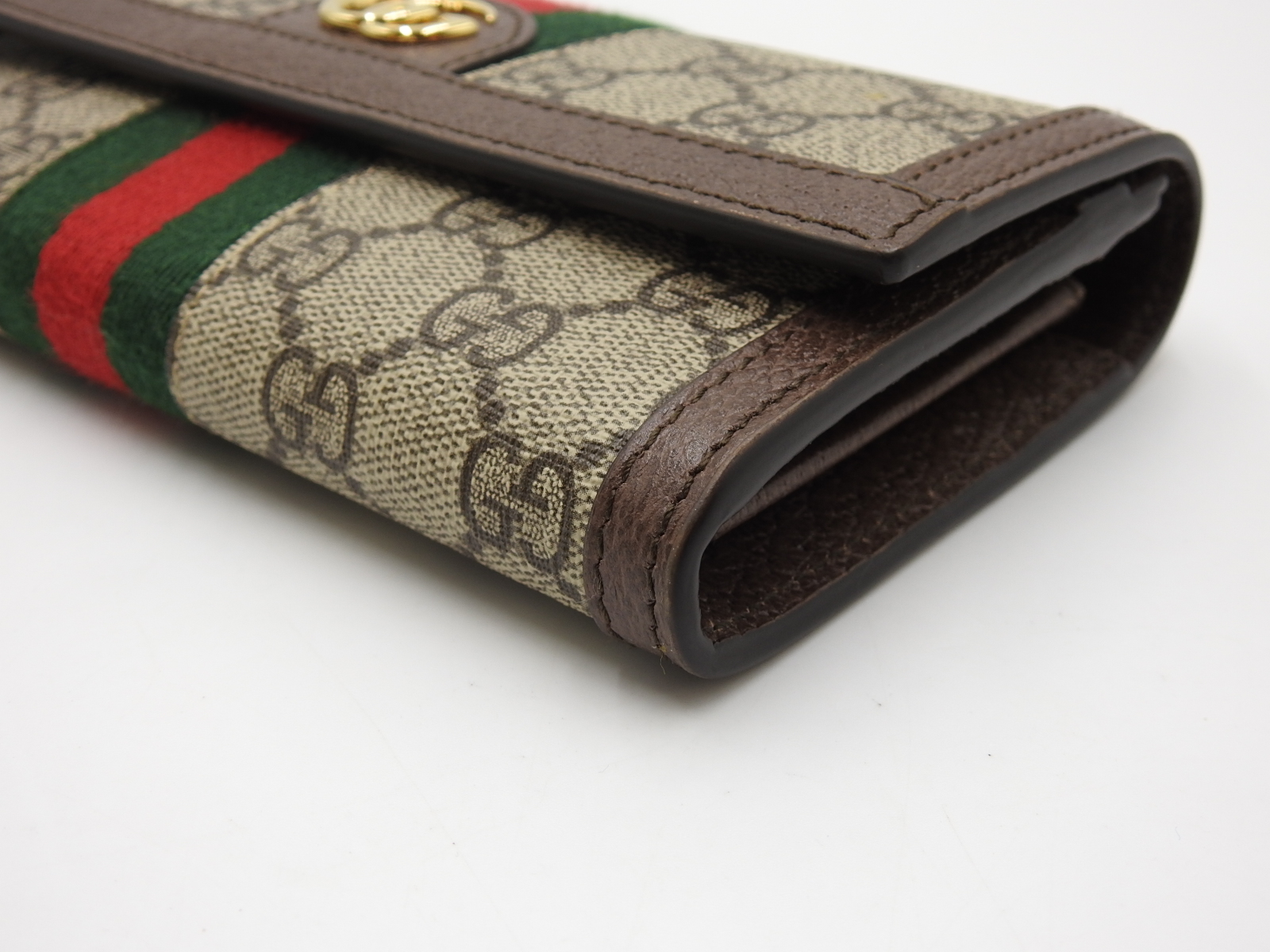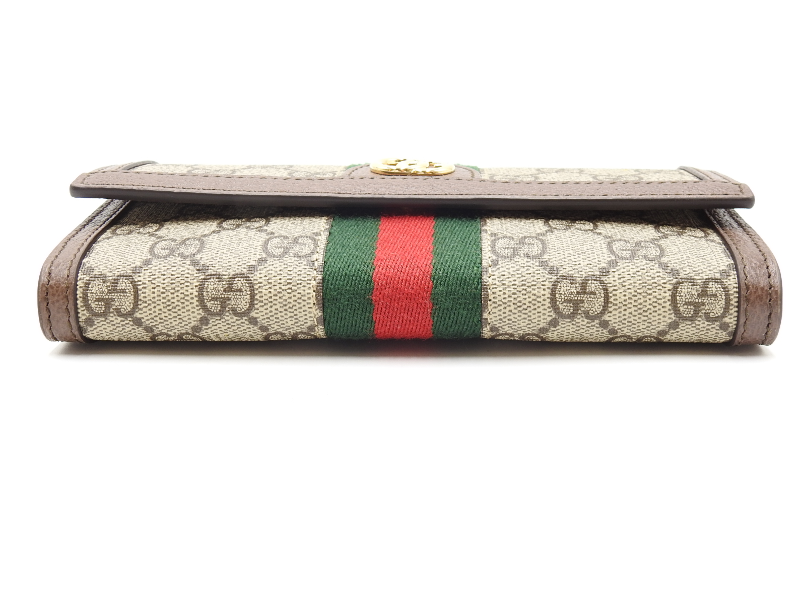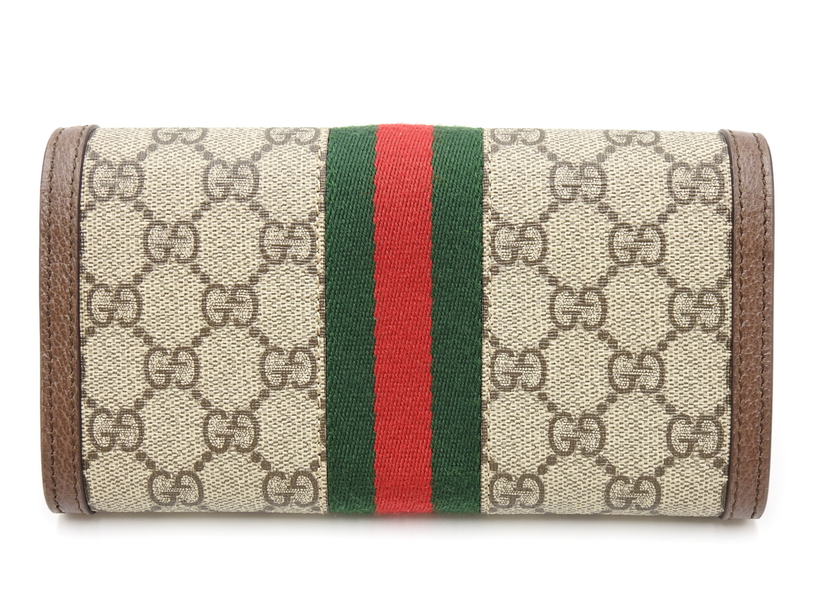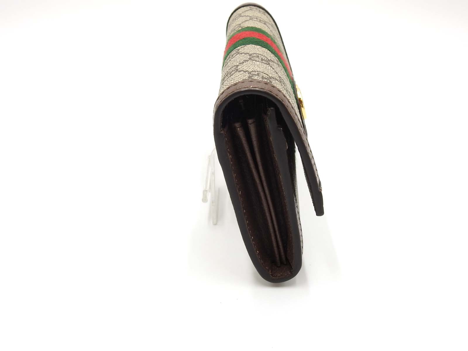 Auth GUCCI Ophidia GG Continental Bifold Long Wallet Canvas Leather Beige Brown Green Red 523153 W-7949