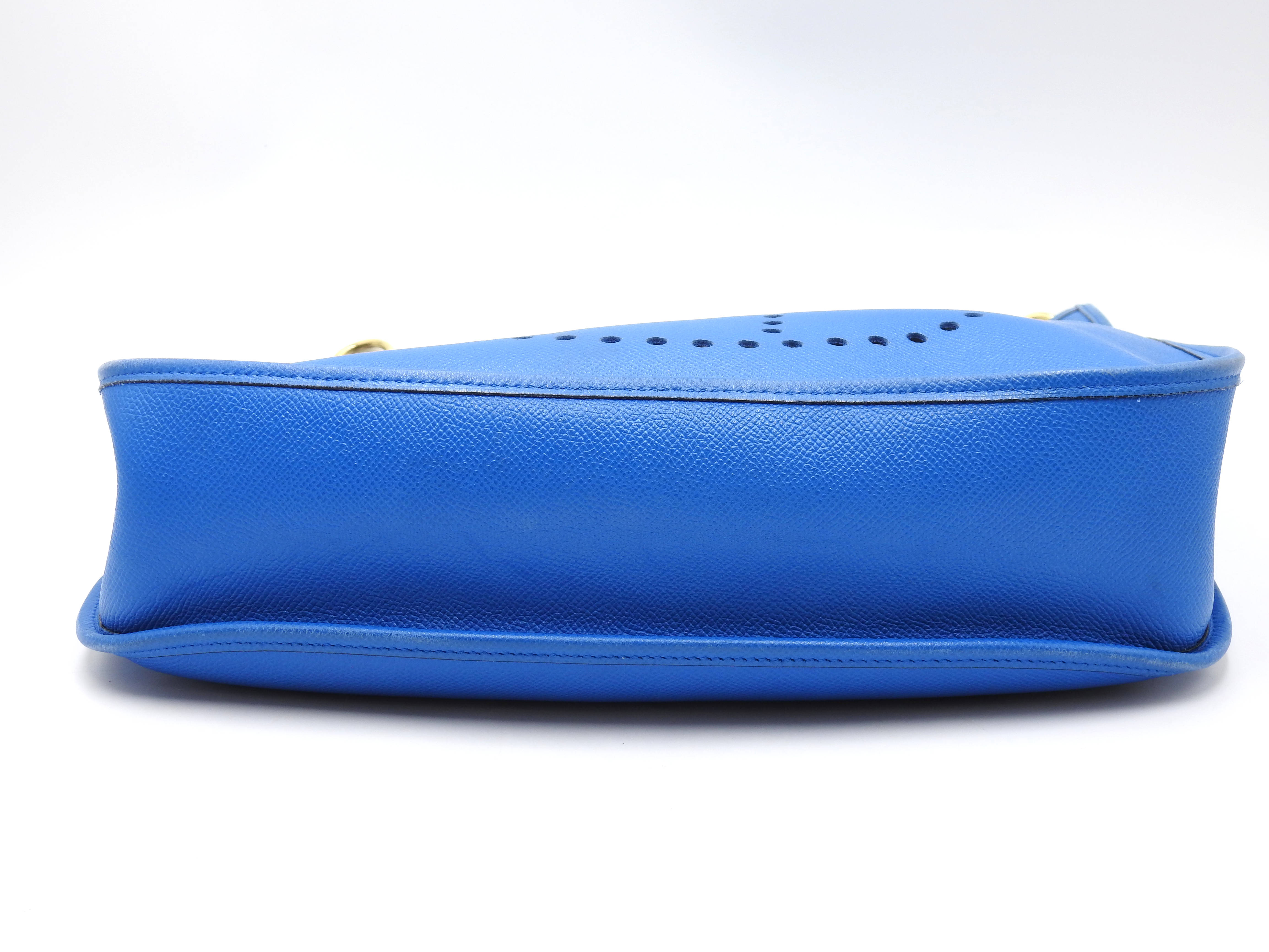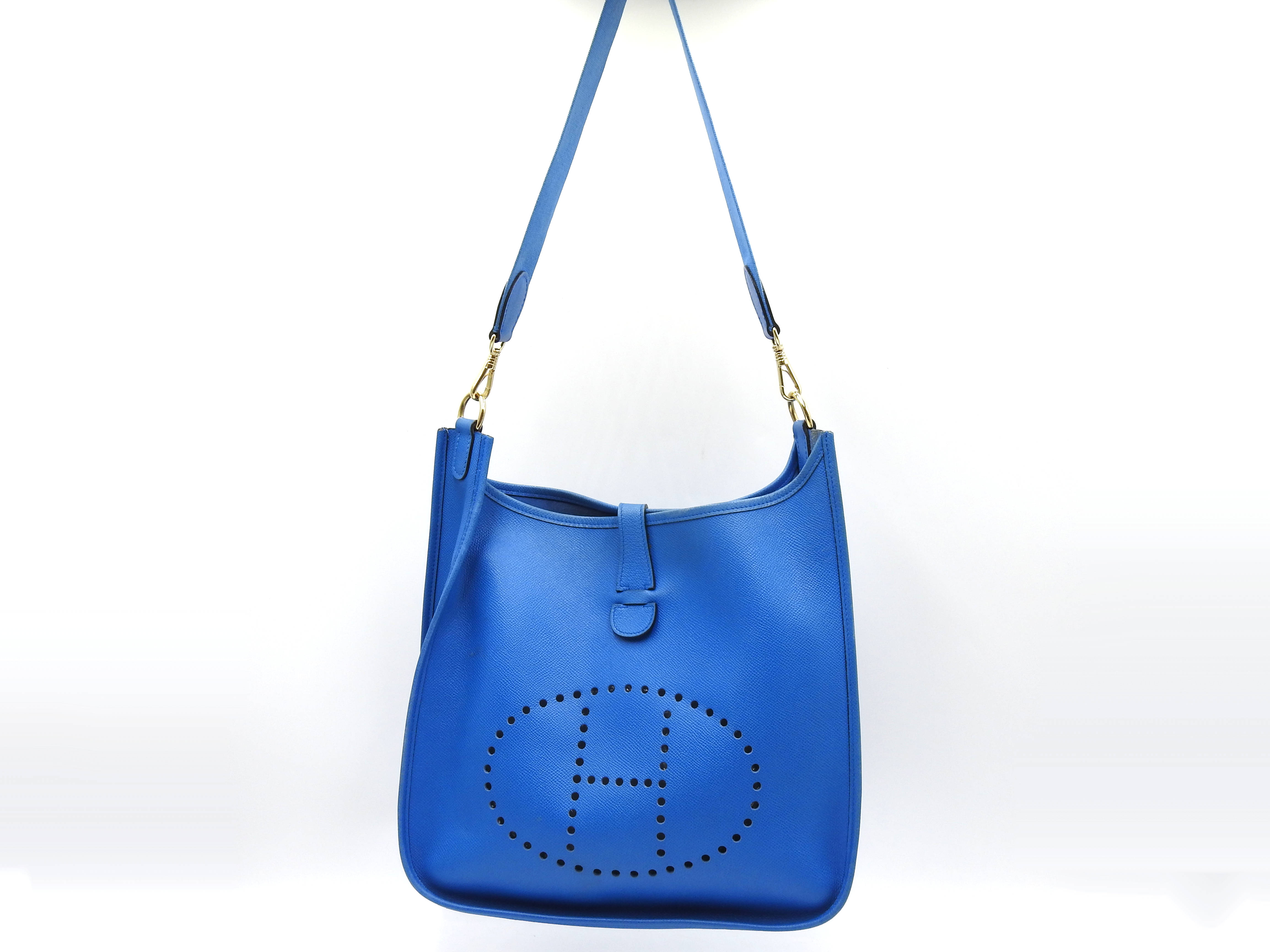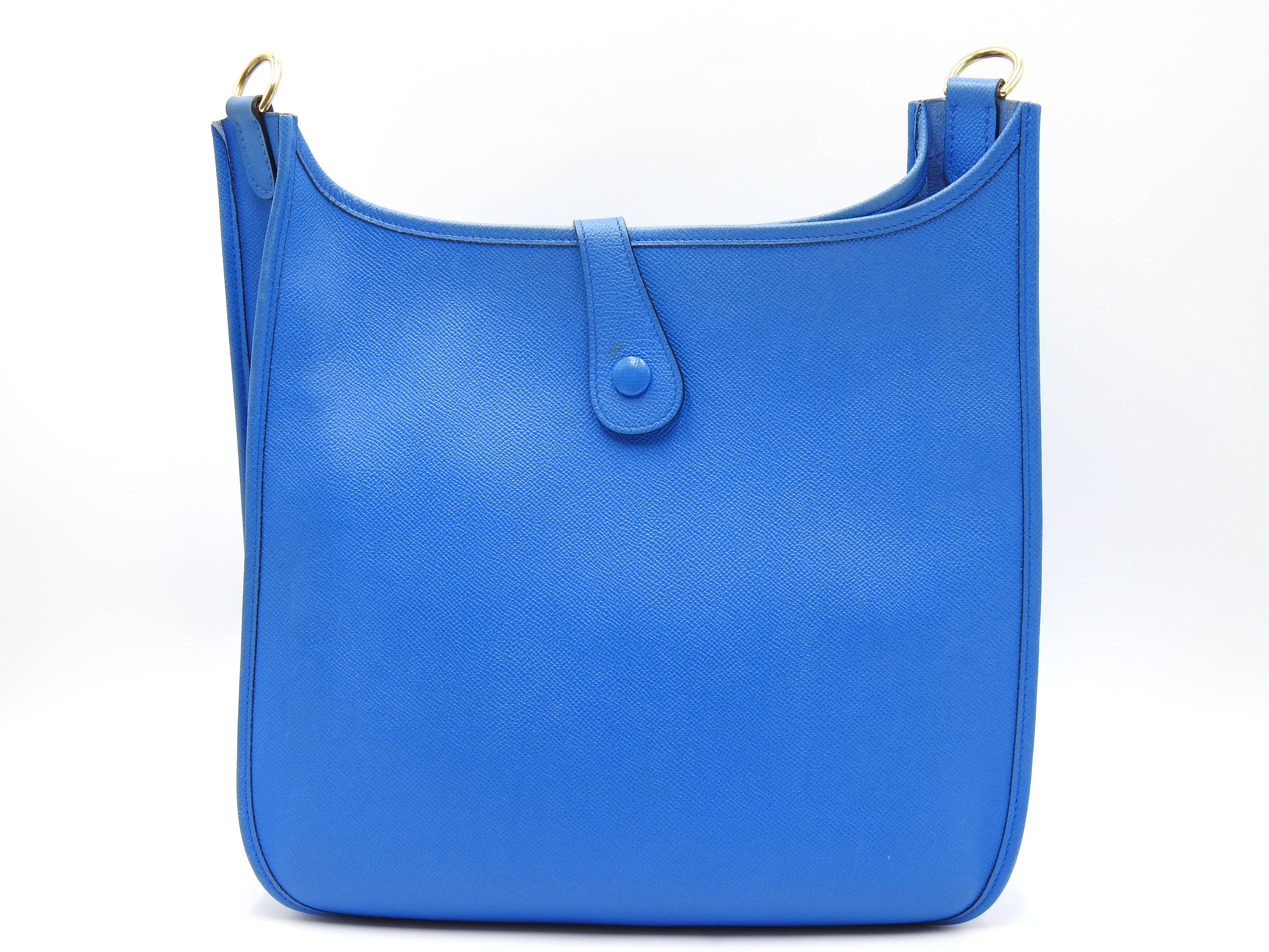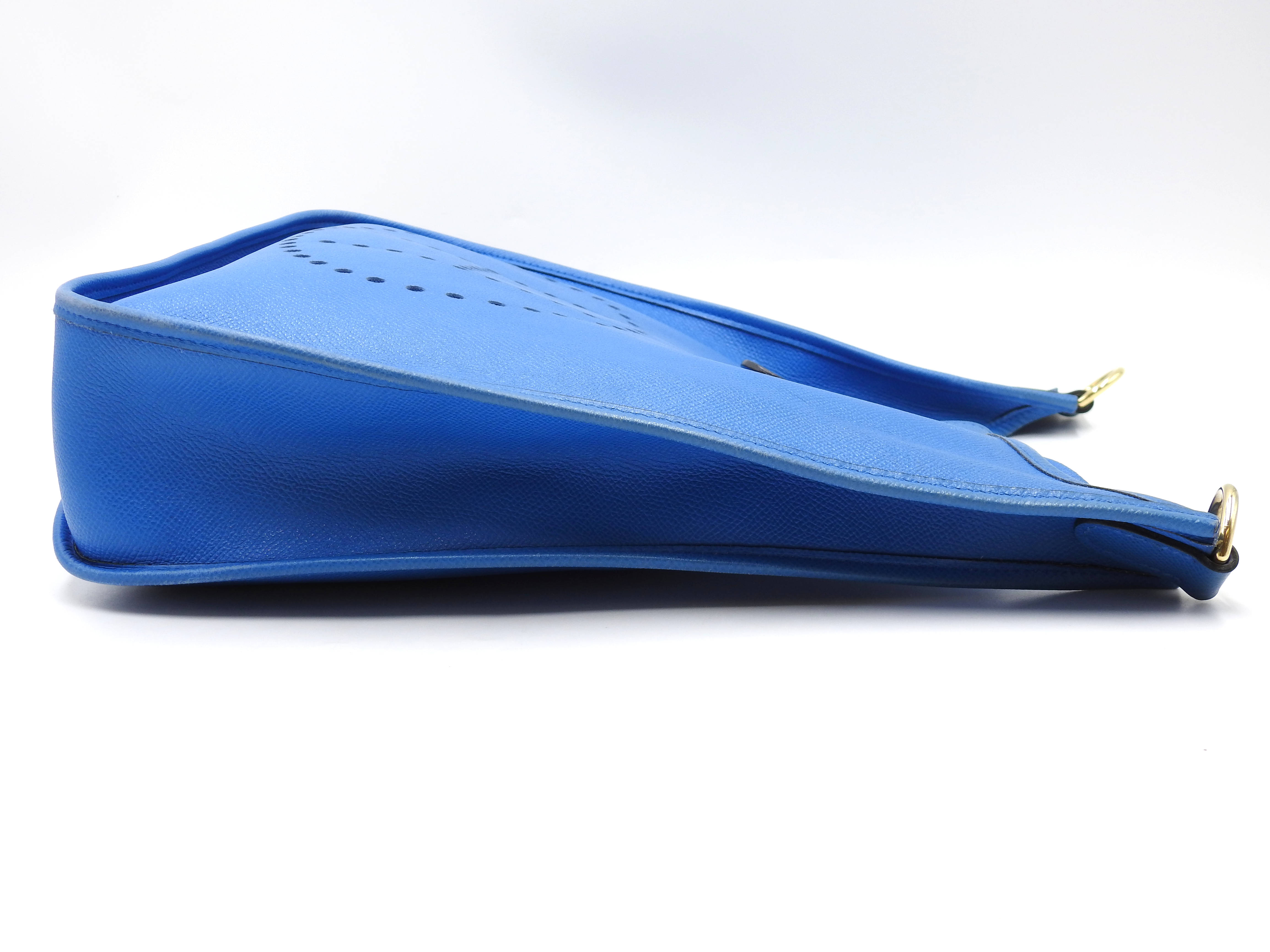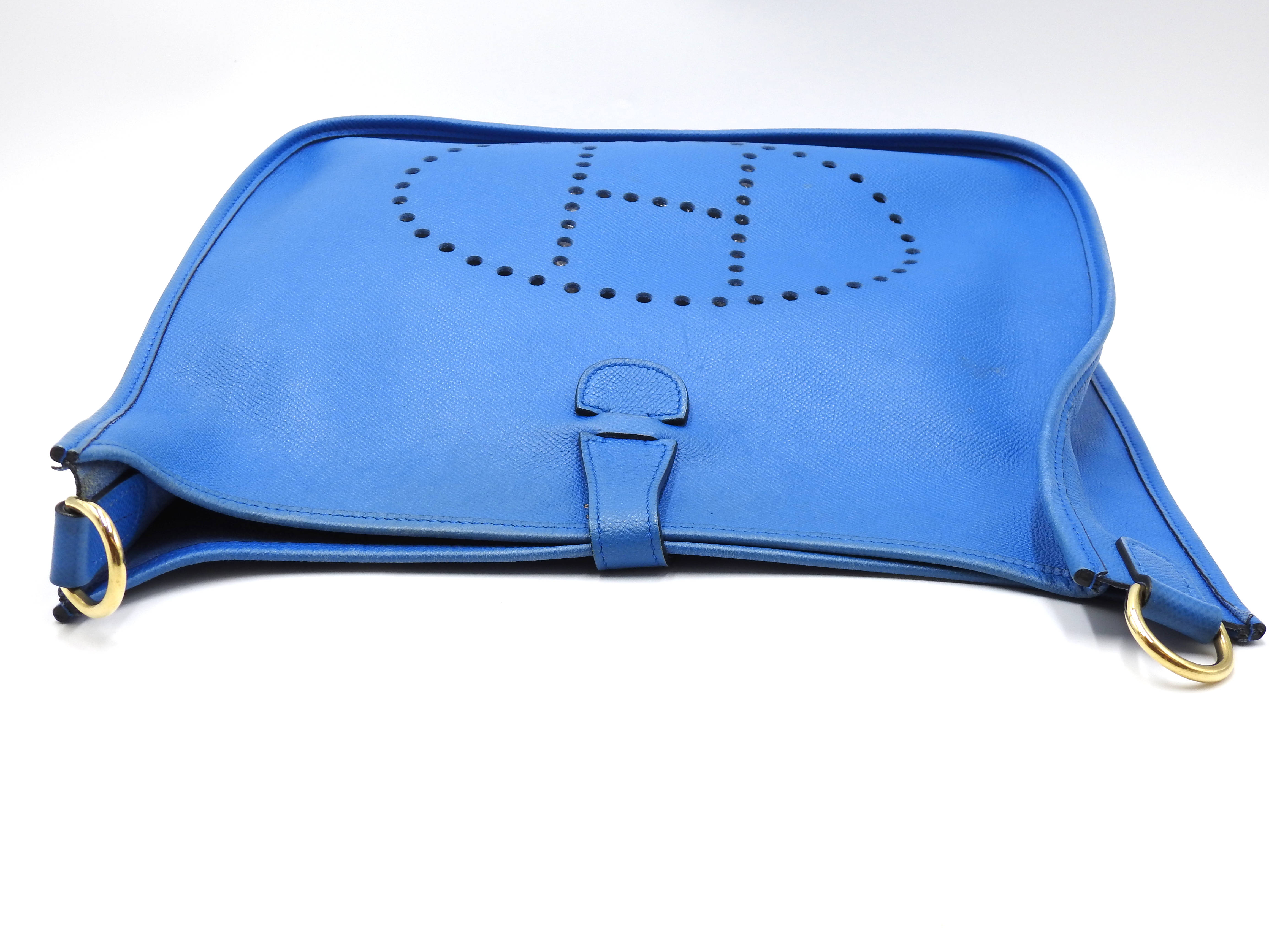 Auth HERMES Evelyne 1 GM Crossbody Shoulder Bag Cushbel Leather Blue Gold Hardware □A X-8815