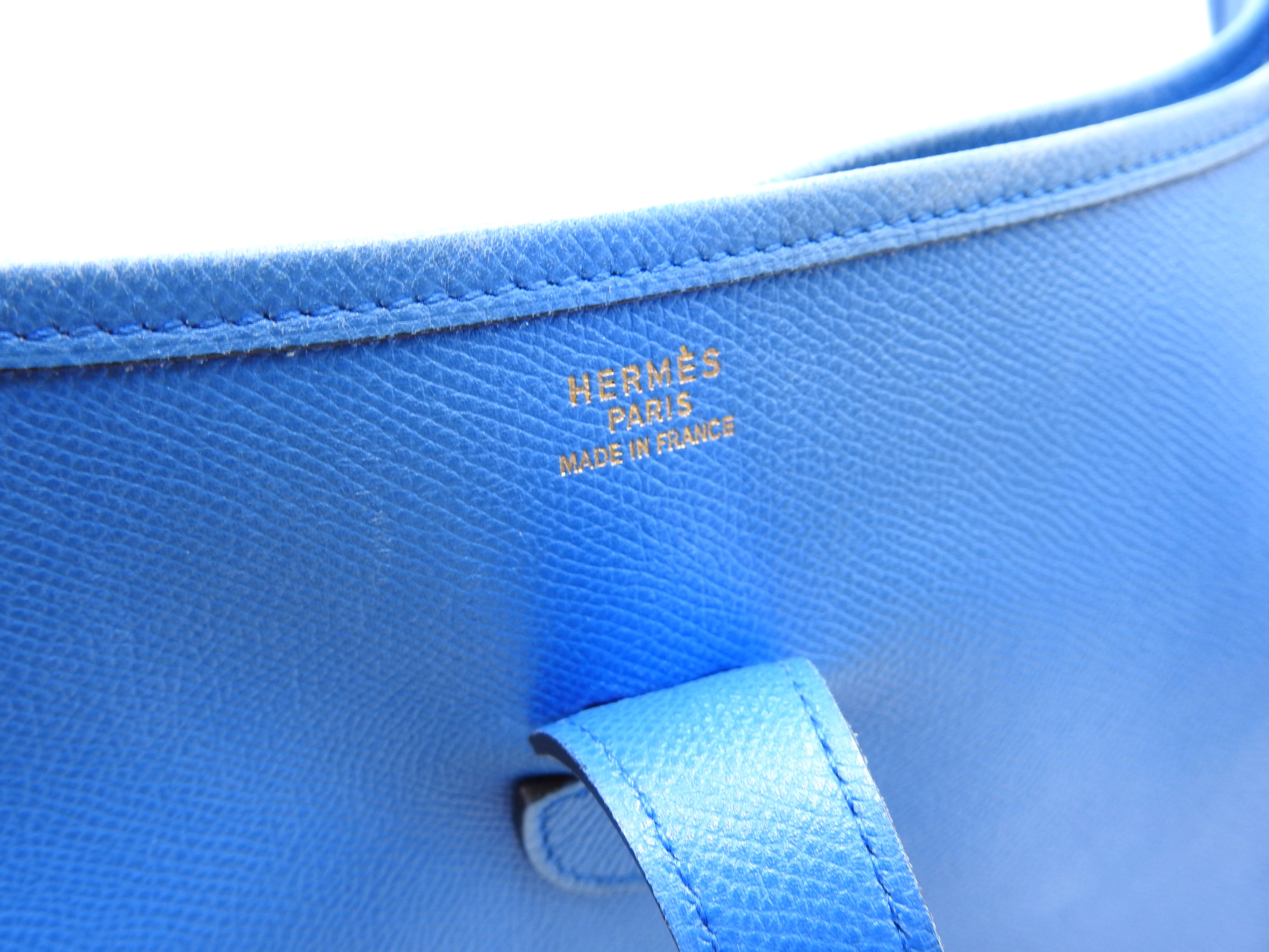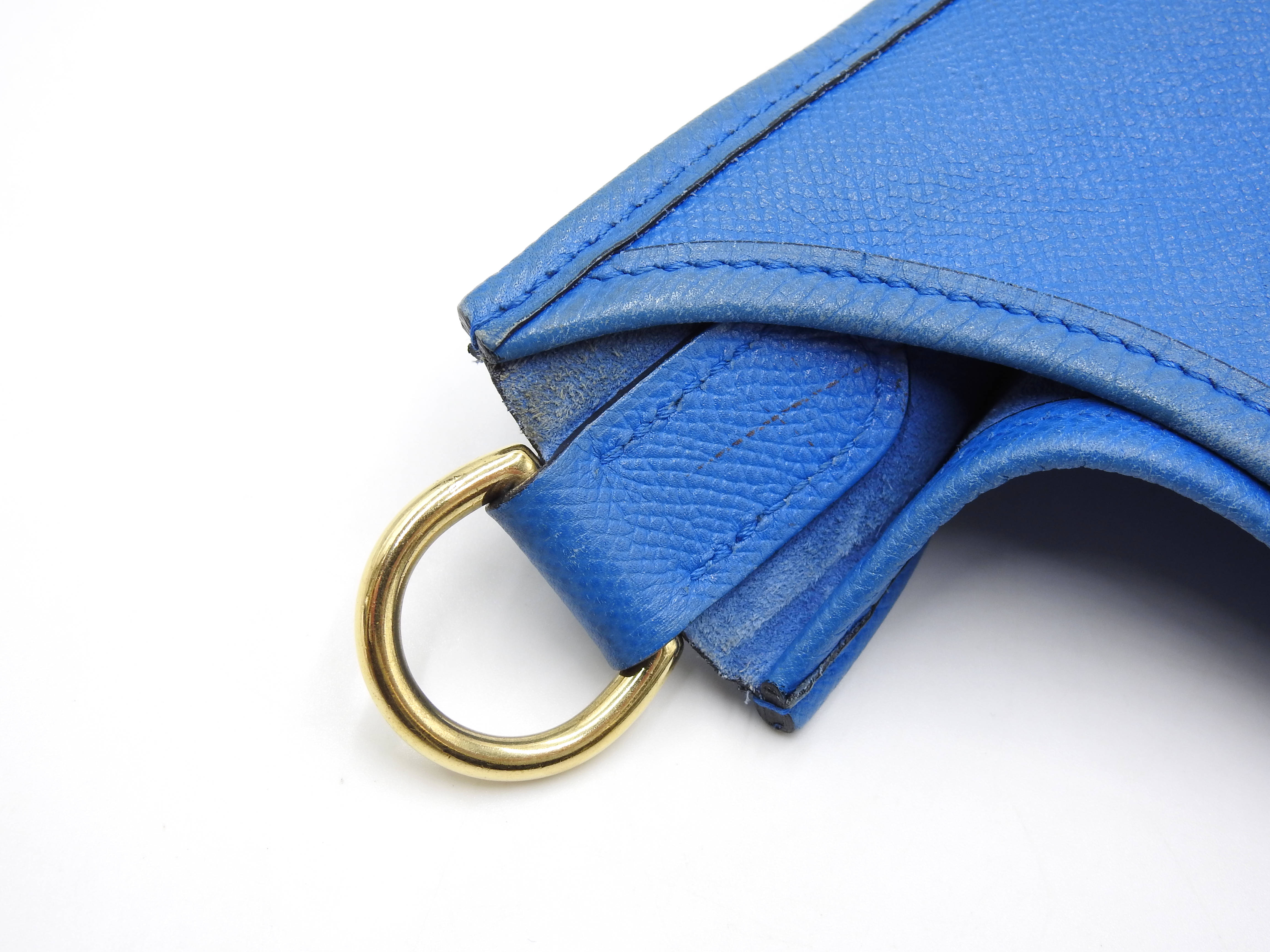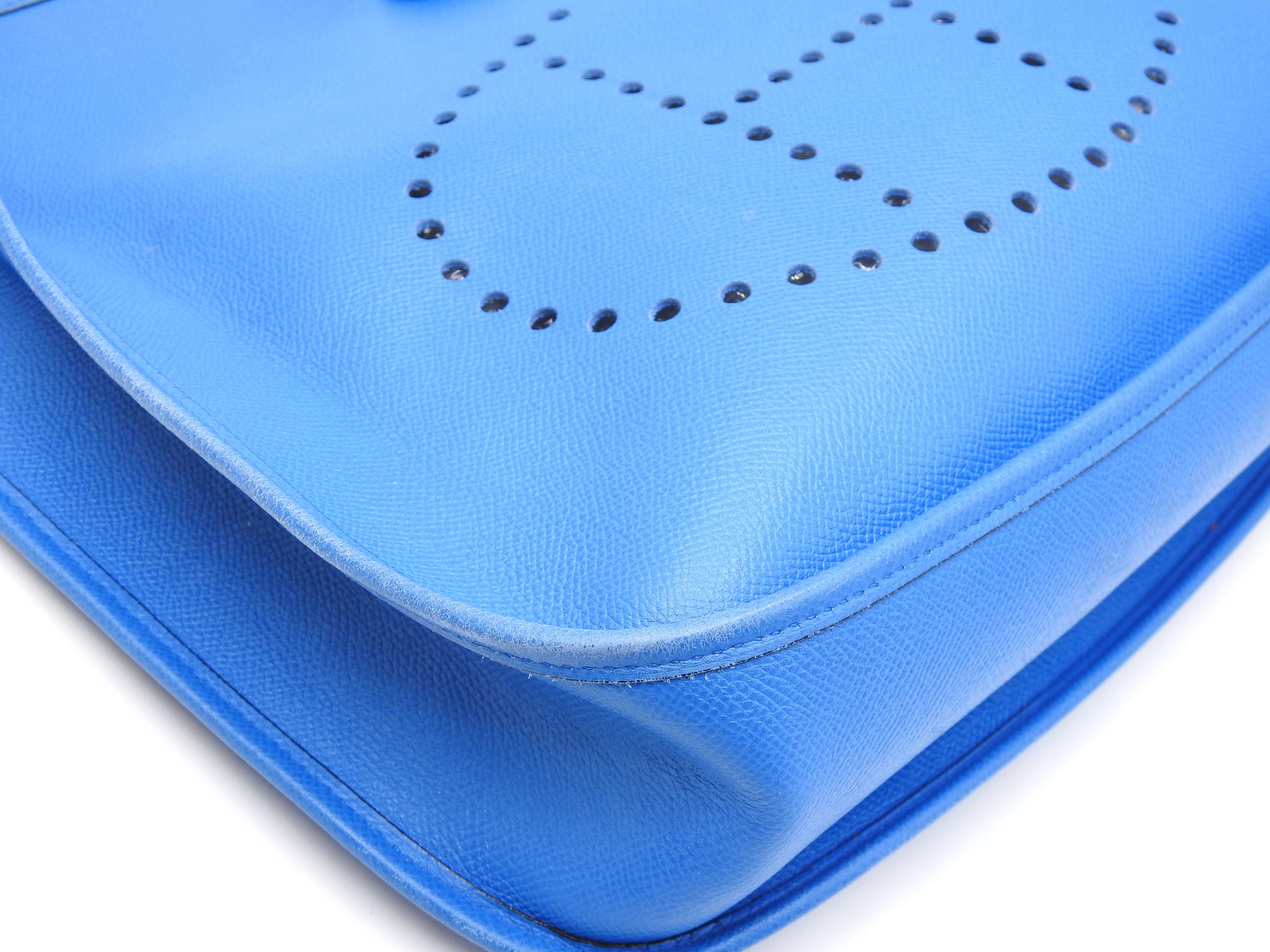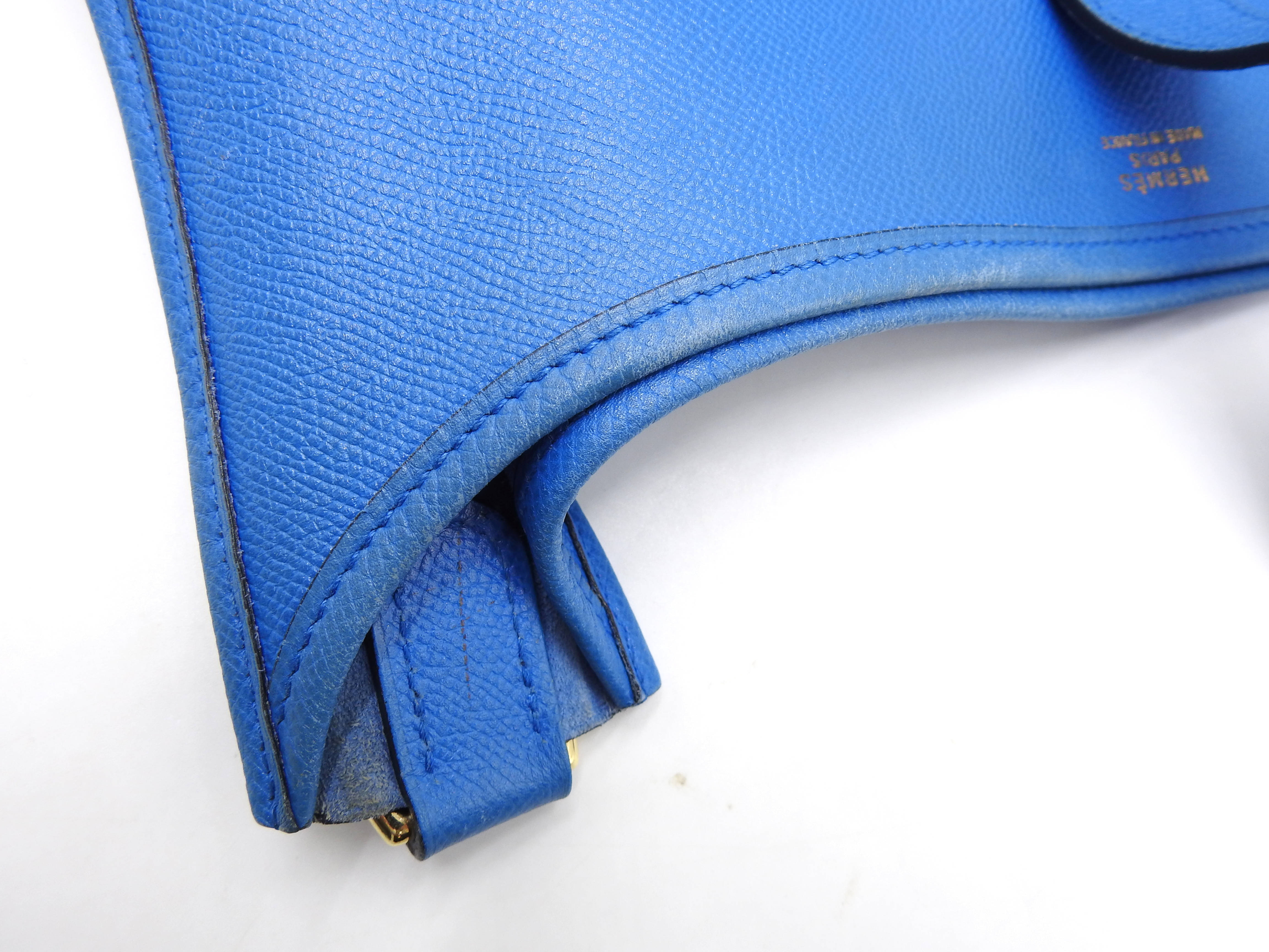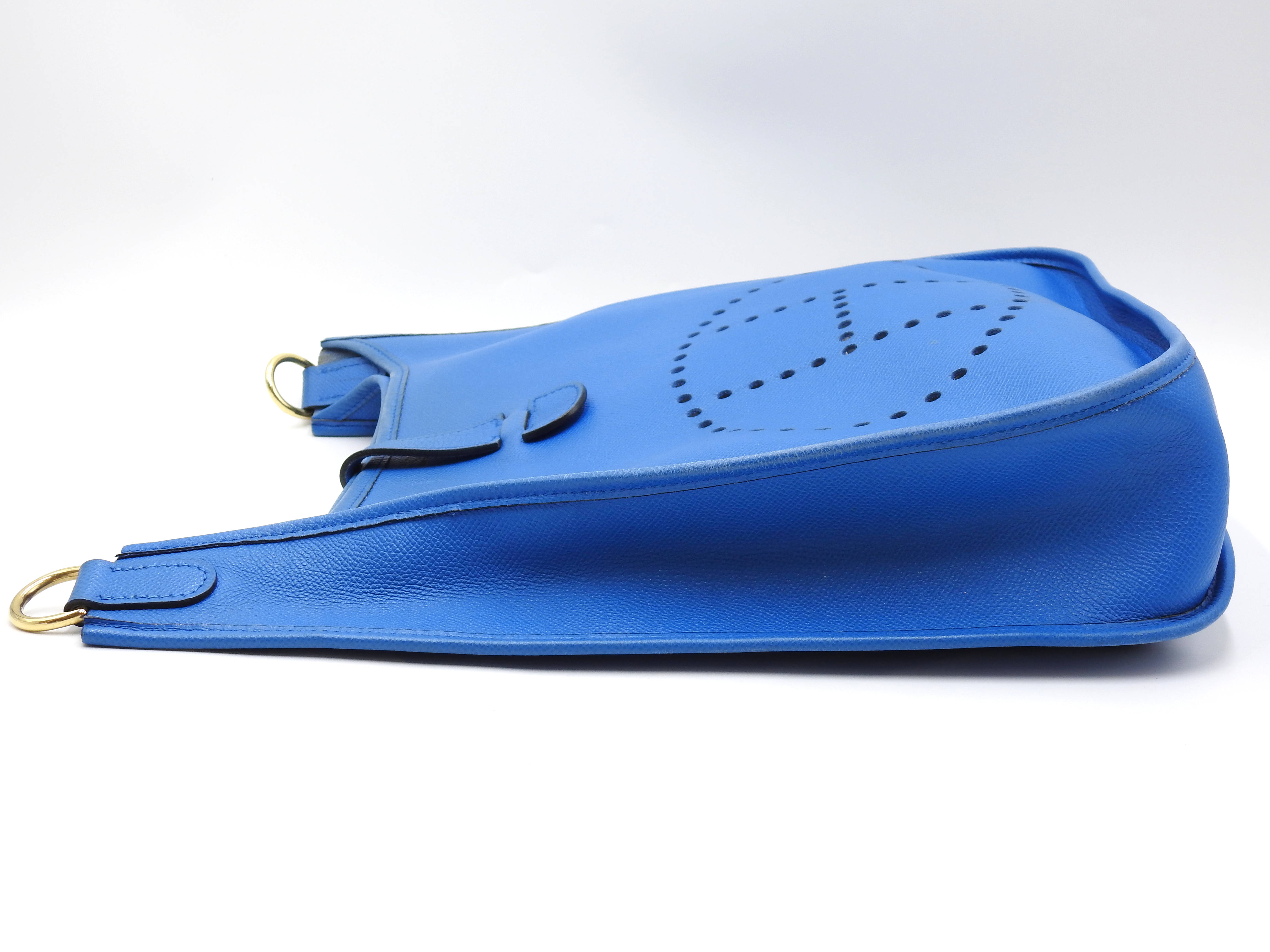 Auth HERMES Evelyne 1 GM Crossbody Shoulder Bag Cushbel Leather Blue Gold Hardware □A X-8815
