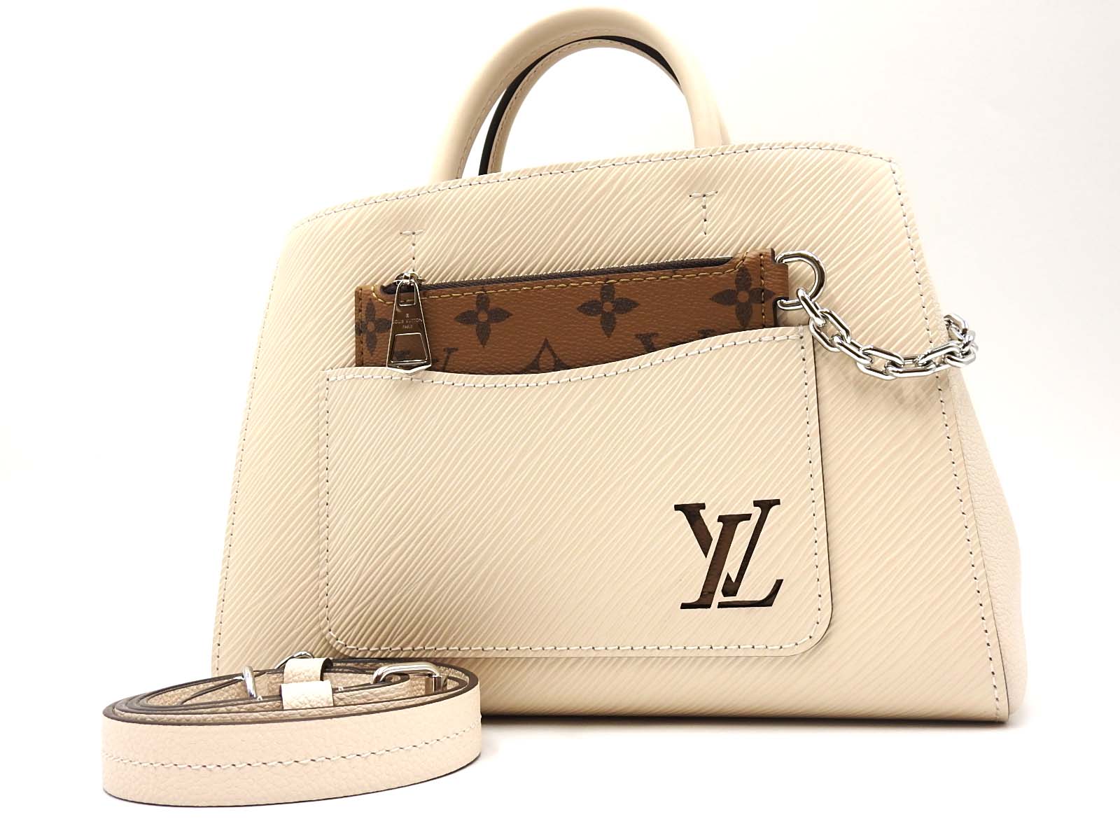 Auth LOUIS VUITTON Epi Marelle Tote BB 2way Shoulder Hand Bag Leather Epi Quartz White M20520 W-7246