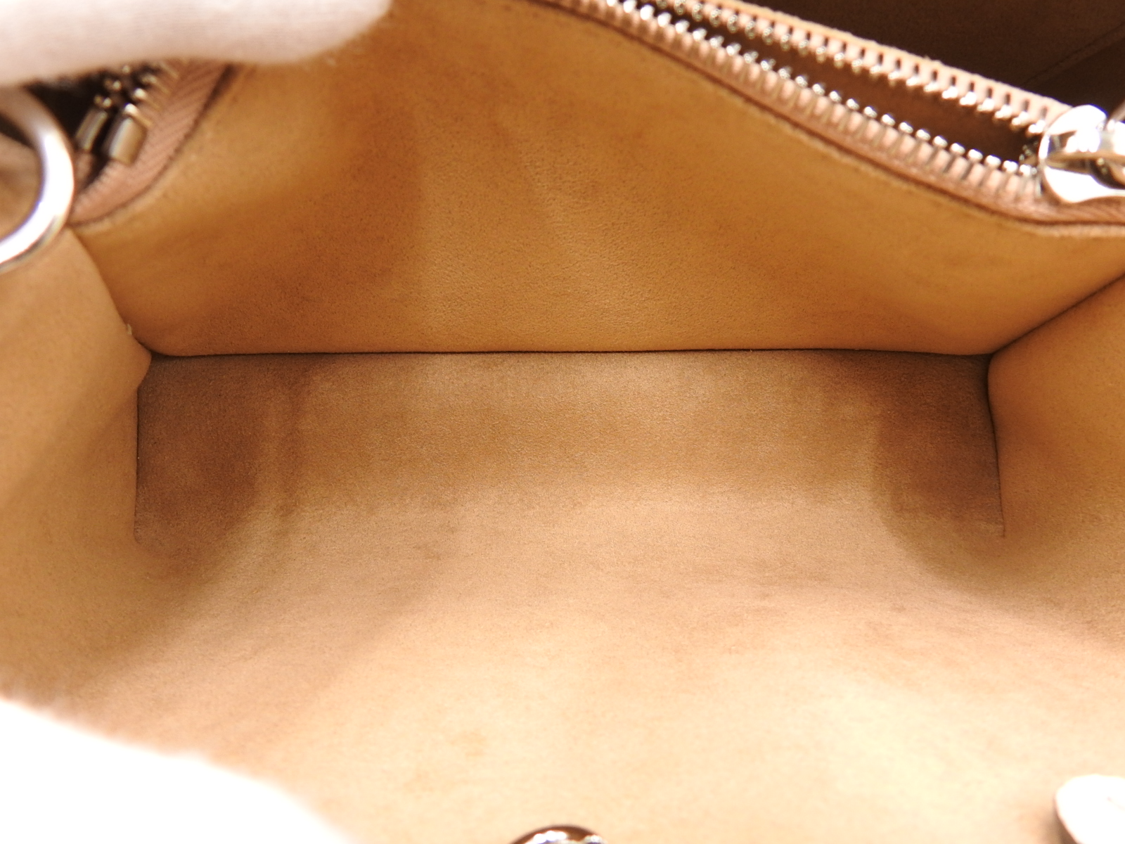 Handles: Mint. Almost brand new except for a few tiny pressed marks in the varnish. Shoulder strap: Mint. Almost brand new. |
