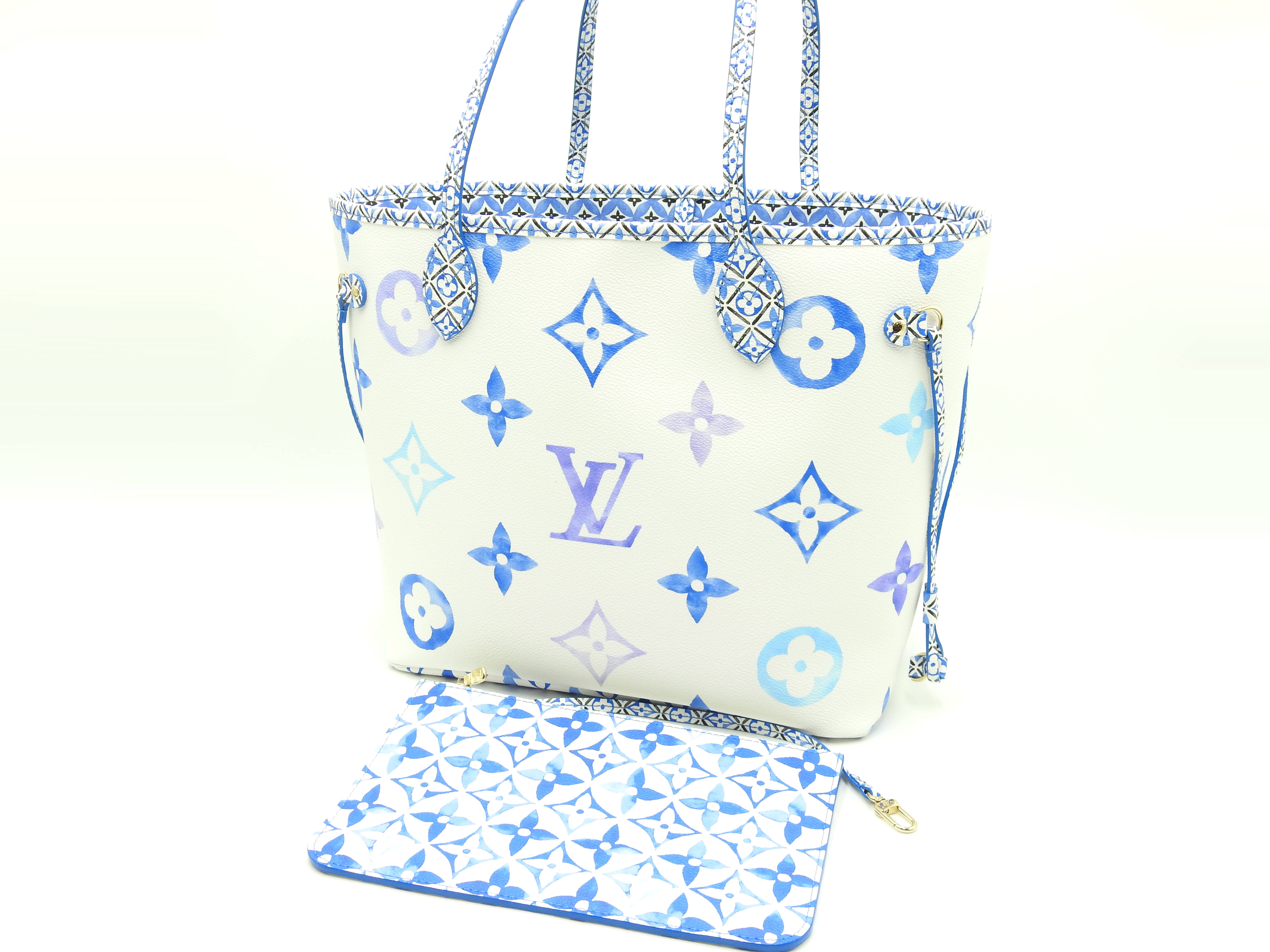 Auth LOUIS VUITTON LV By The Pool Monogram Jiant Neverfull MM Tote Bag Shoulder Bag Blue White M22979 X-8435