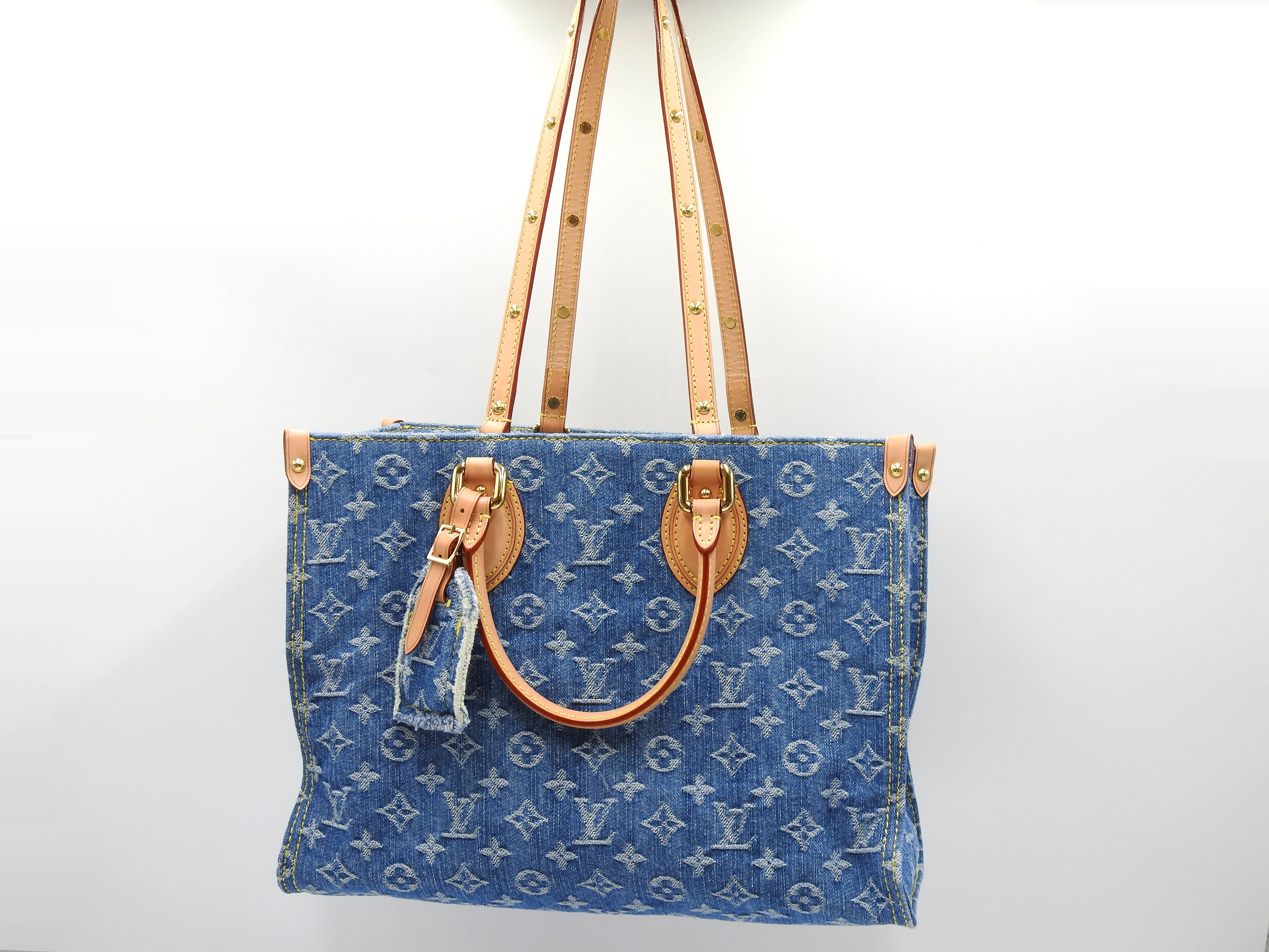 Auth LOUIS VUITTON LV Remix Monogram Denim OnTheGo MM 2way Tote Bag Shoulder Bag Blue M46871 X-9012