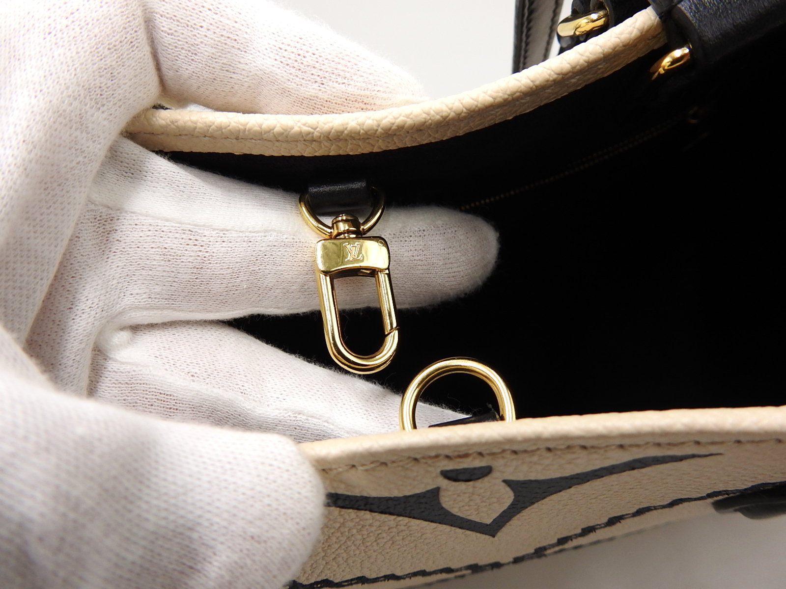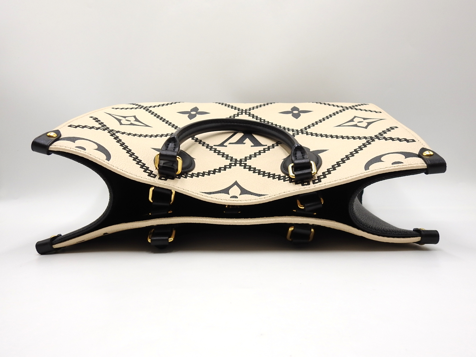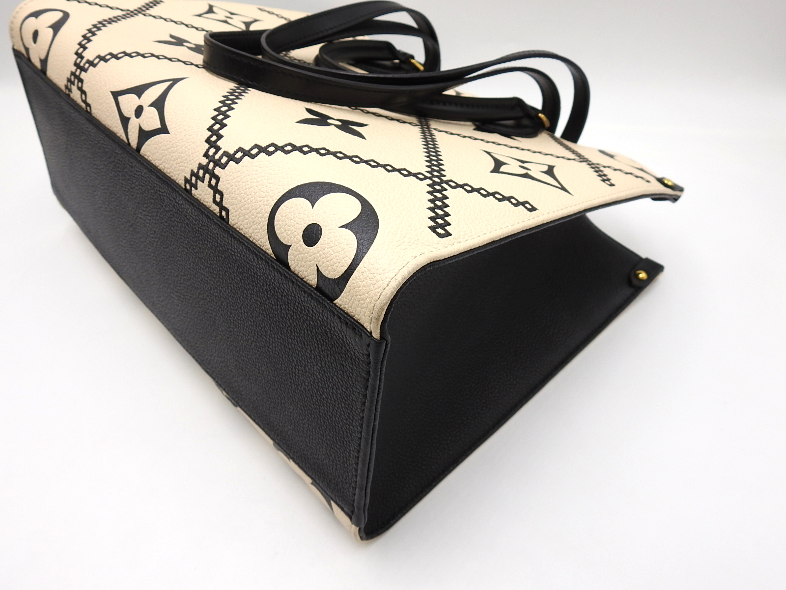 Auth LOUIS VUITTON Monogram Empreinte Giant Embroidery On The Go MM 2way Shoulder Tote Bag Cream Beige Noir Black M46016 W-7566