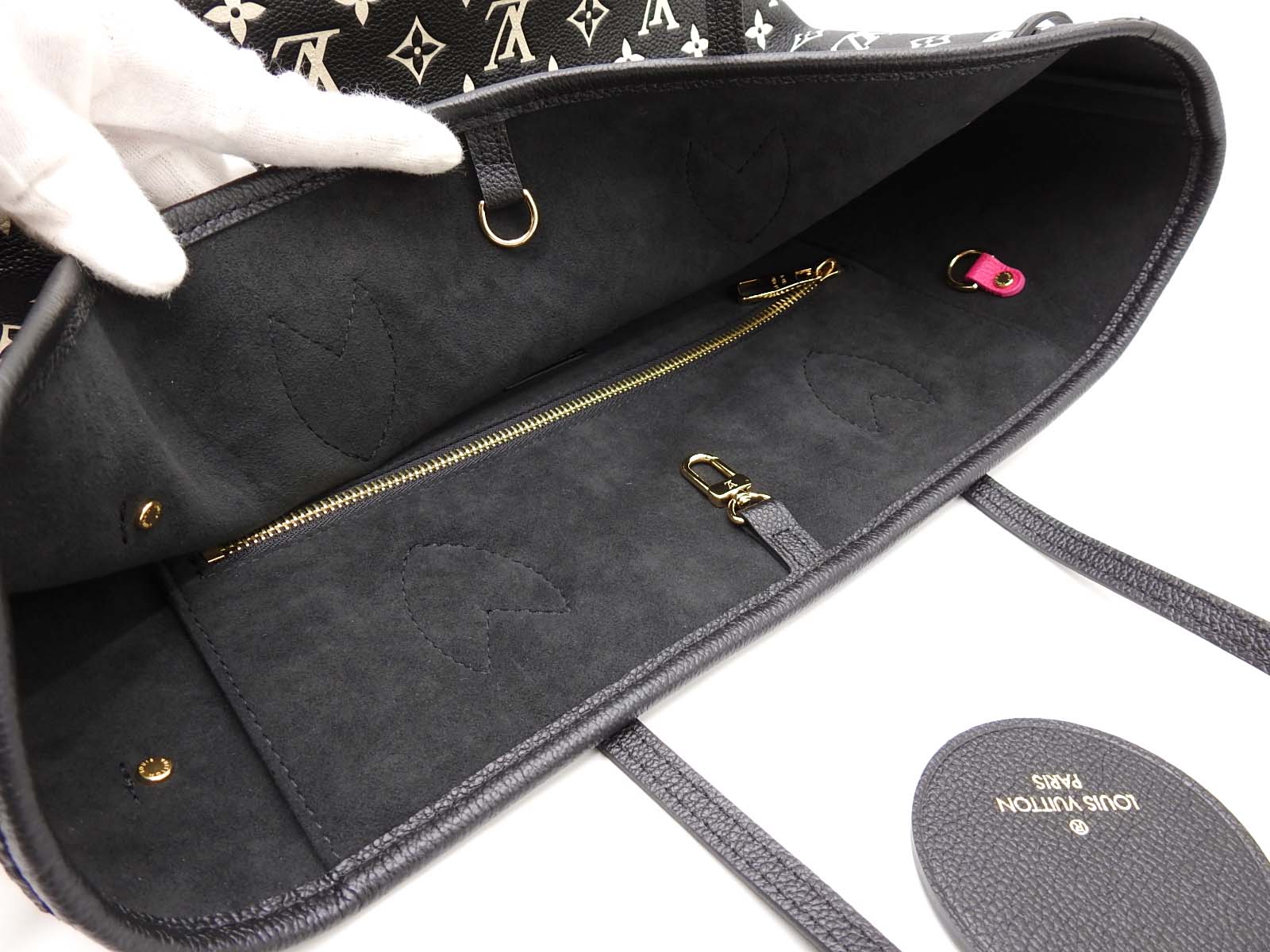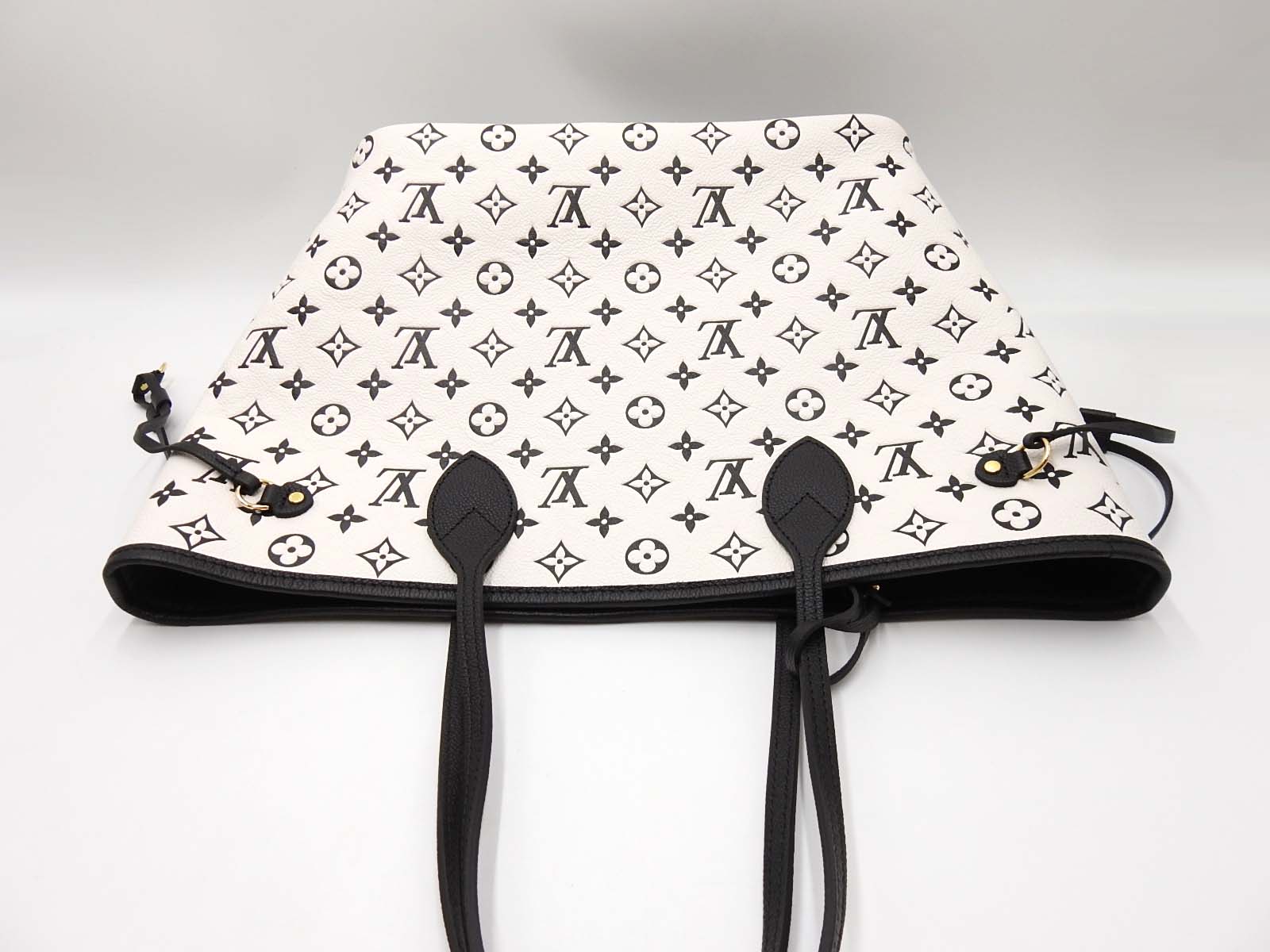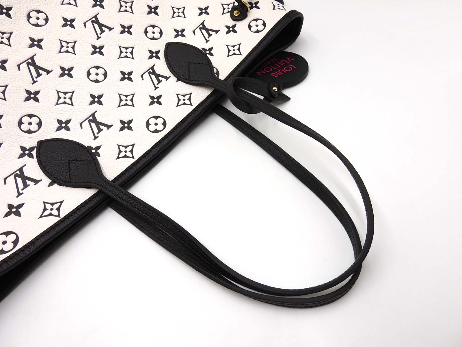 Auth LOUIS VUITTON Monogram Empreinte Neverfull MM Shoulder Tote Bag Leather Bicolor Noir Black White M46103 W-6593
