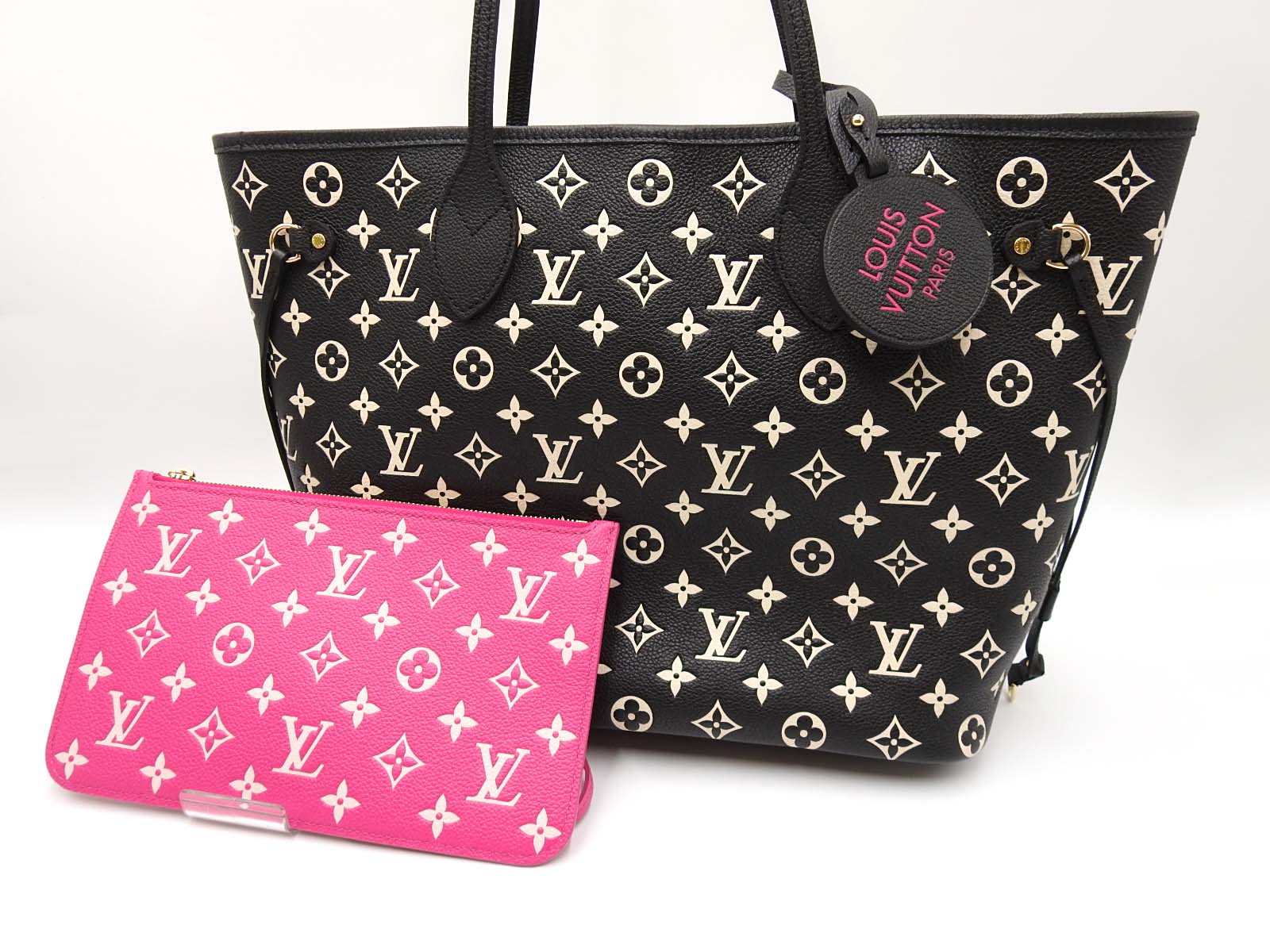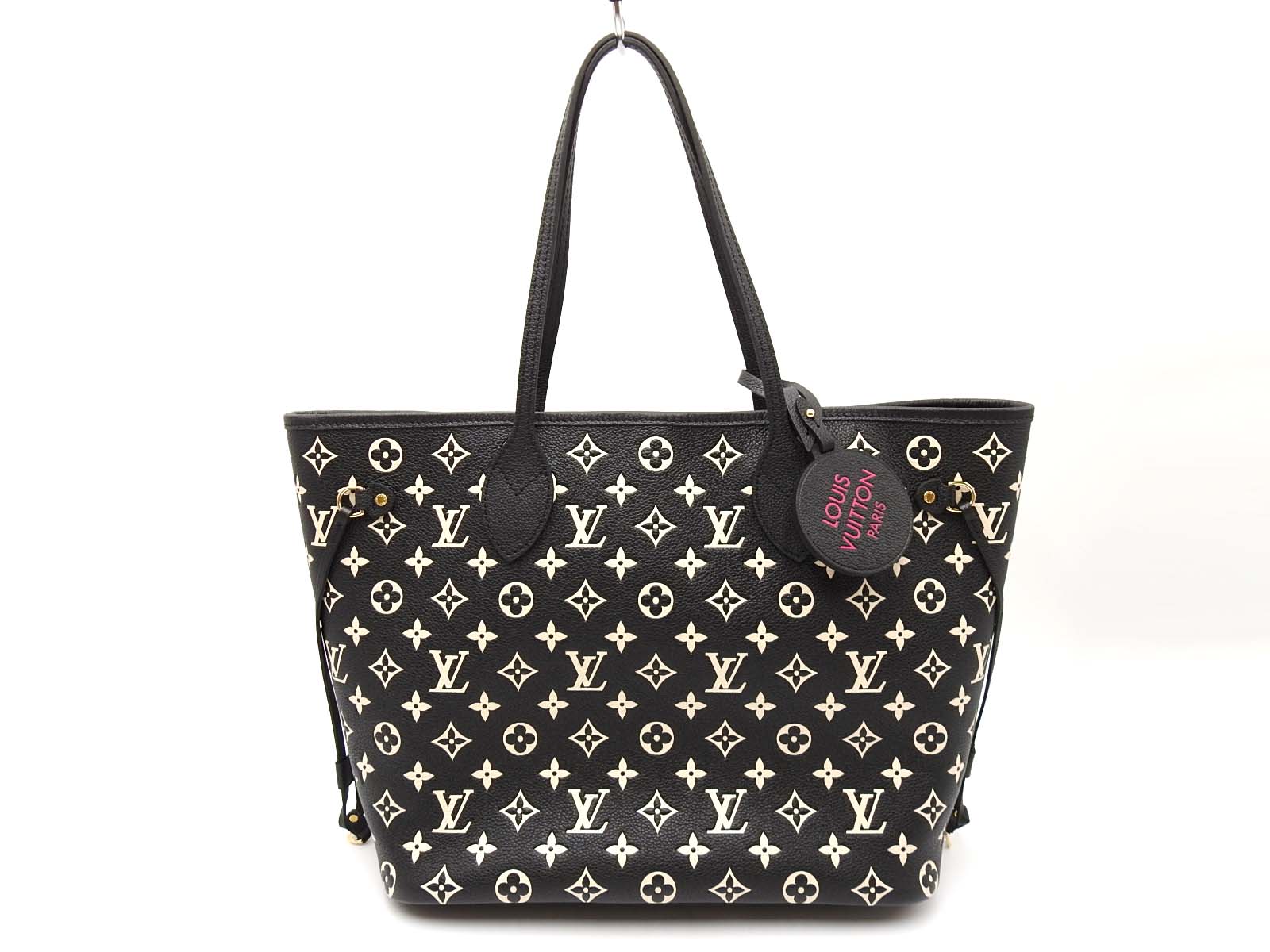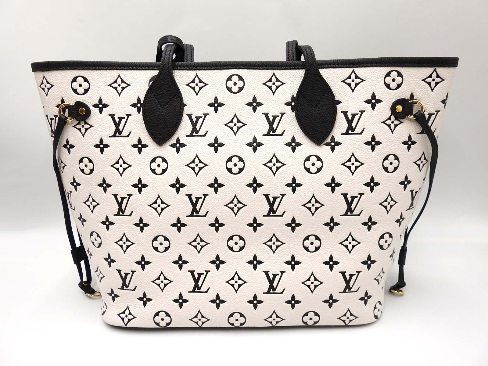 Auth LOUIS VUITTON Monogram Empreinte Neverfull MM Shoulder Tote Bag Leather Bicolor Noir Black White M46103 W-6593