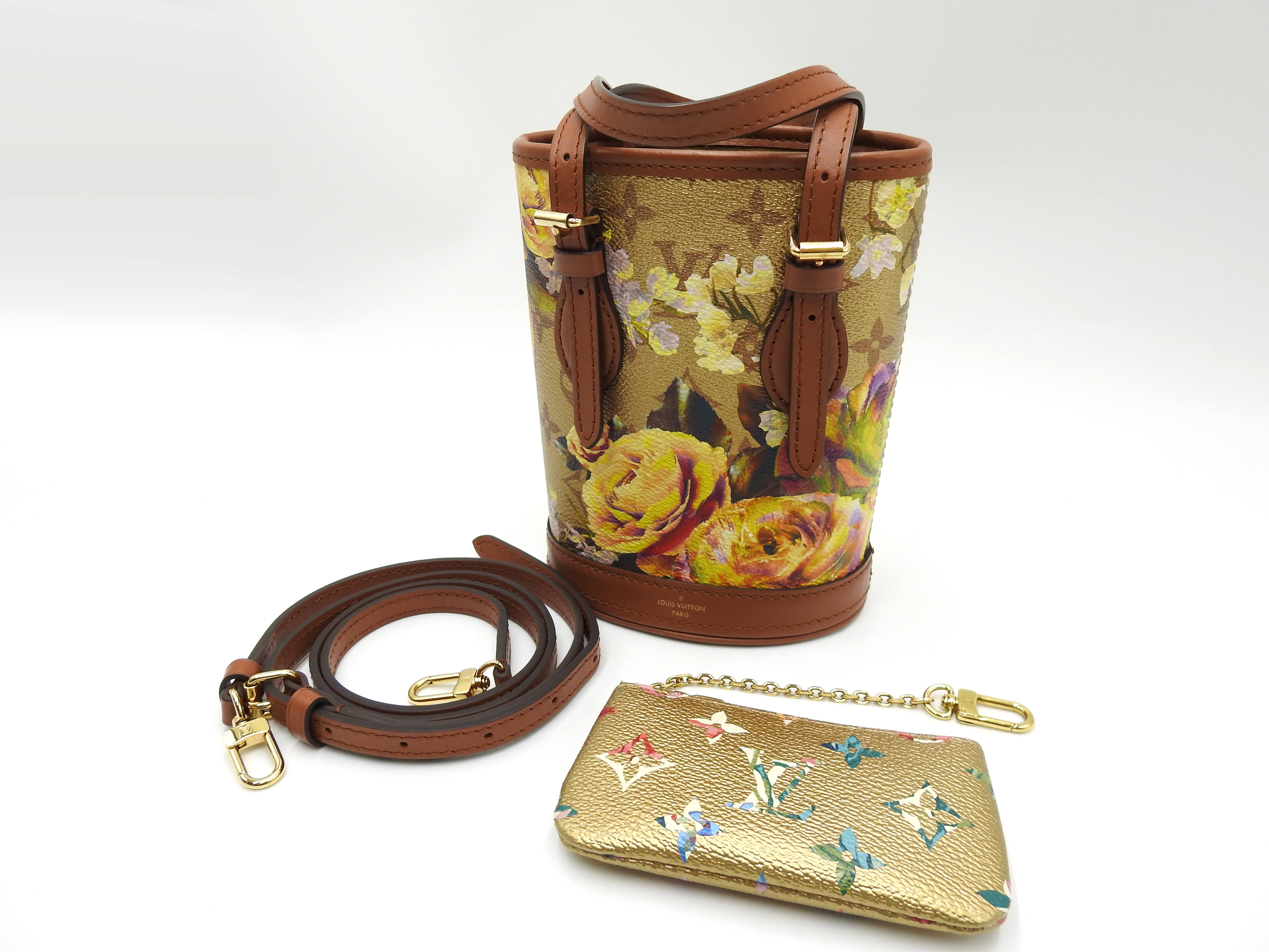 Auth LOUIS VUITTON Nano Bucket Bag LV Garden Monogram 2way Hand Bag Shoulder Bag Gold Multicolor M81724 X-8313